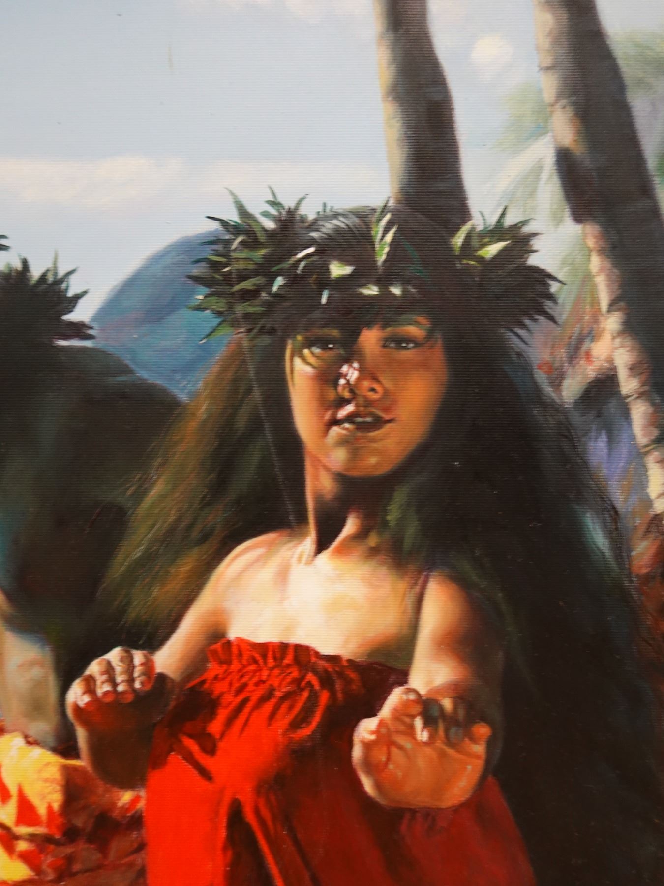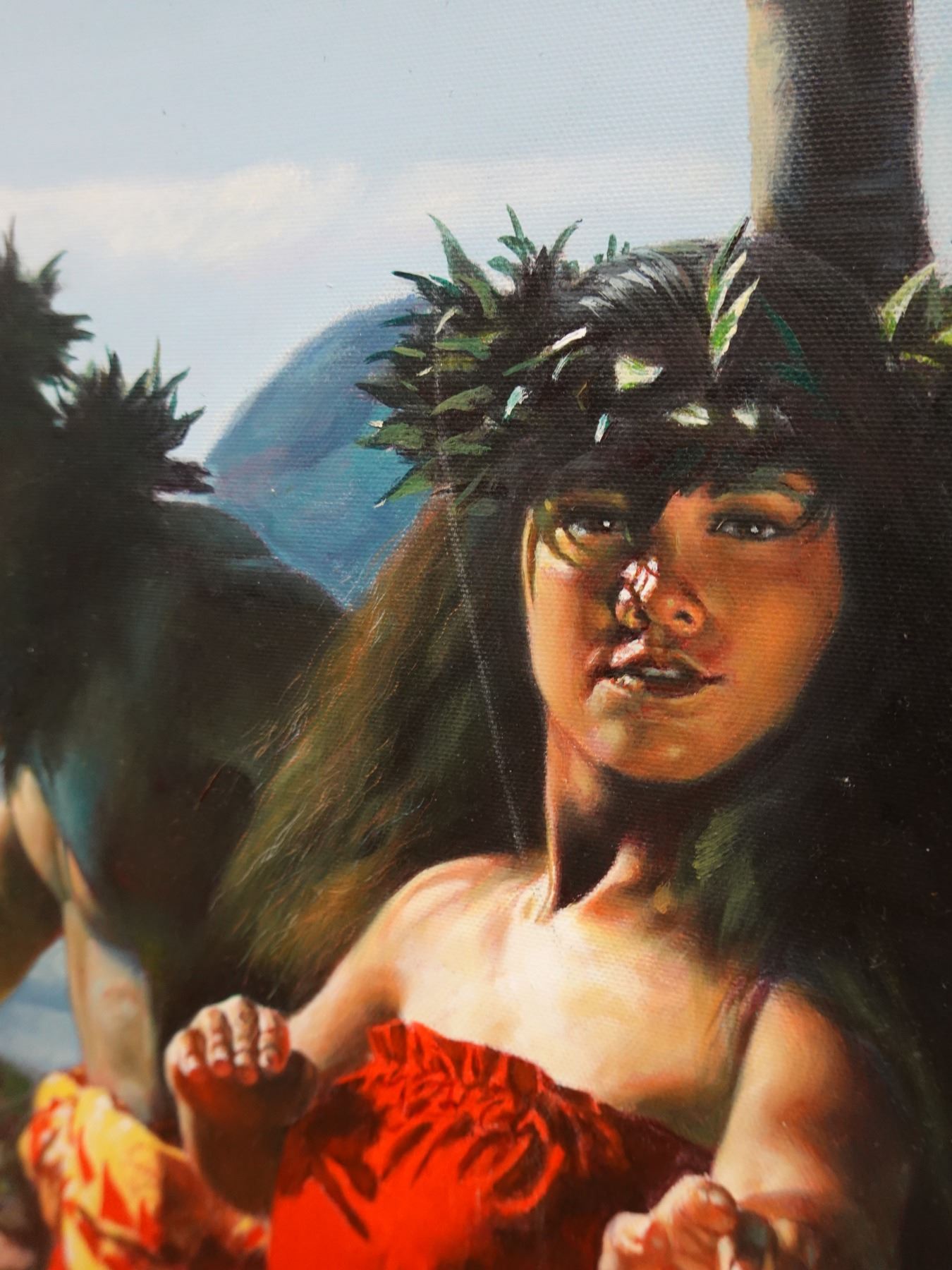 Original Oil Painting, Hula Dancers by Daniel Kim, Hawaii Artist, 16" x 20" Unframed