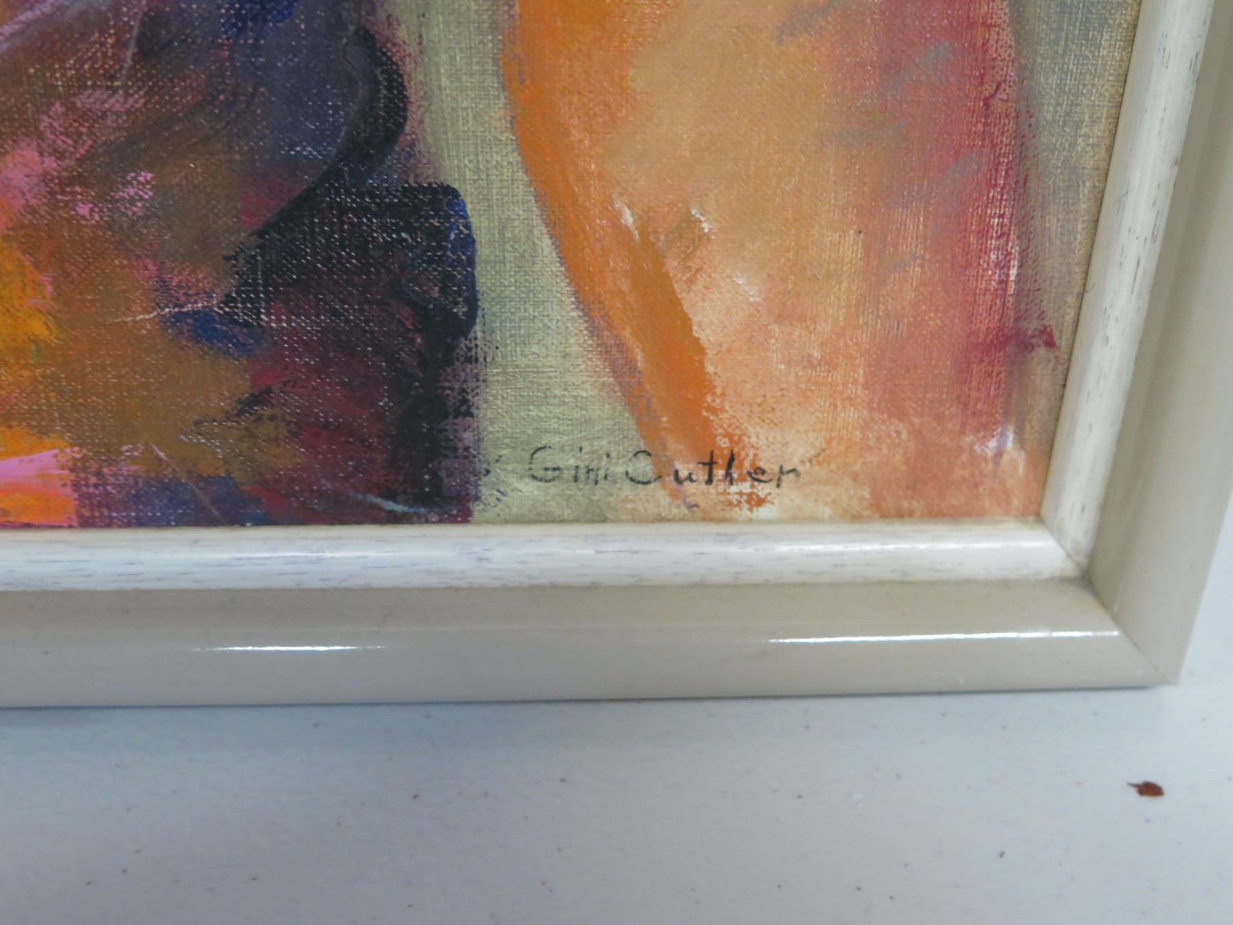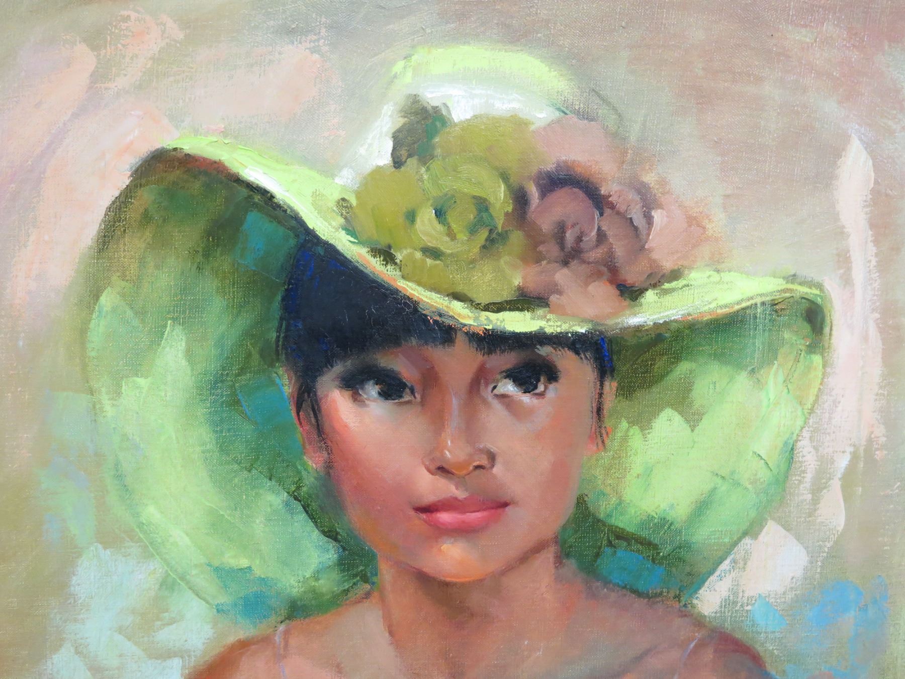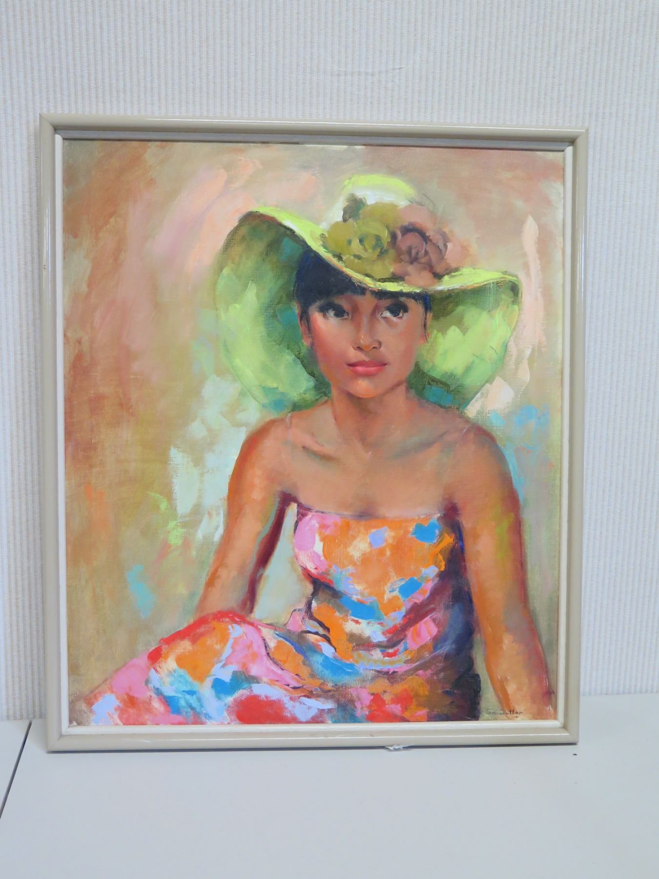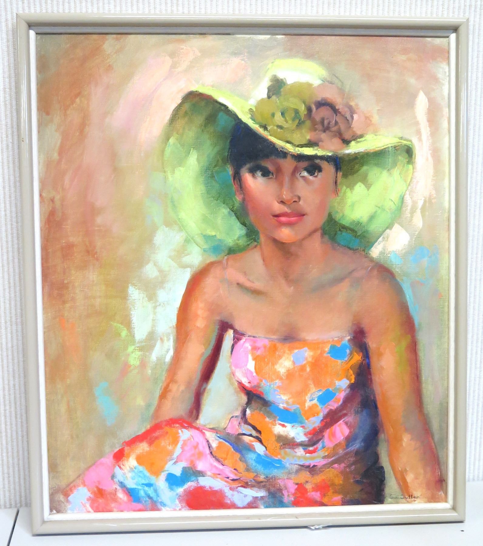 Original Oil Painting on Canvas, Woman w/ Hat, Signed Gini Cutler, Framed 25.5" x 30" (frame size).