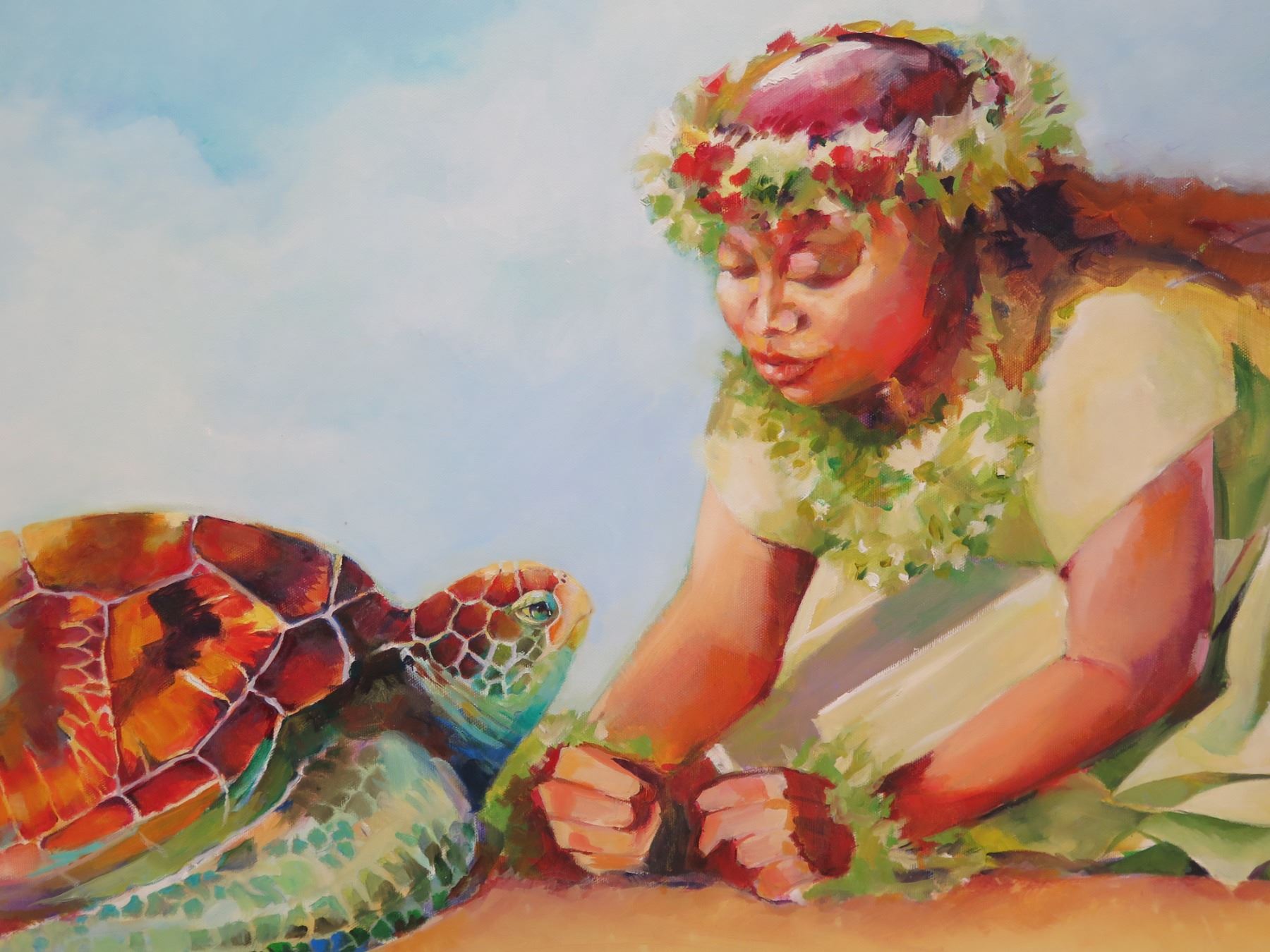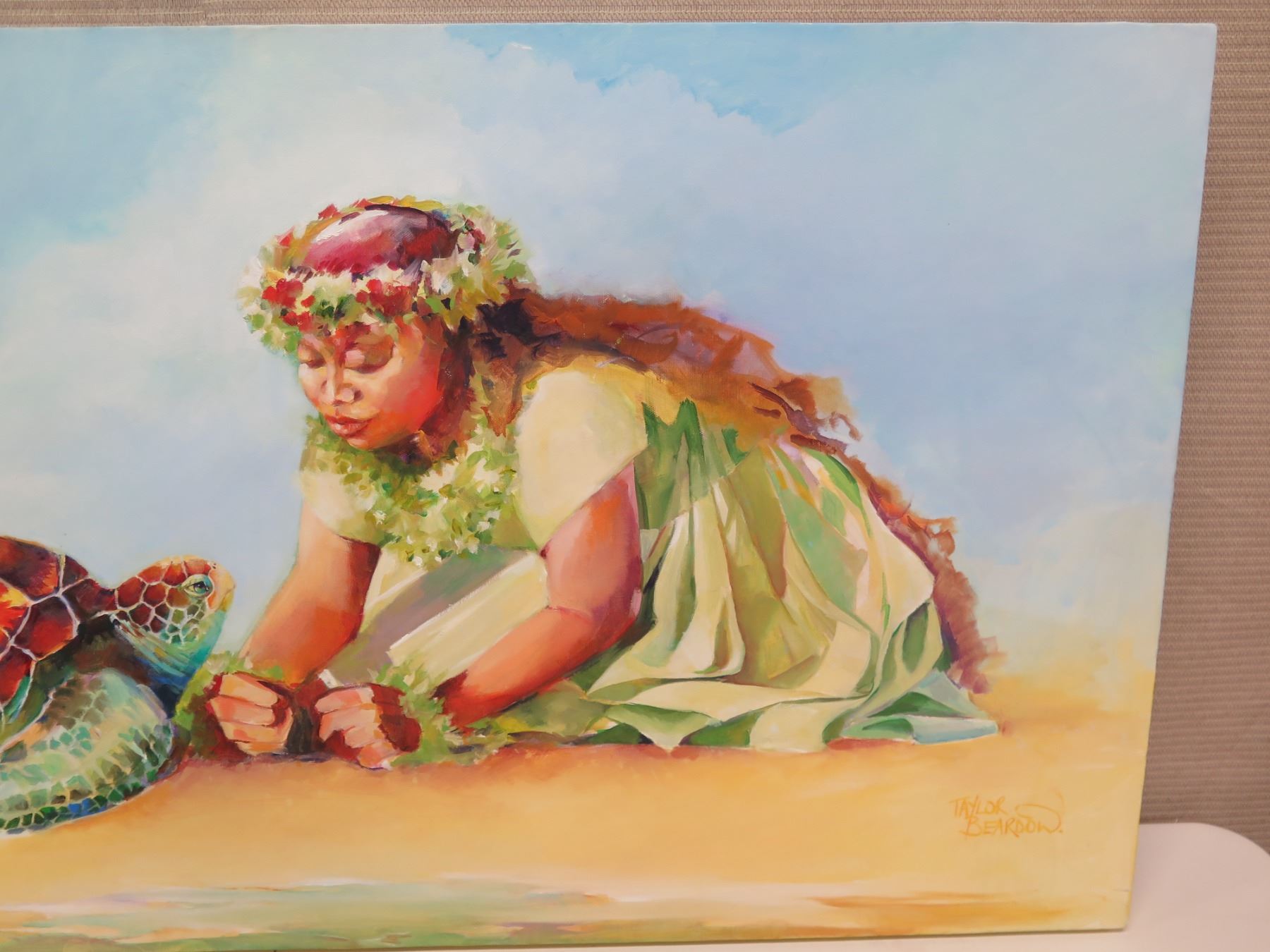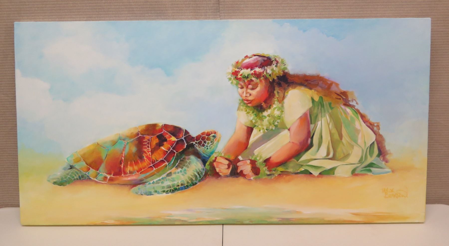 Original Painting, Oil on Canvas 'Asking the Ancestor' Signed Penny Taylor-Beardow 24"x48"
