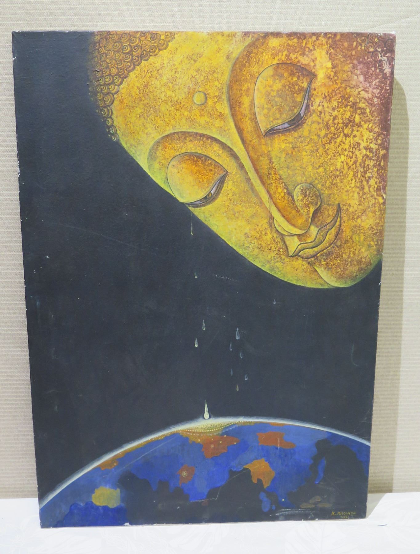 Original Painting on Canvas, Crying Woman Art, Signed by Artist 2001, 23"x33" Unframed