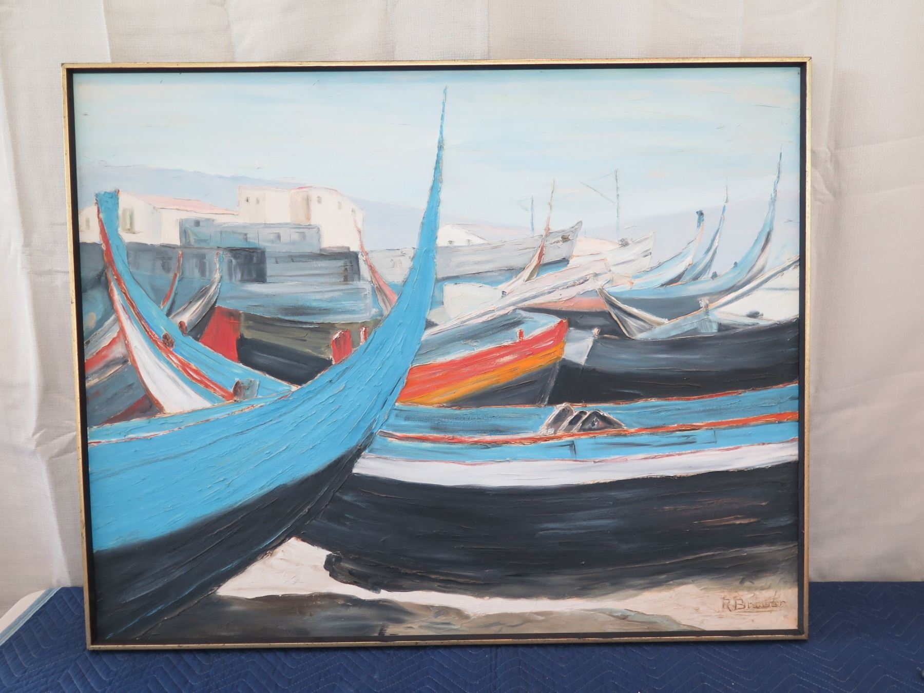 Original Painting on Canvas, Nazaire "Portugal" by Hawaii Artist Roland Brower 39"x49" (was a prop in original Hawaii Five-0 series)
