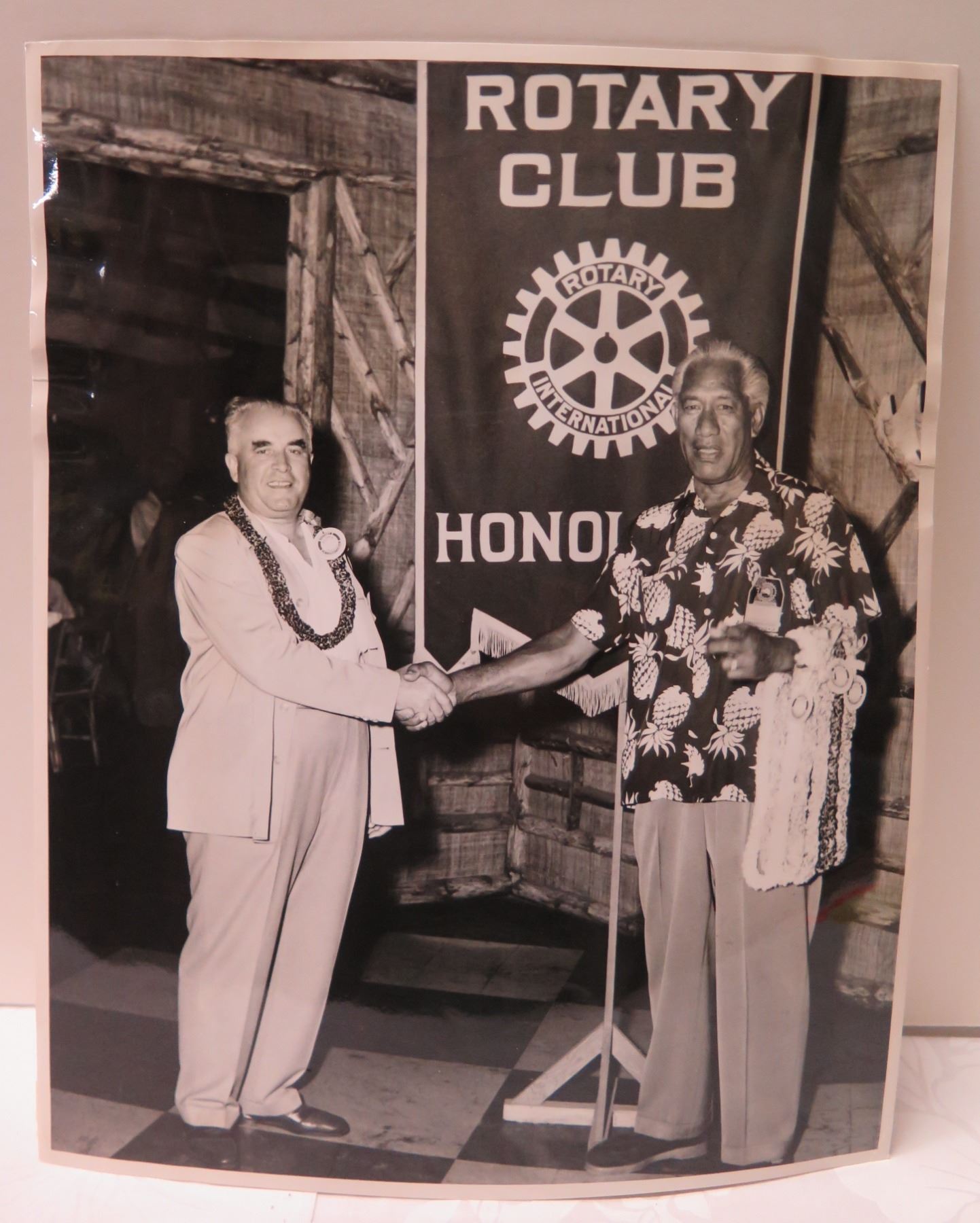 Original Photograph 10/24/1950 Duke Kahanamoku Welcomes Fellow Rotarian 8"x10"