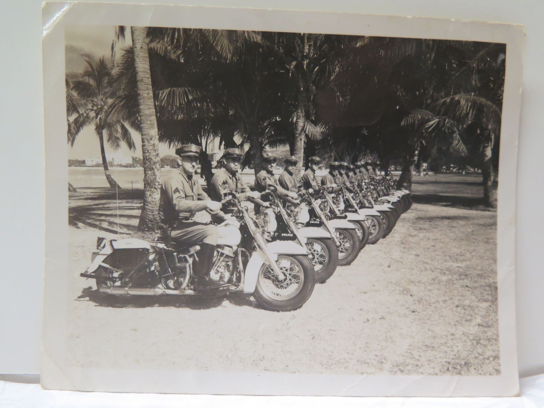 Original Photograph Circa 1950's Honolulu P.D. Motorcycle Patrol Photo-Op Kapiolani Park 5"x4"