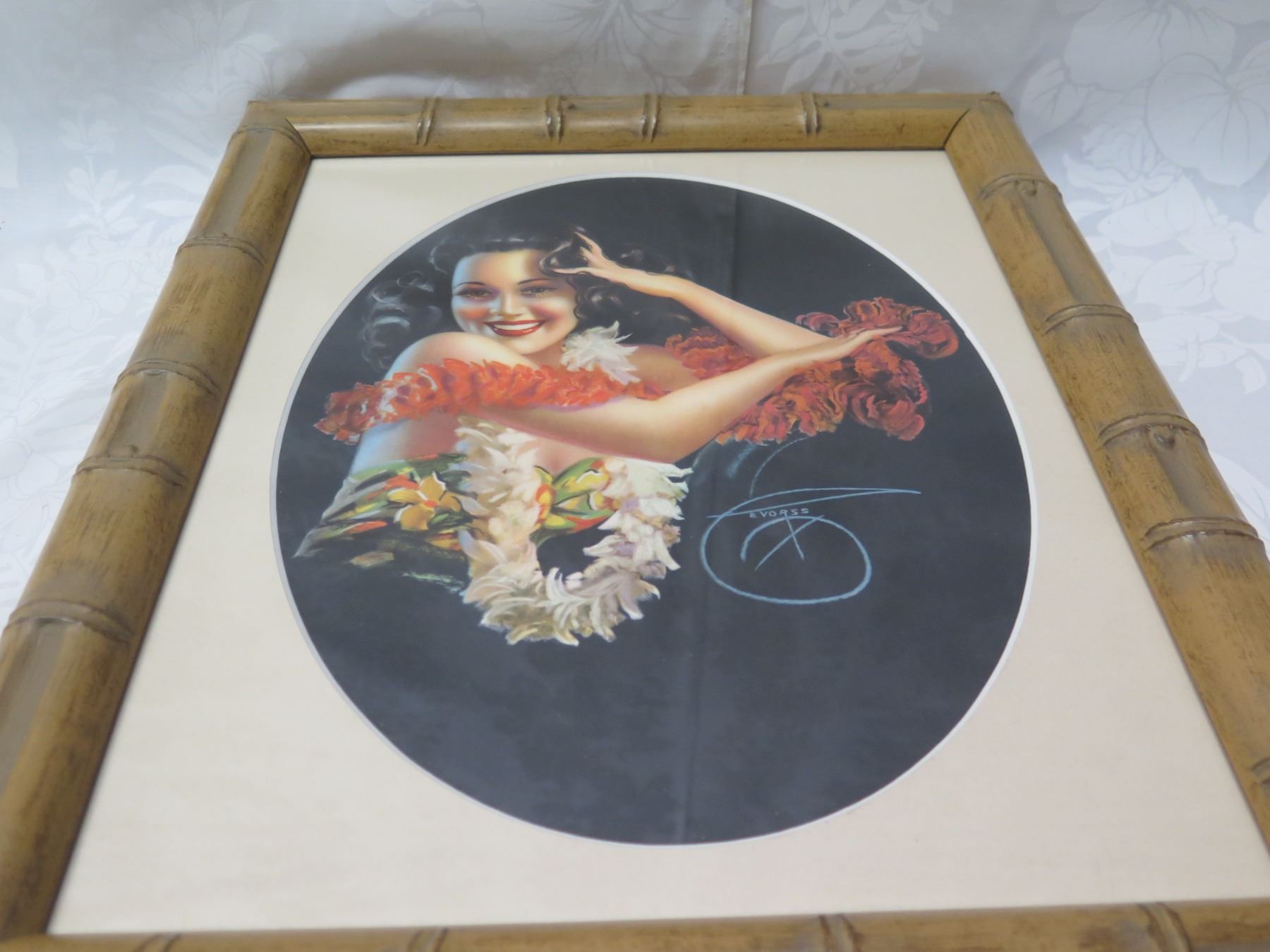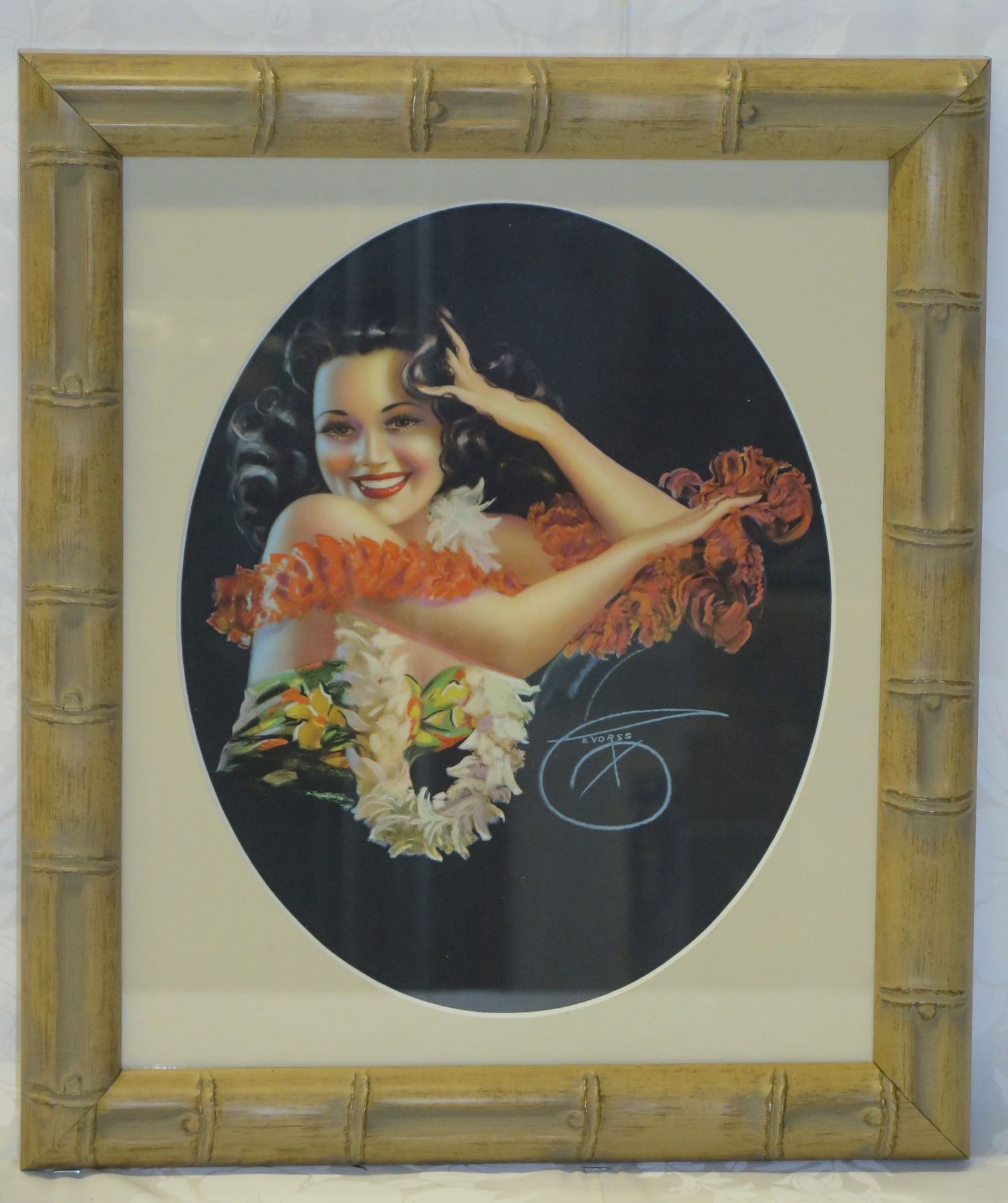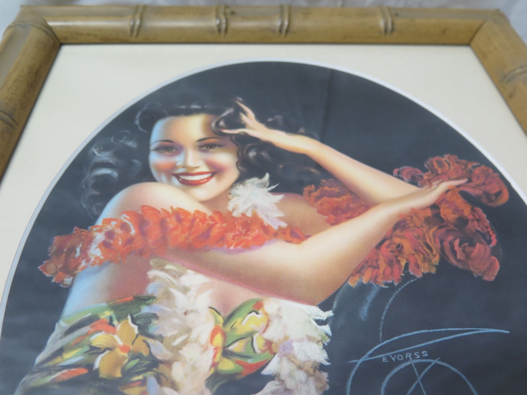 Original Pin-Up of Hawaiian Girl by Billy DeVorss 1946, Framed 12"x14"
