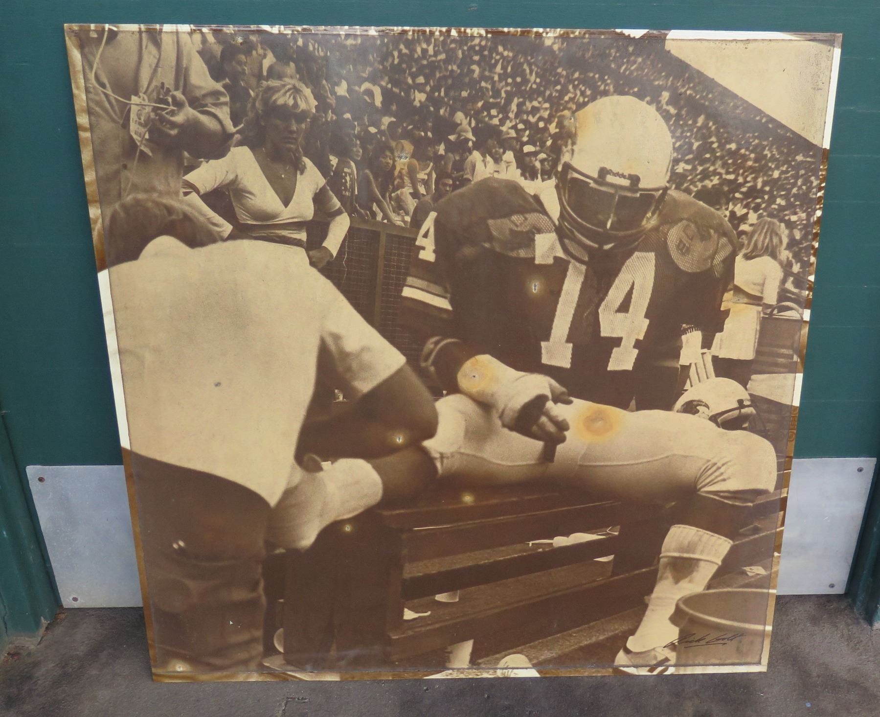 Original Sports Sign Covered in the 1980's by Sponsor Signs 40"x40" (Sun & Weather Damage). Note: Signs have been removed for pick up