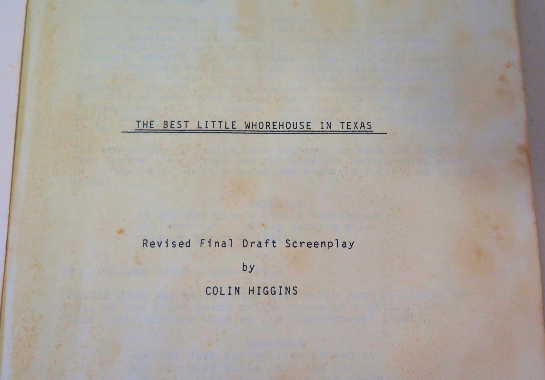Original Universal City Studios Screenplay: The Best Little Whorehouse in Texas