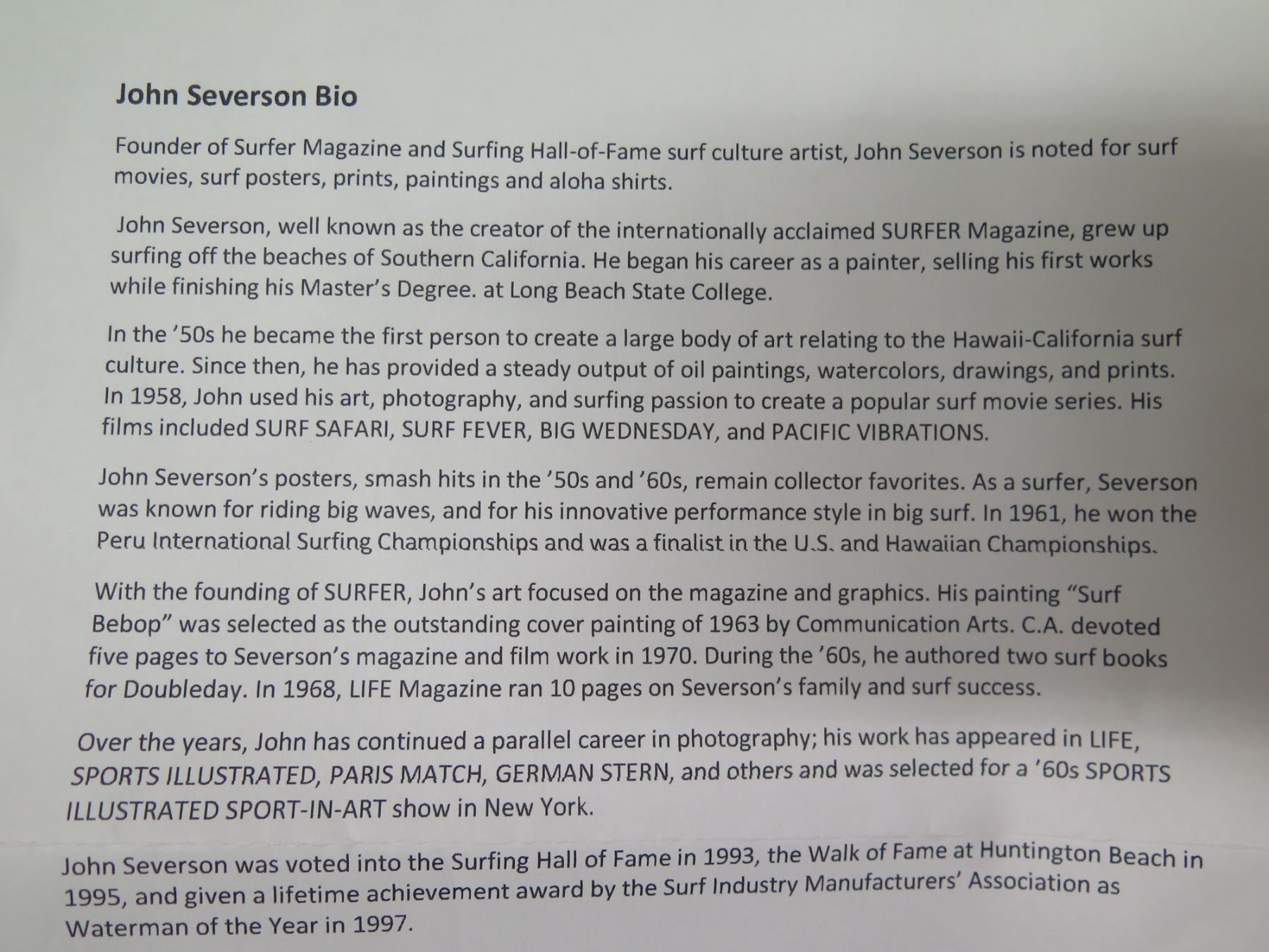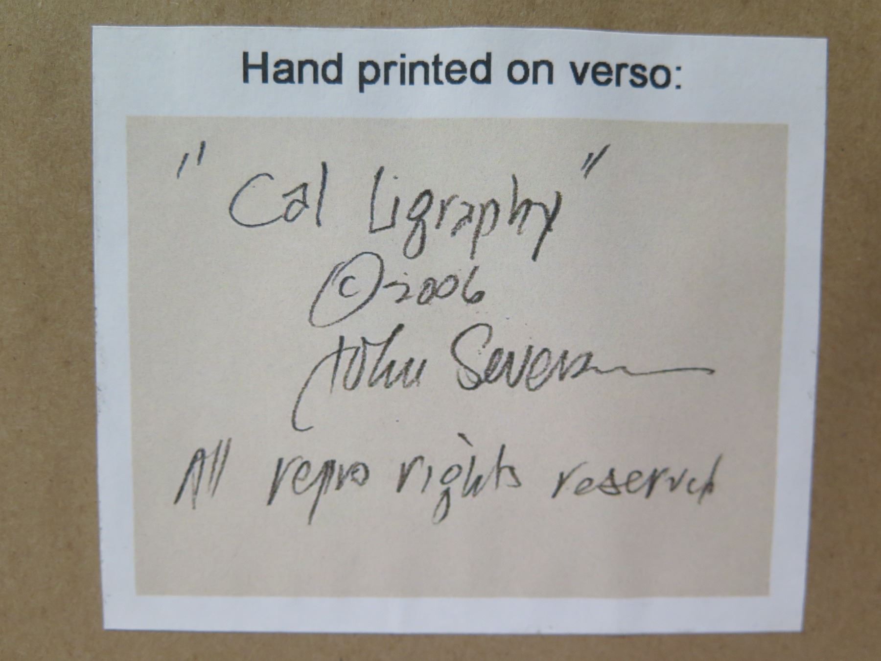 Original Watercolor Artwork Titled 'Cal Igraphy' 2006 by John Severson, Framed 10"x7"