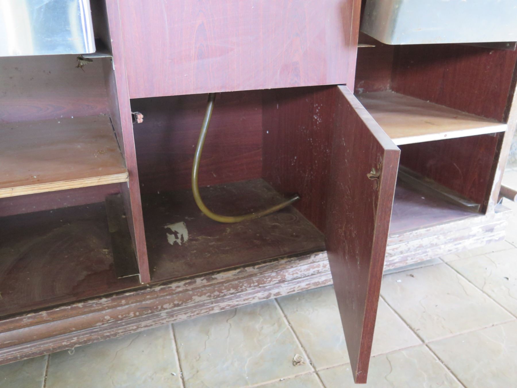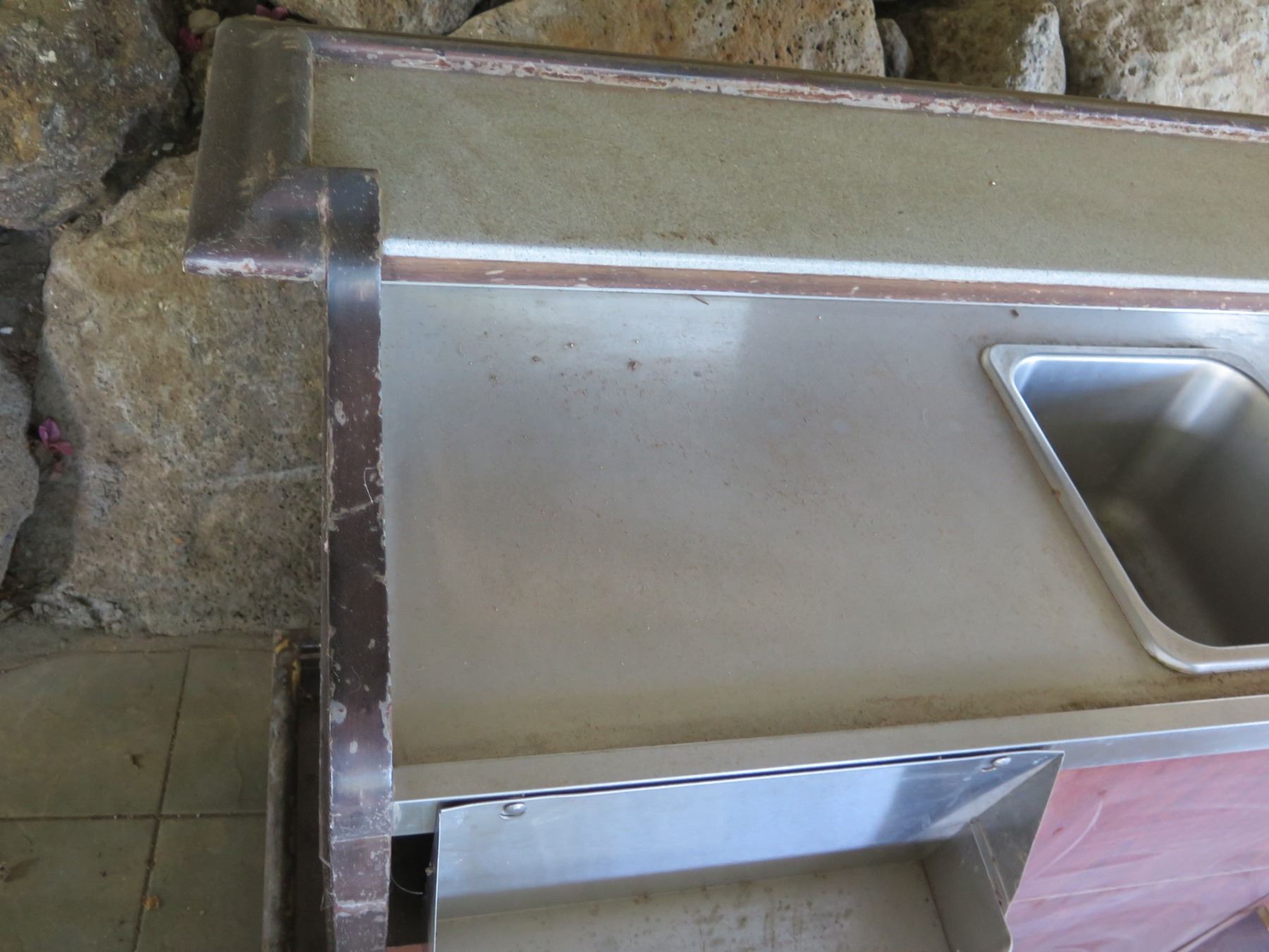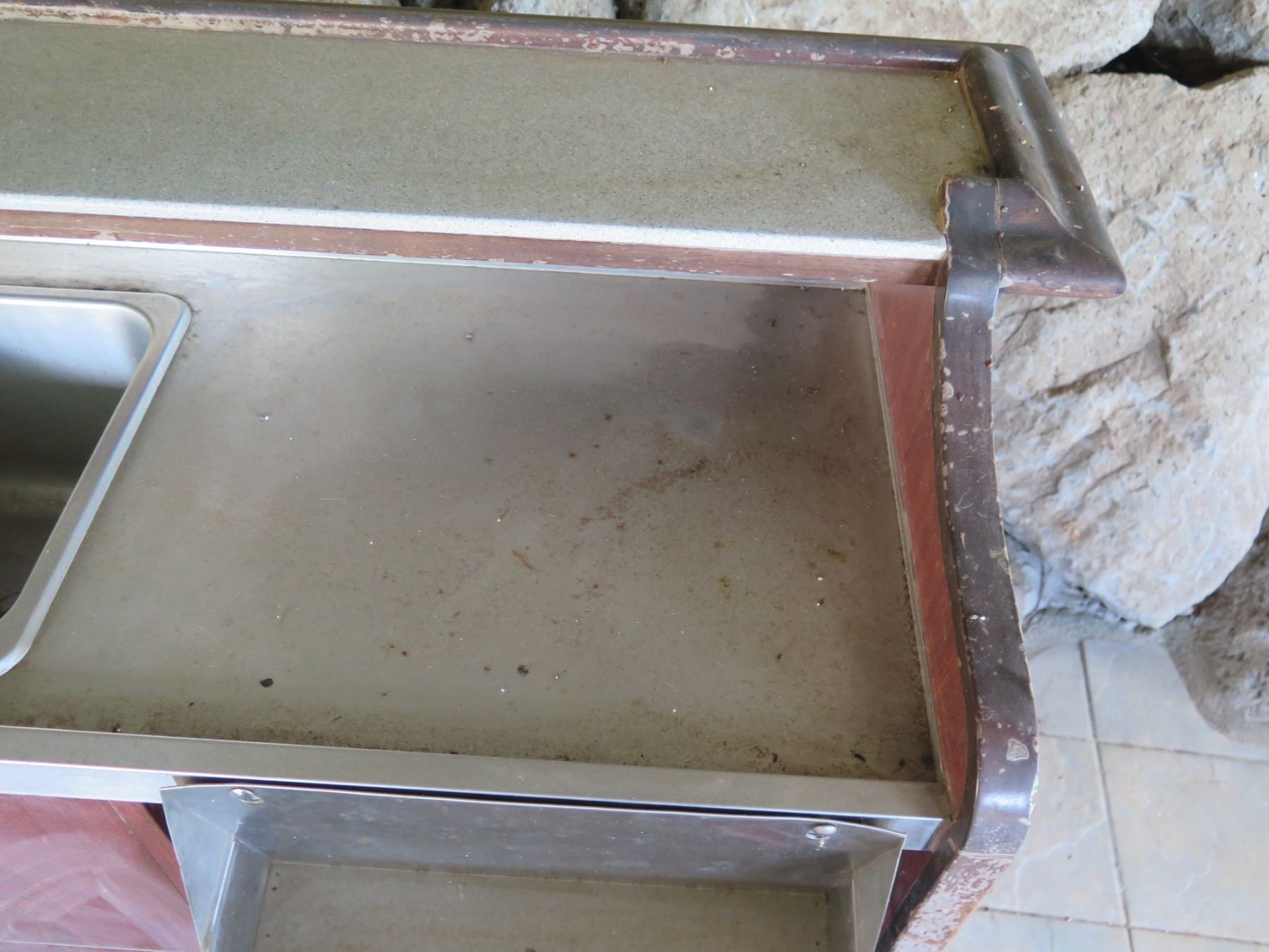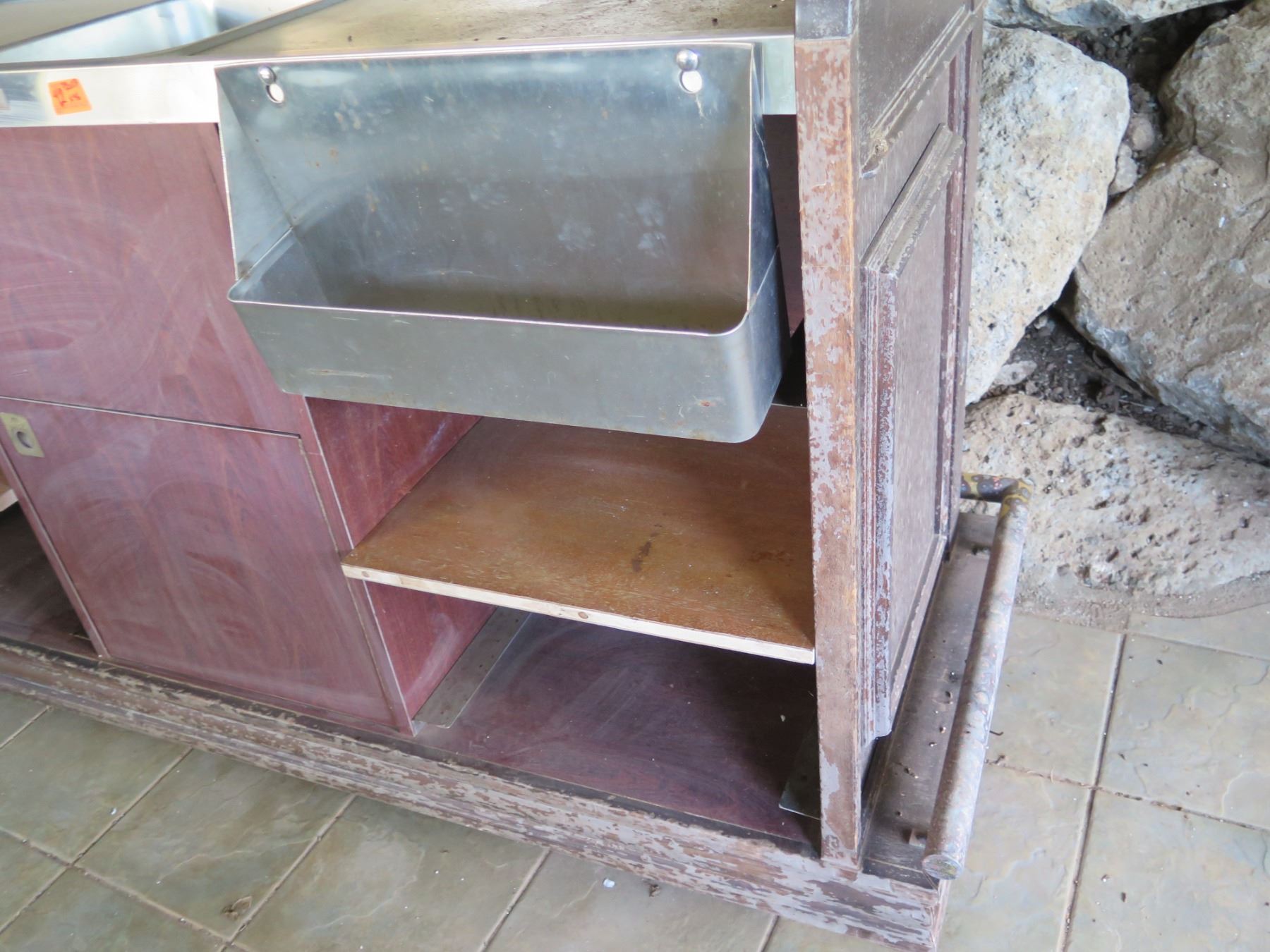 Outdoor Metal Sink on Wooden Cabinet w/ Undershelves & Cabinet 72"x27"x46"H