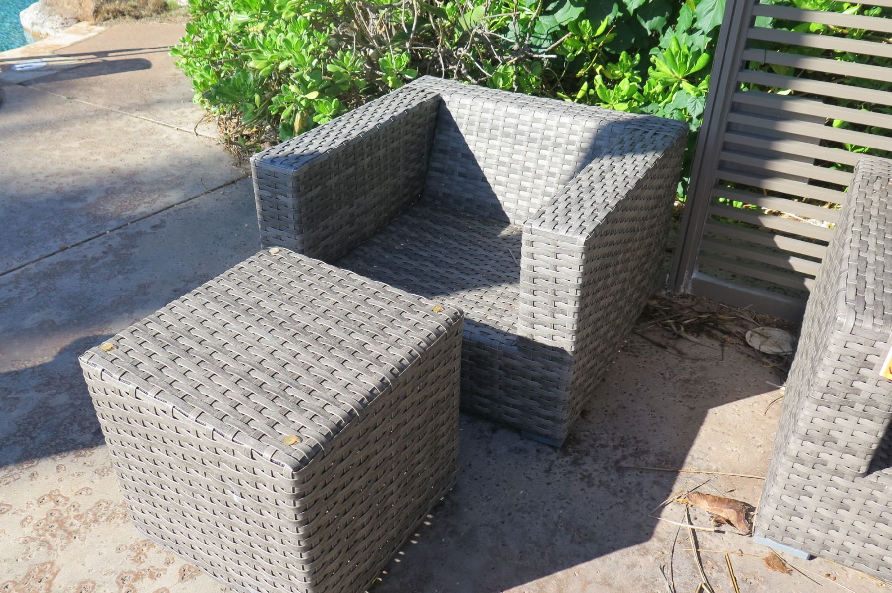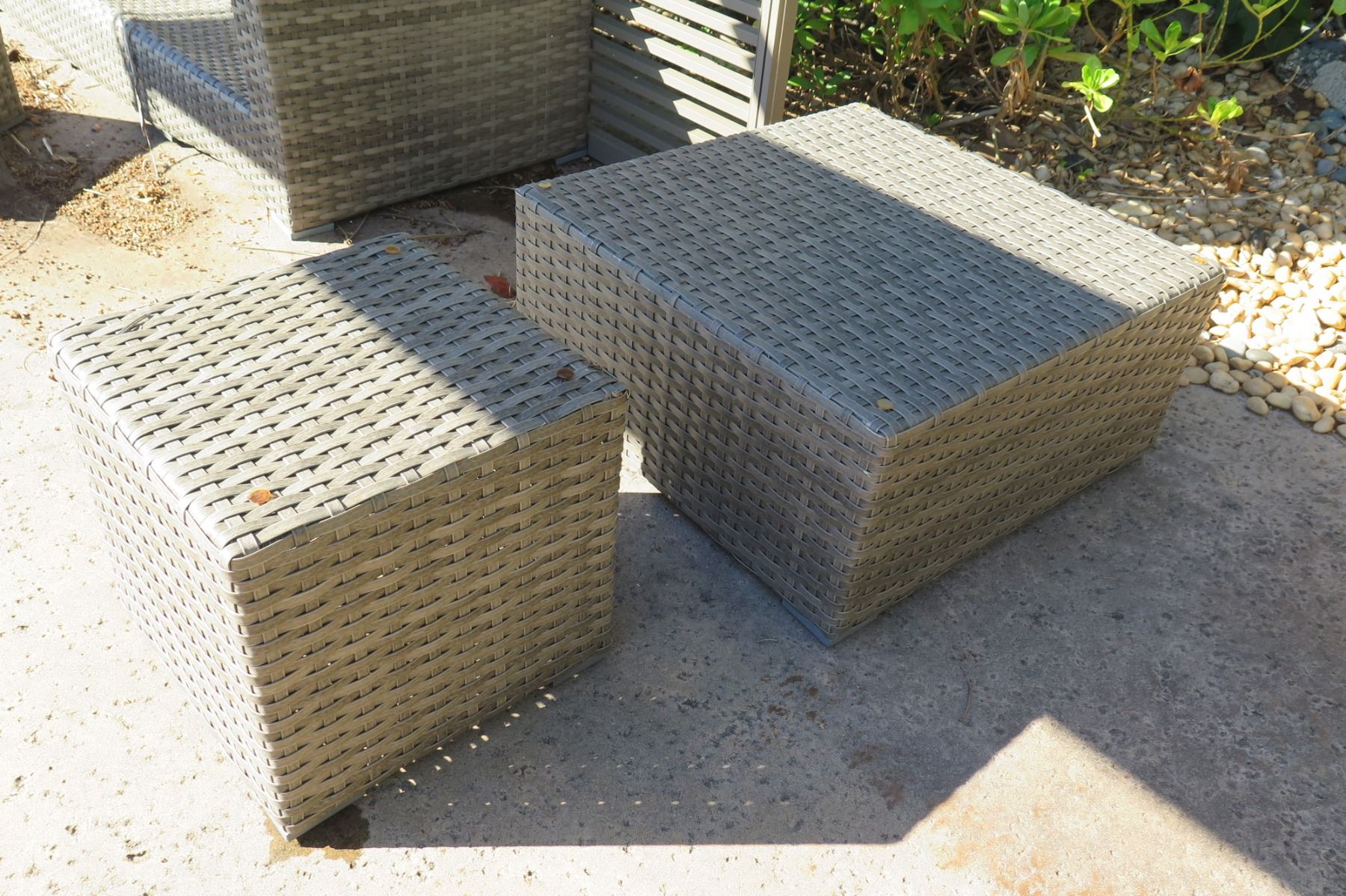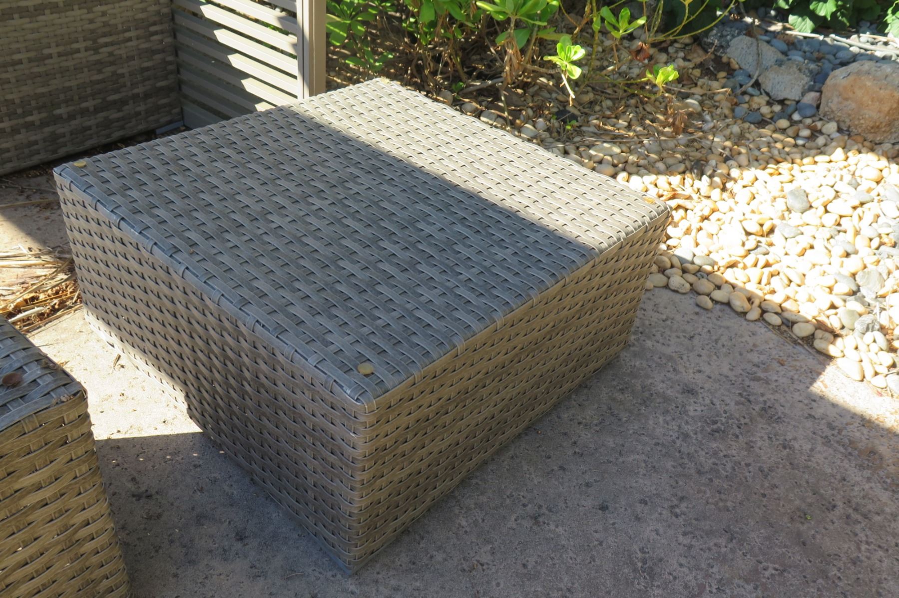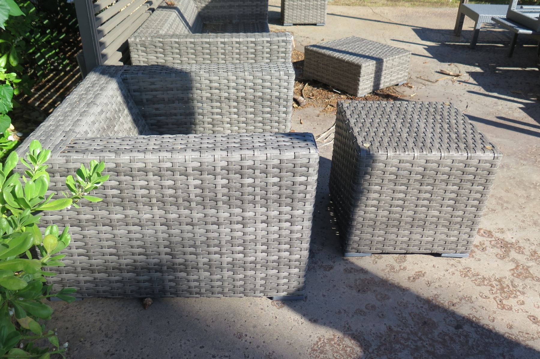 Outdoor Woven Patio Furniture: Sofa, Chair, Coffee Table, Side Tables & Ottoman (synthetic material)