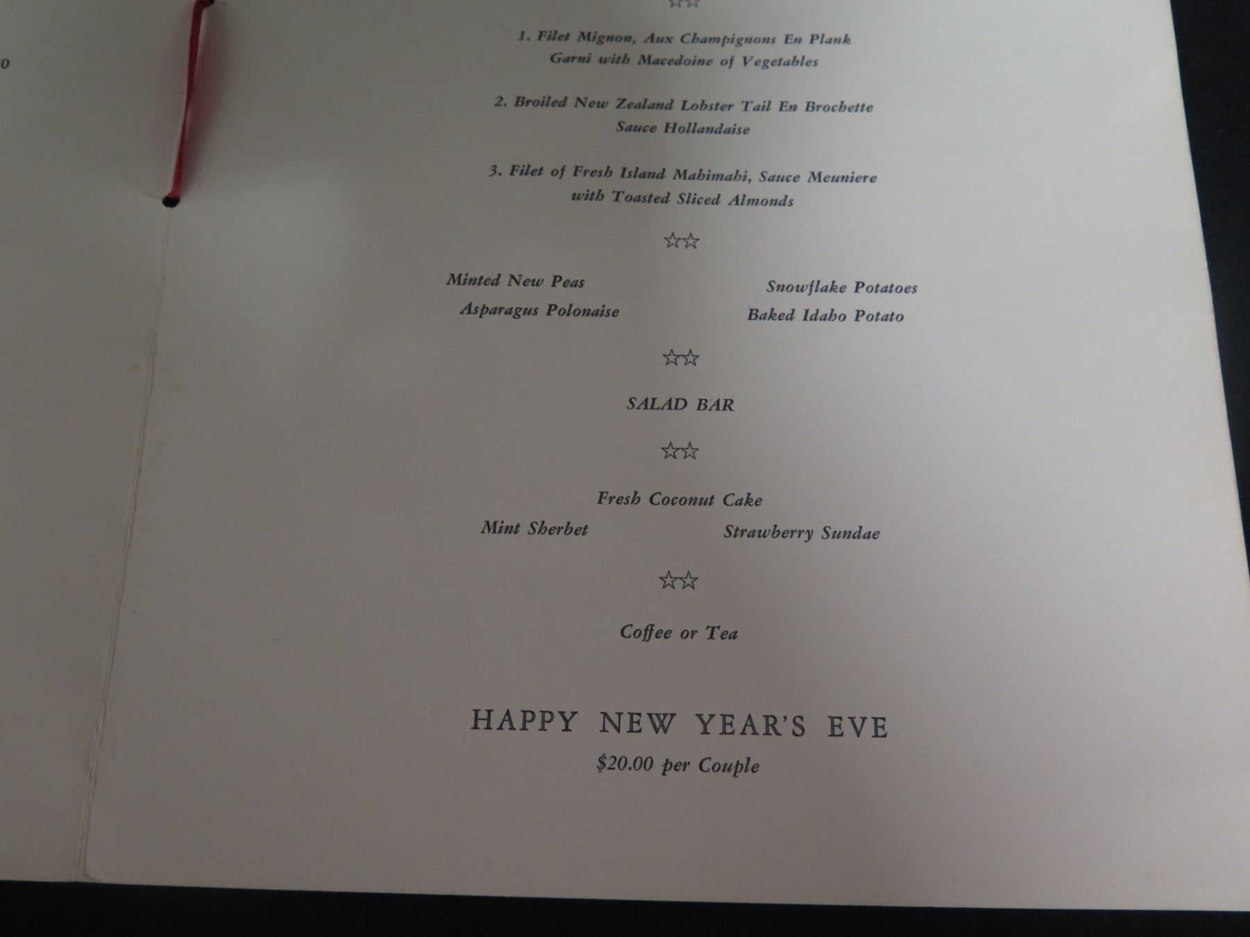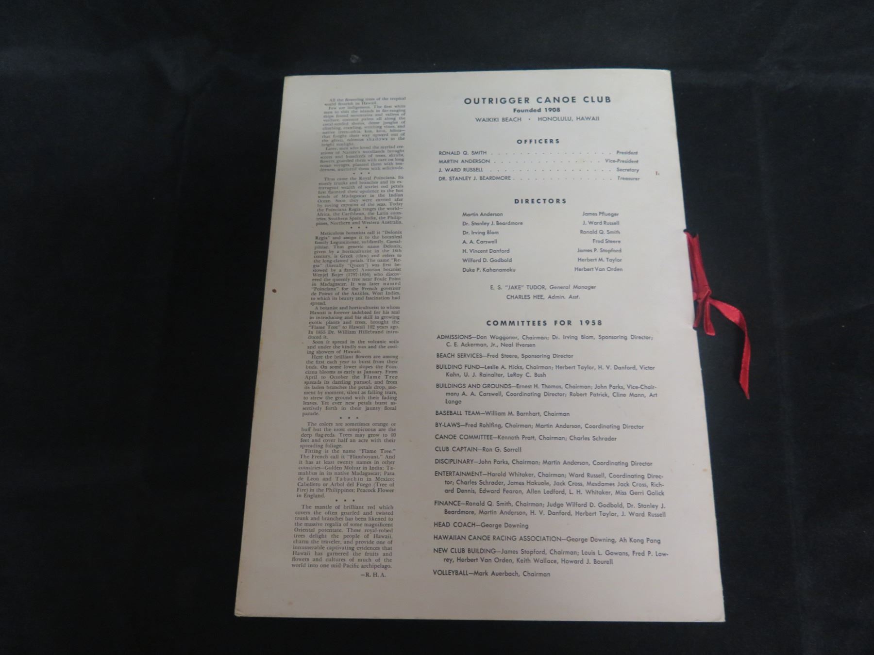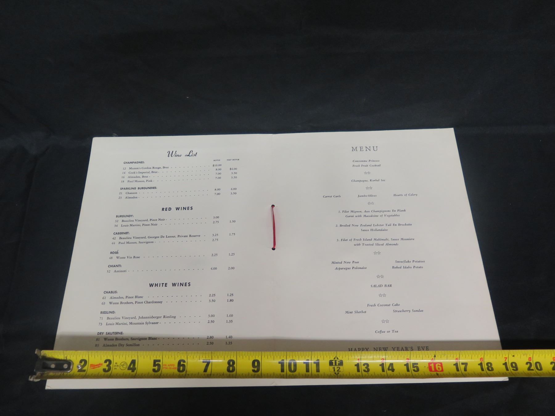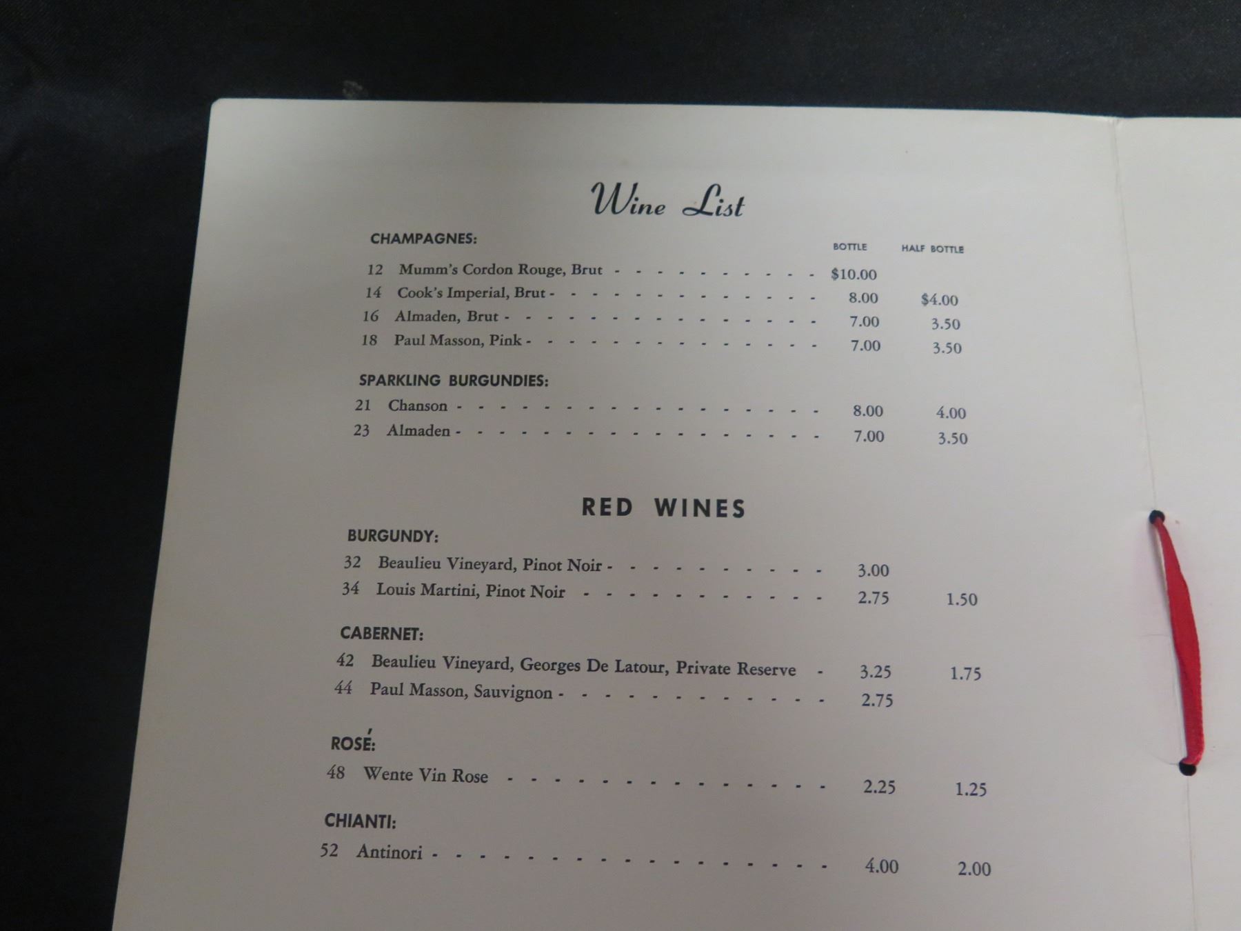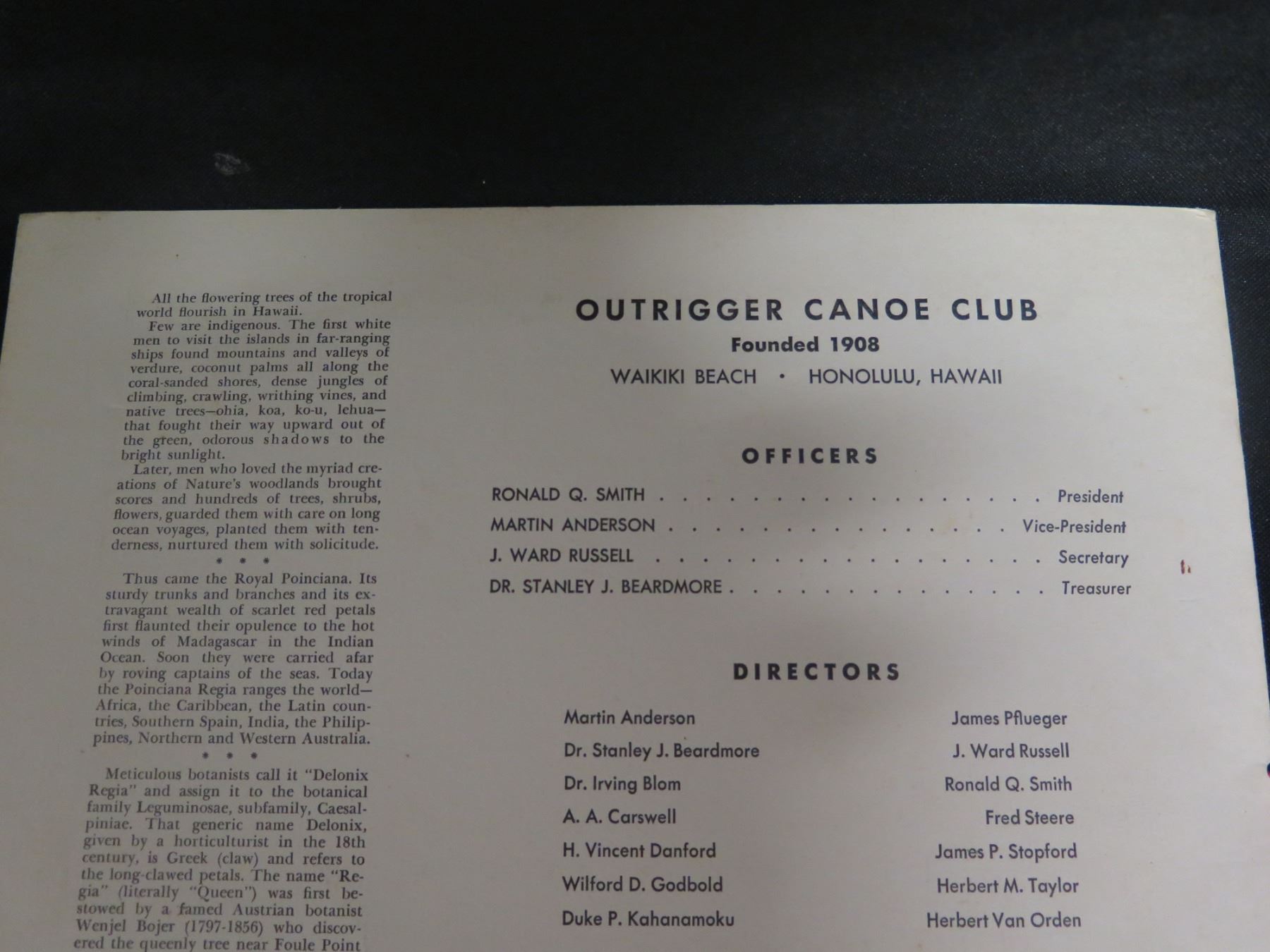 Outrigger Canoe Club Dec 31, 1958 New Year's Eve Menu & Wine List 19"x13"