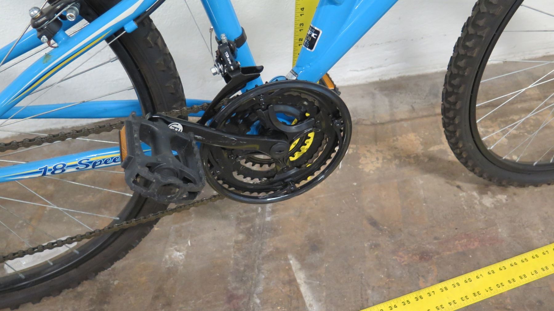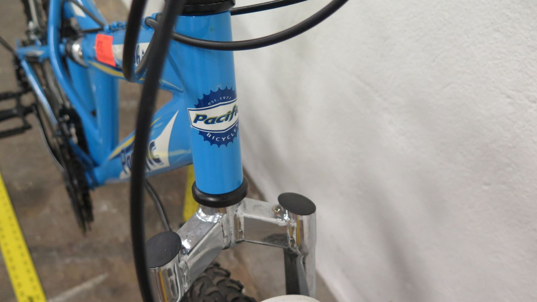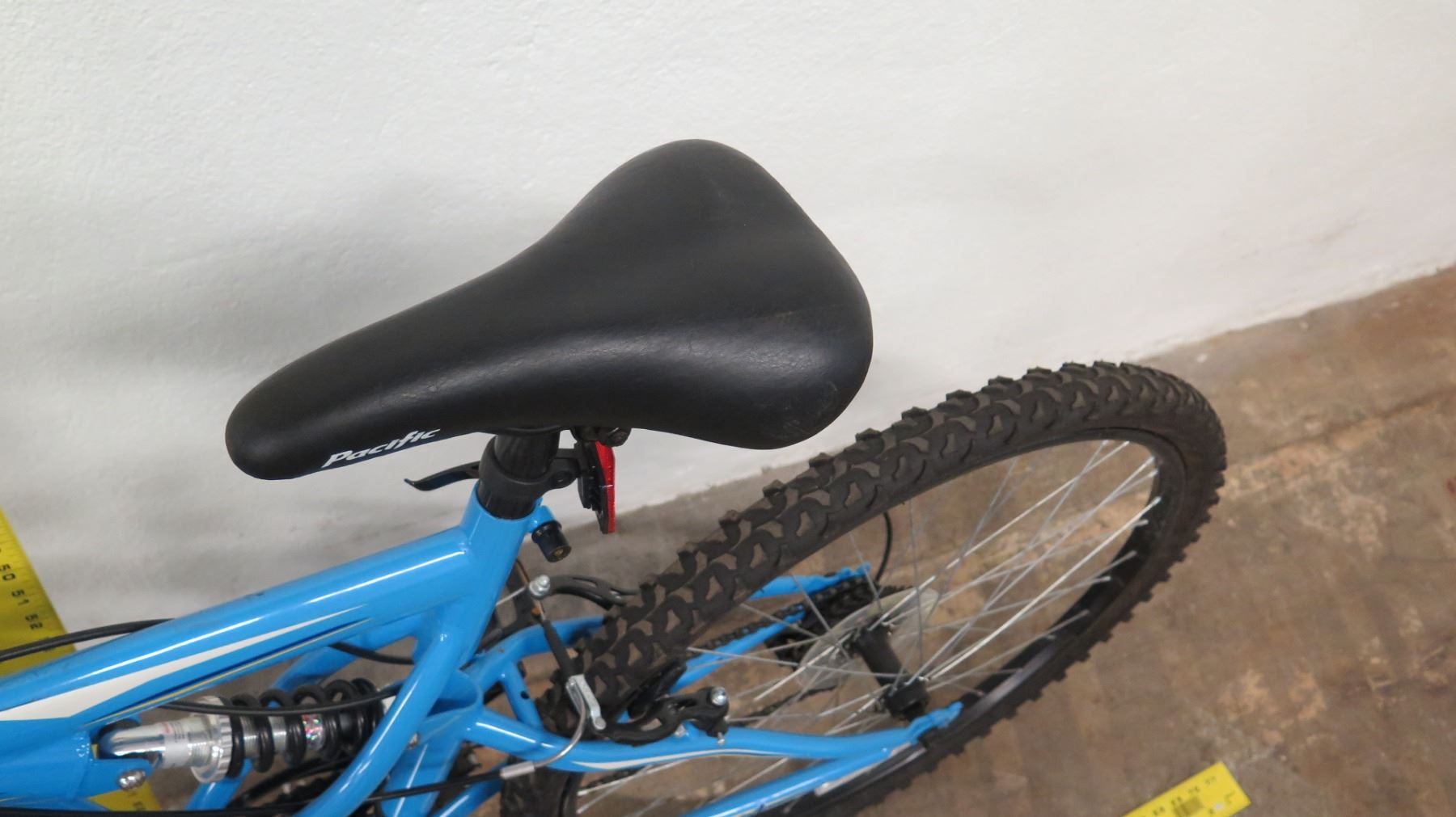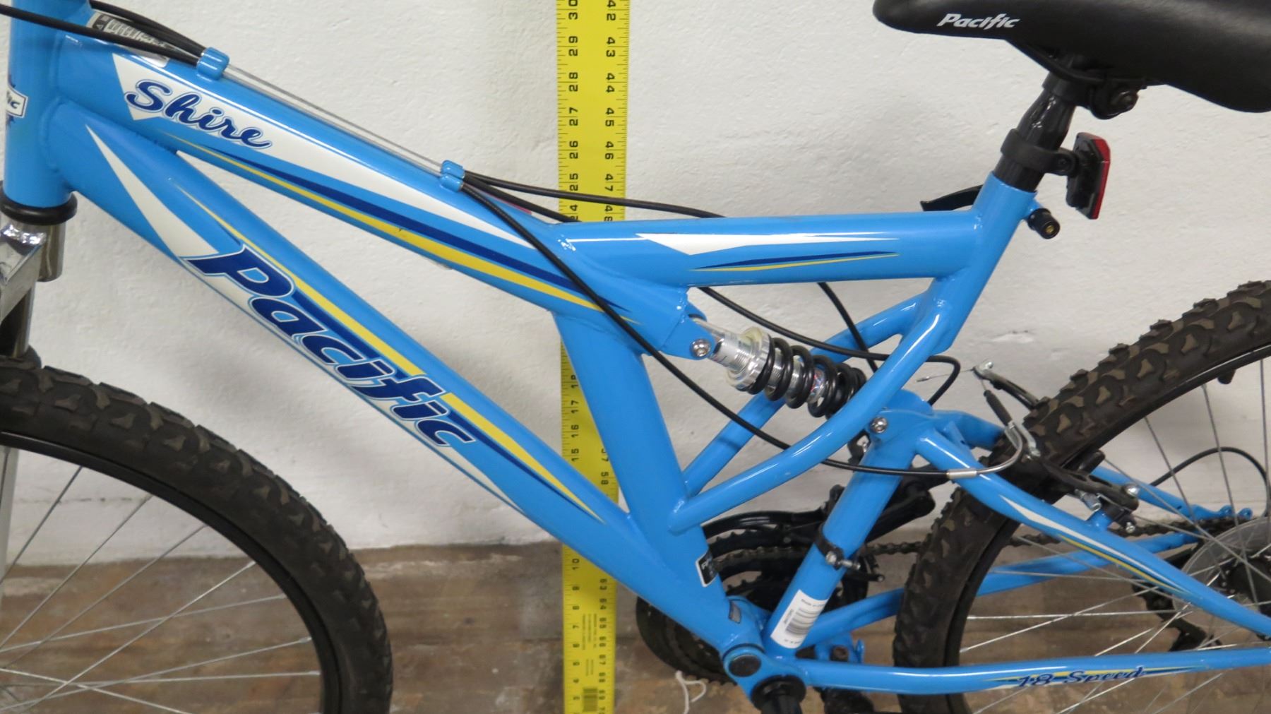Pacific Shire 18-Speed Full Suspension Mountain Bike, Blue. Bikes have been in storage at the HPD warehouse for some time and will need to have tires inflated and basic maintenance done. May be missing parts.