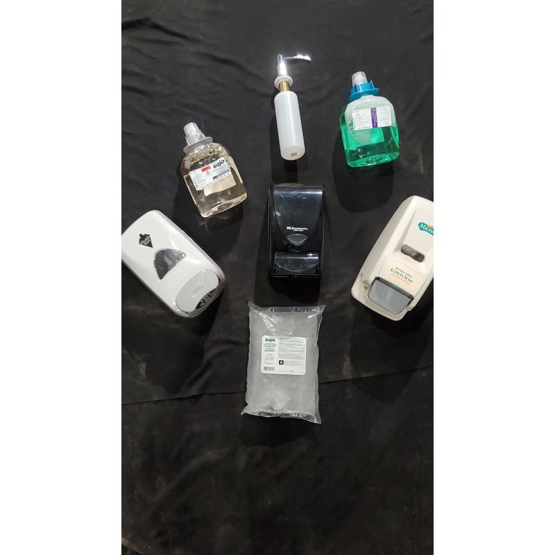 (2) Sloan Foam Hand Soap,1250mL,Unscented,PK3, (2)Trident Dispenser,Soap,13oz, (3)GOJO Liquid Hand Cleaner,1000mL,Cleaner,PK8, (2)Cobalt Shampoo and Body Wash,1250mL,Foam,PK3,(10) soap dispenser cases . ** The seller has provided the SKU's as a courtesy for reference on Grainger.com SKU's: 20C882 6PB70 34TC14 3AU31