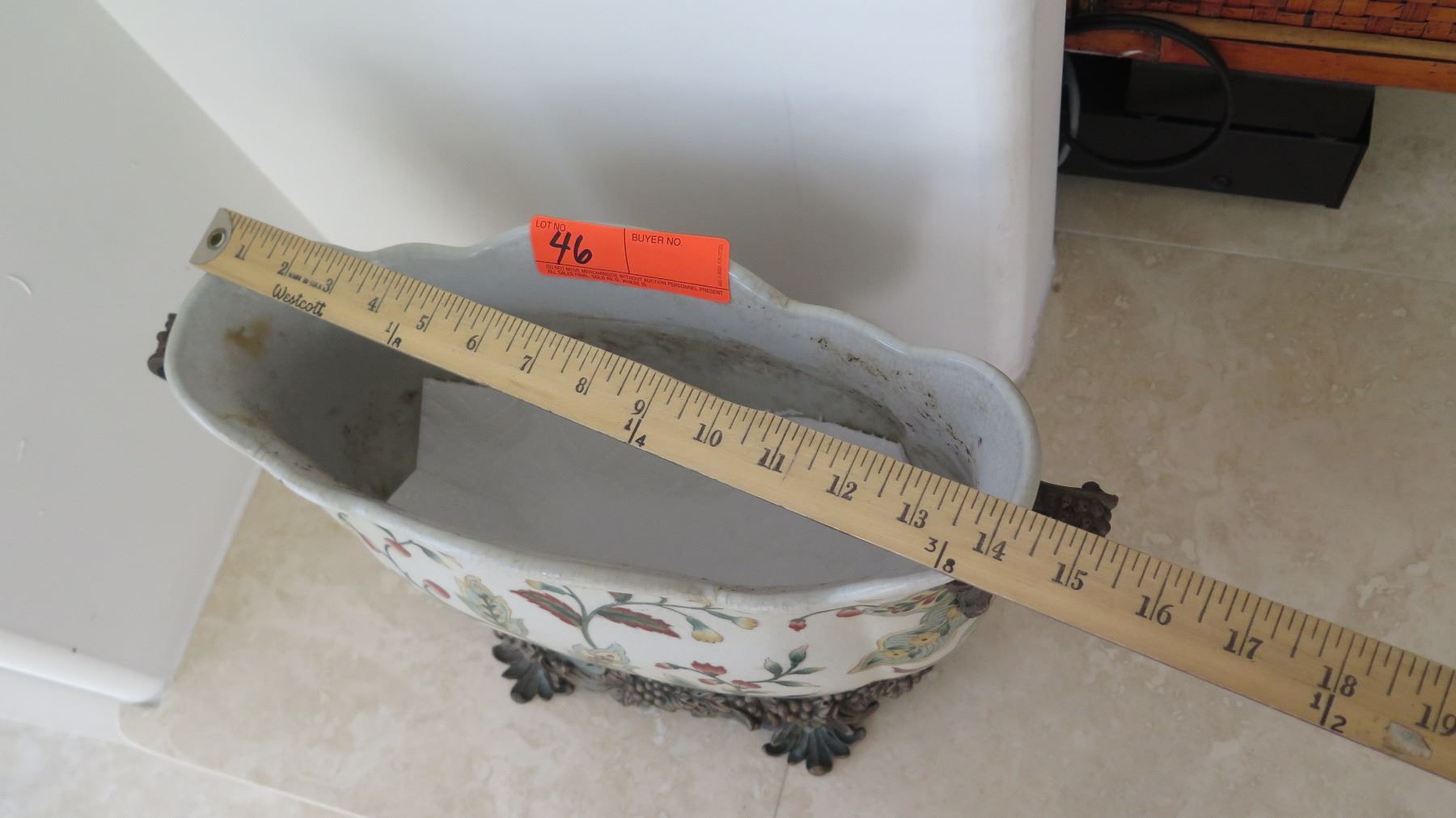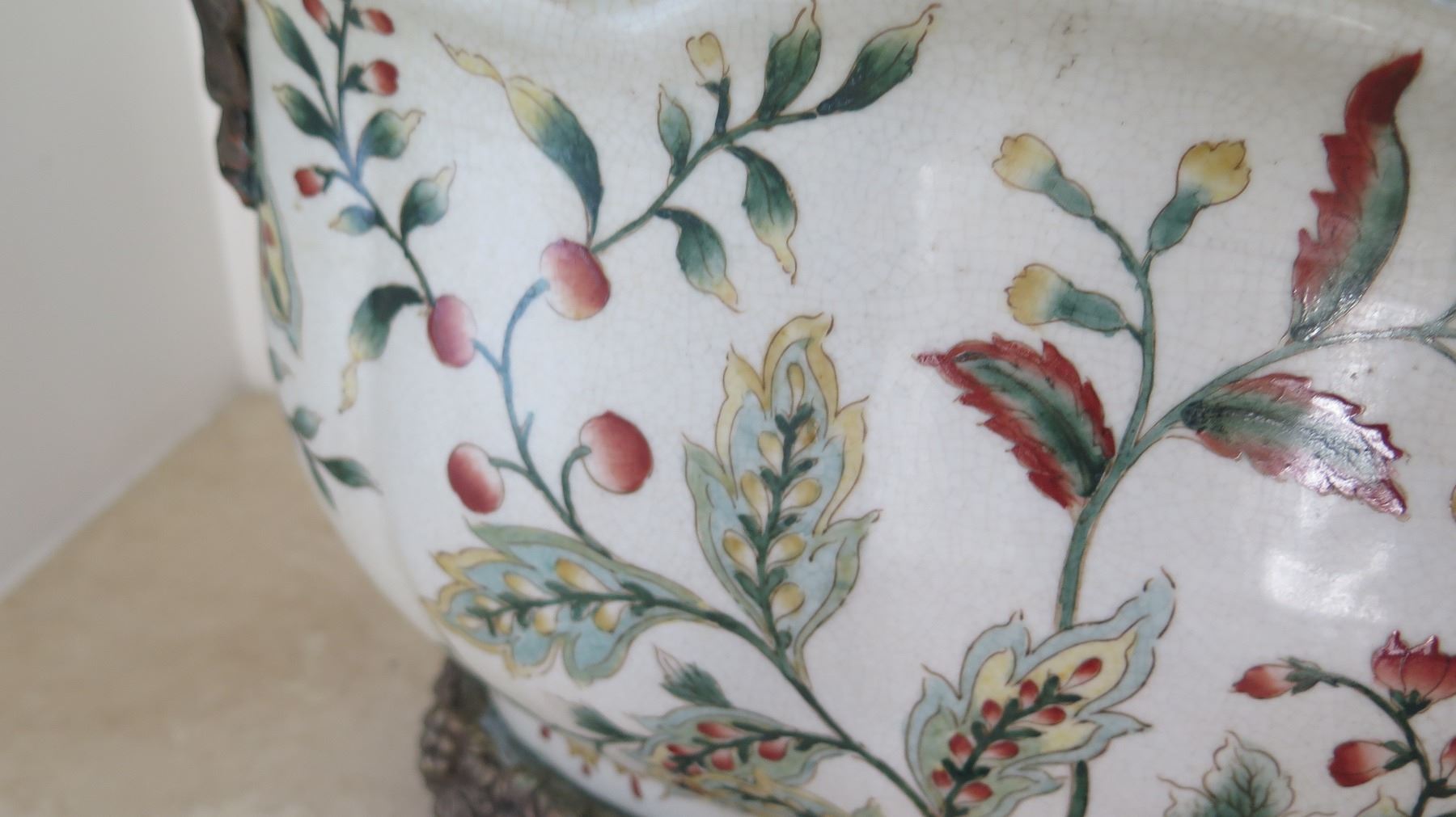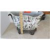 Painted Glazed Ceramic Bowl w/Metal Base & Handles