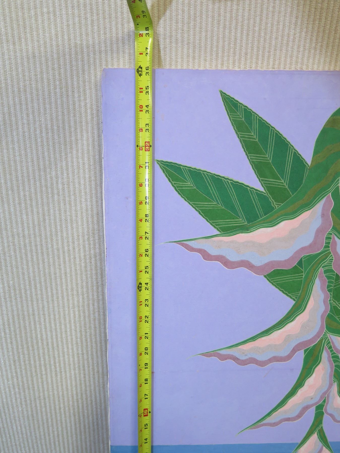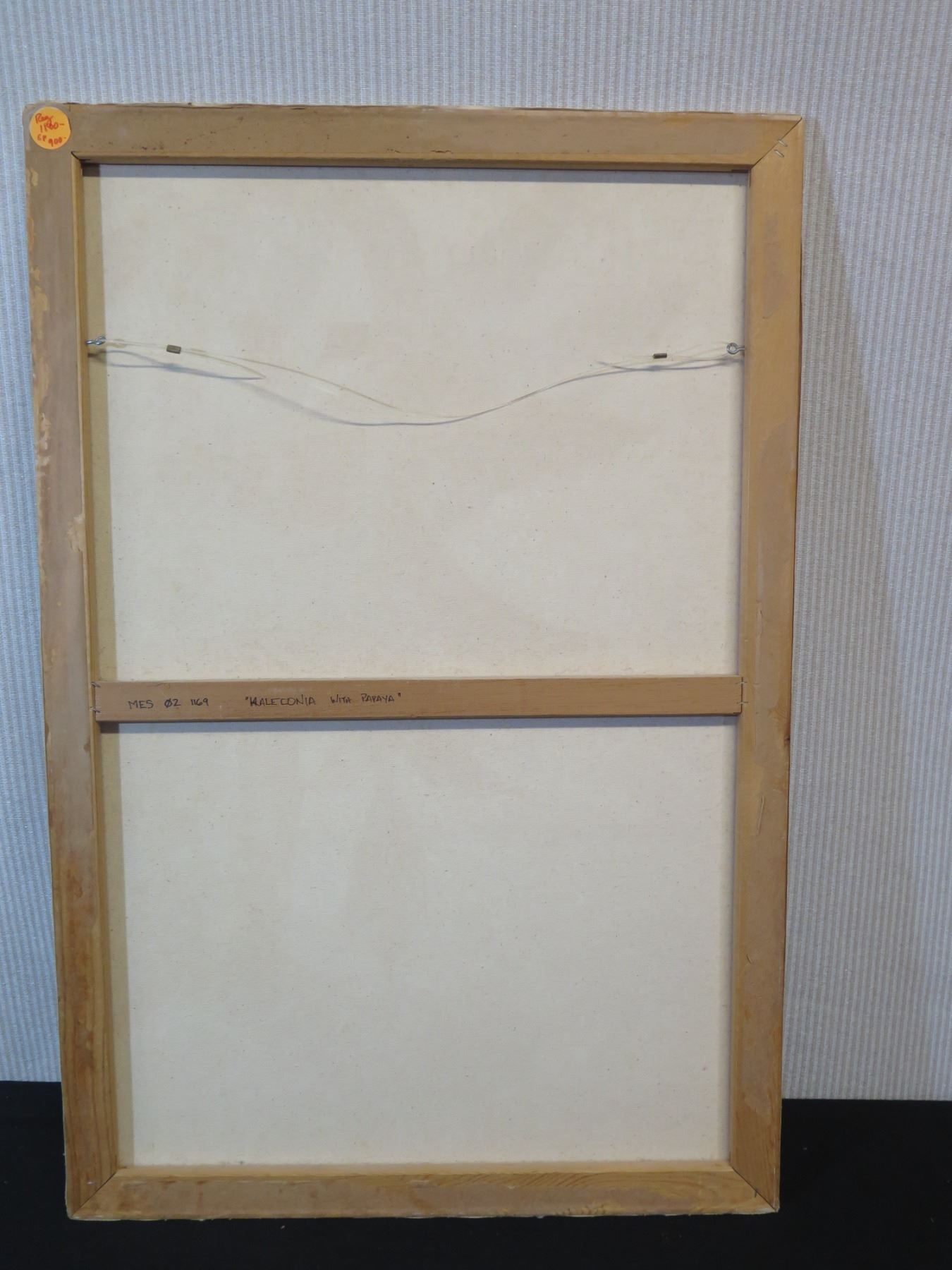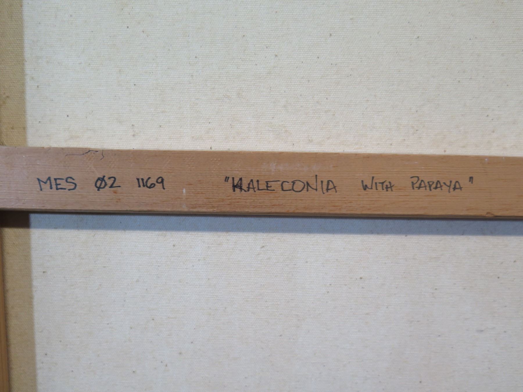 Painting on Canvas, Heliconia With Papaya, Marked "Mes 02 1169" Unframed 24" x 36"