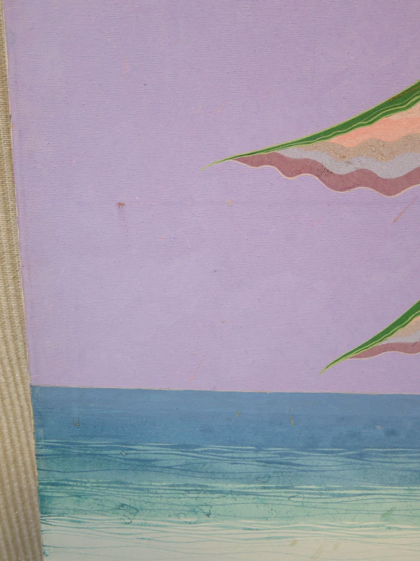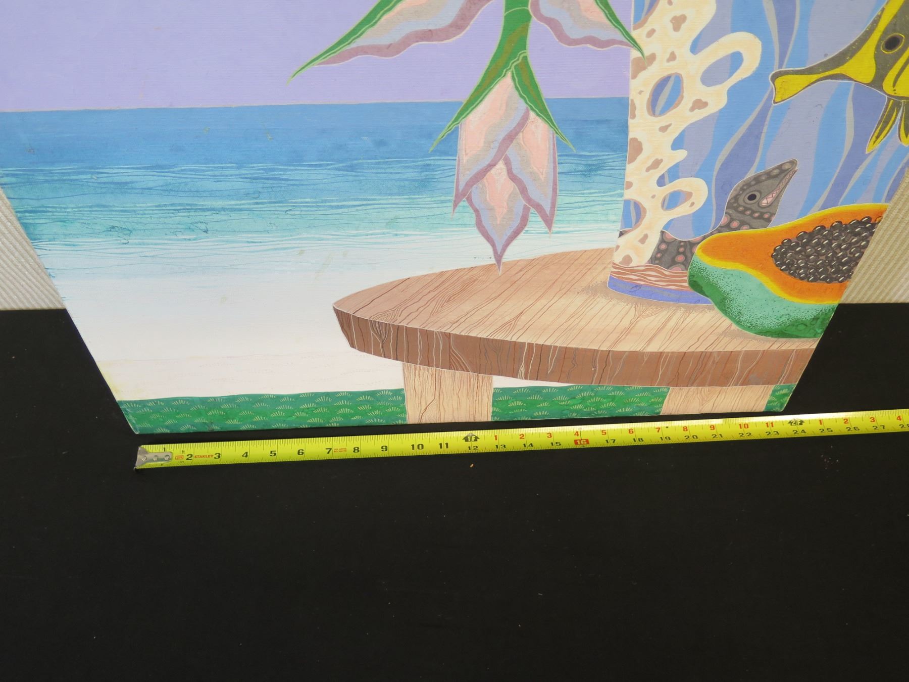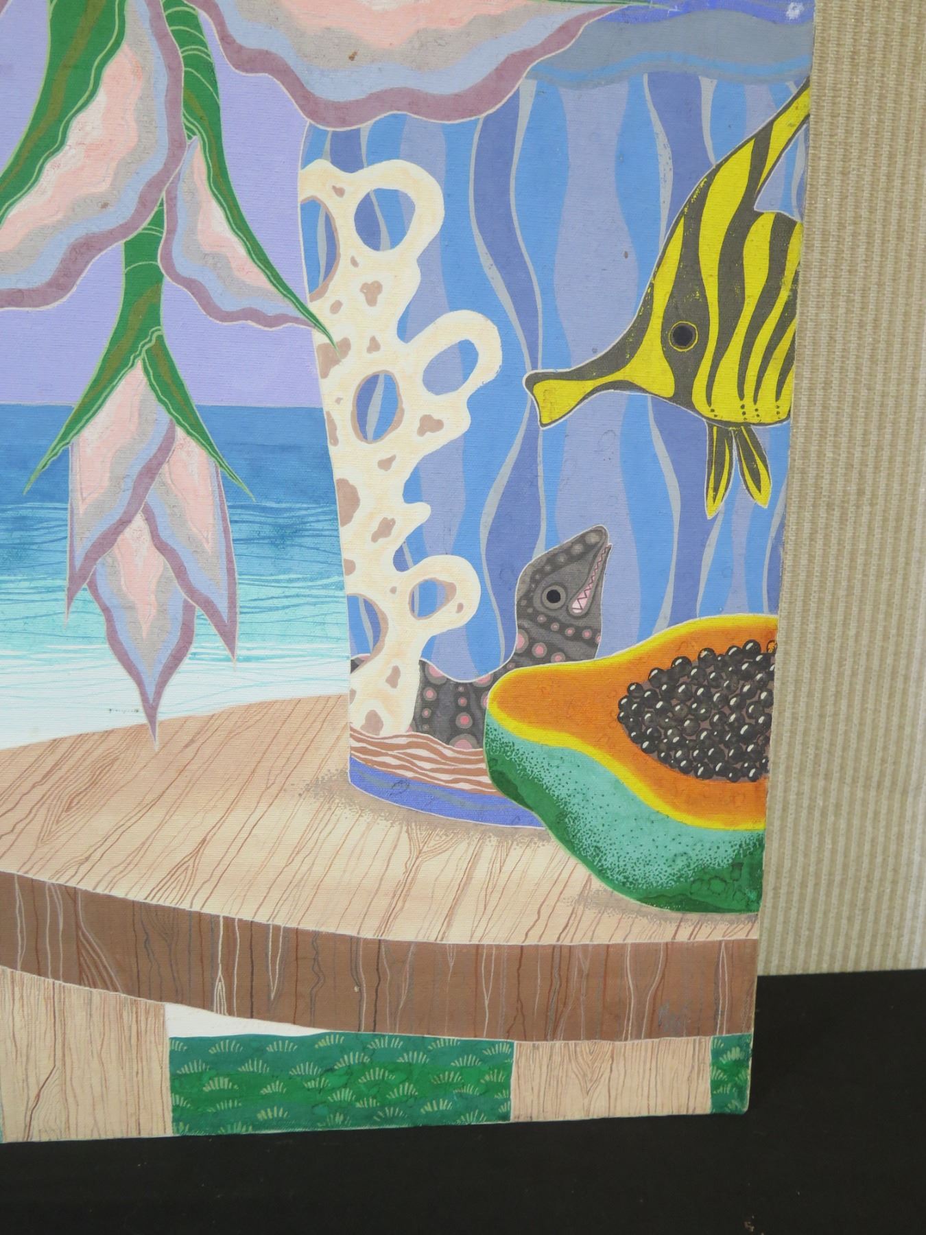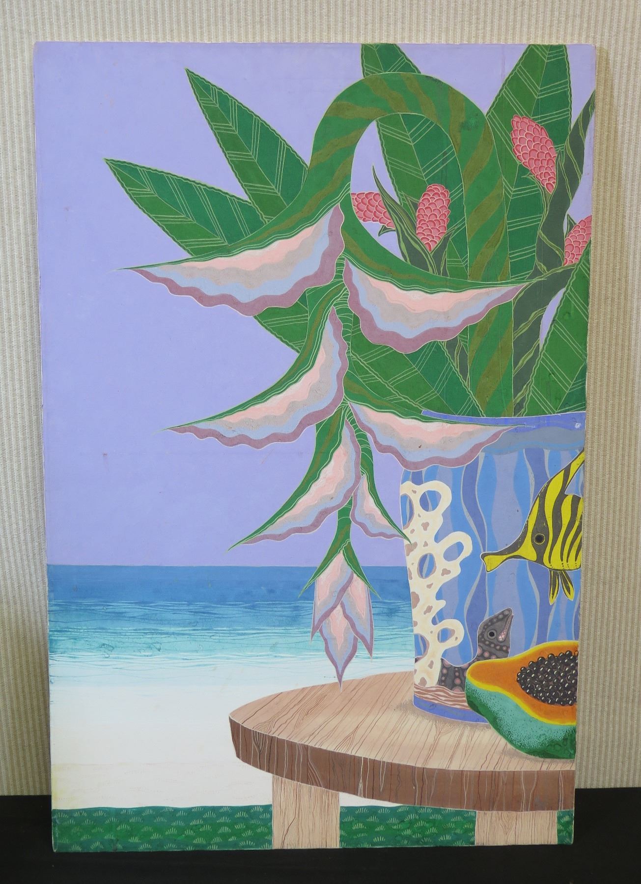 Painting on Canvas, Heliconia With Papaya, Marked "Mes 02 1169" Unframed 24" x 36"