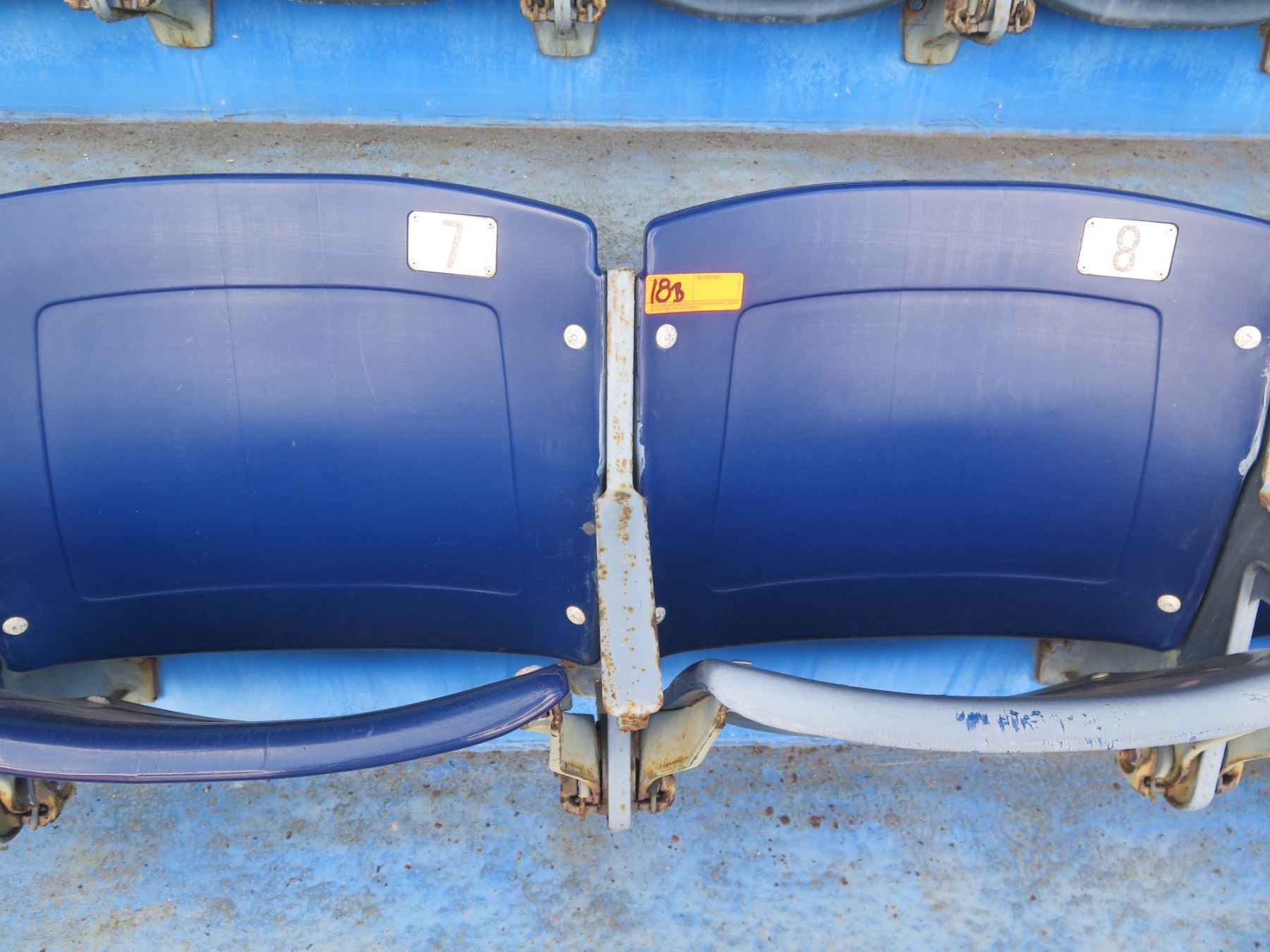 Pair Aloha Stadium Seats w/ Backs & 3 Armrests, Blue, Seats 7 & 8, 45"x13"x28"H. Note: Seats have been removed for pick up