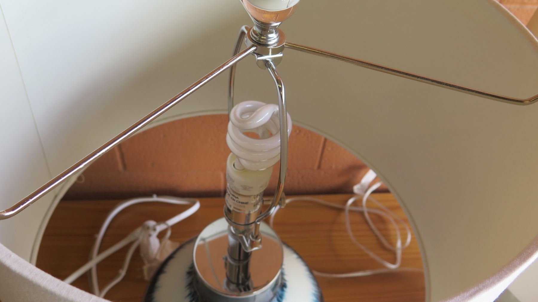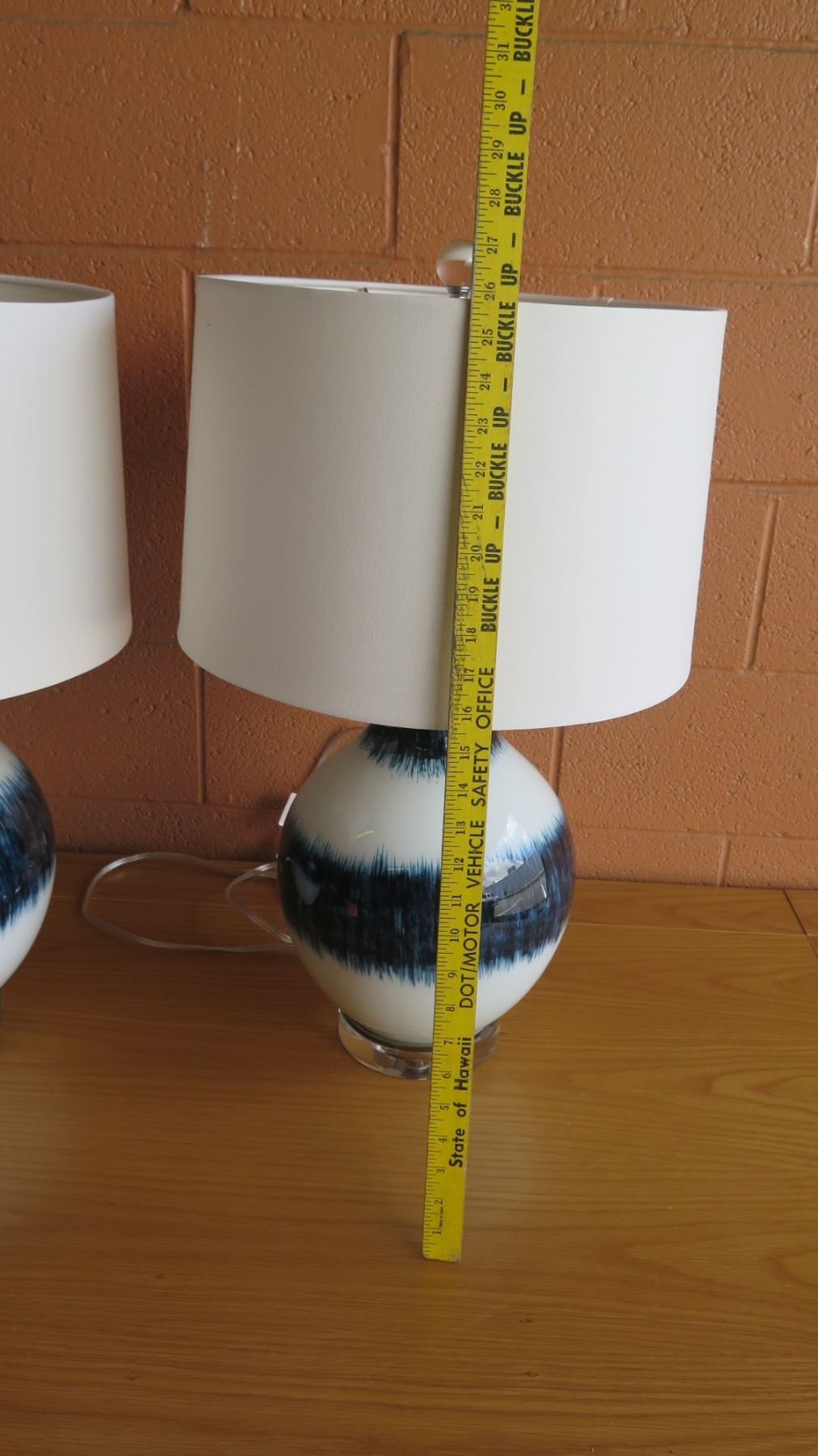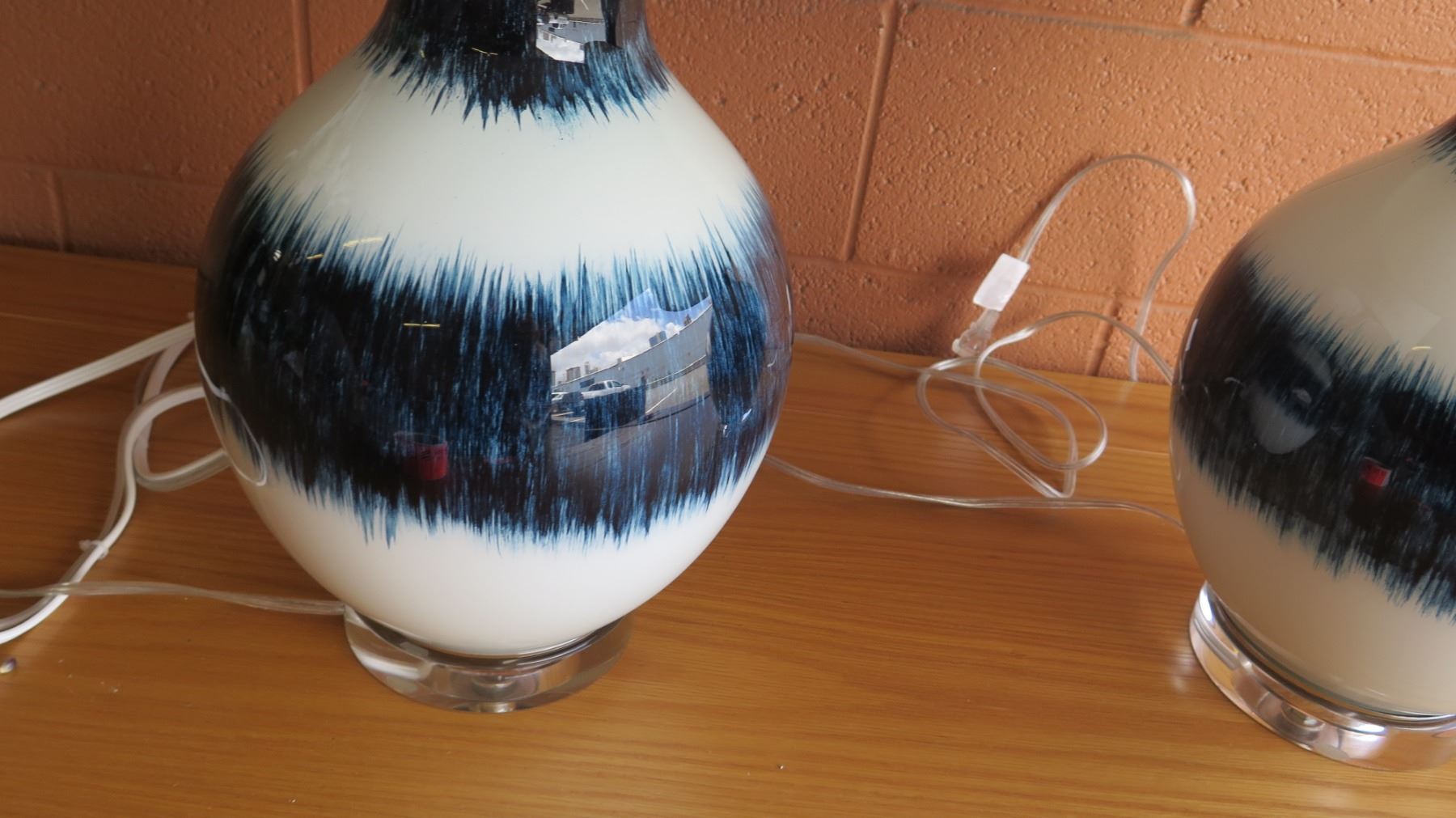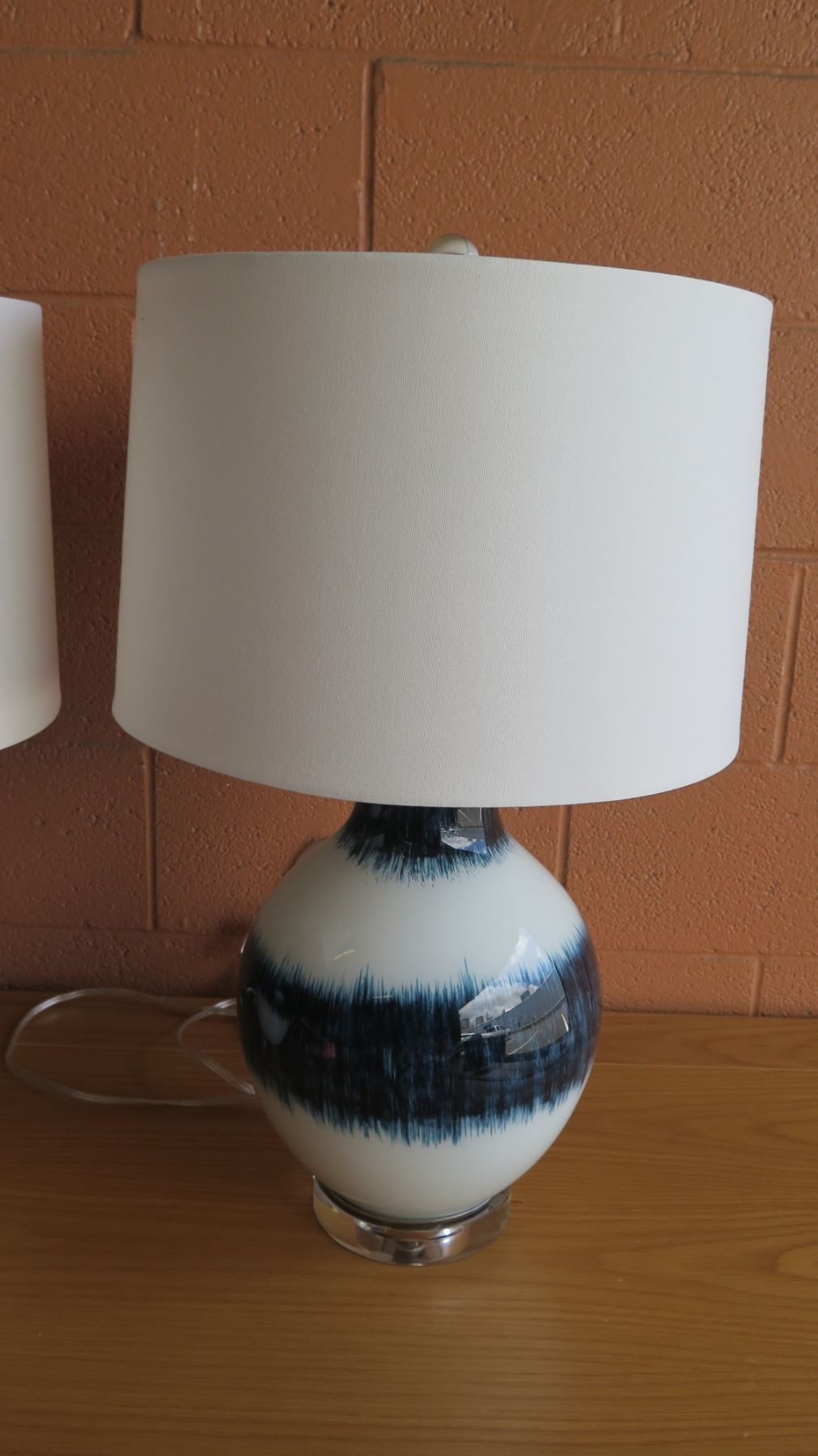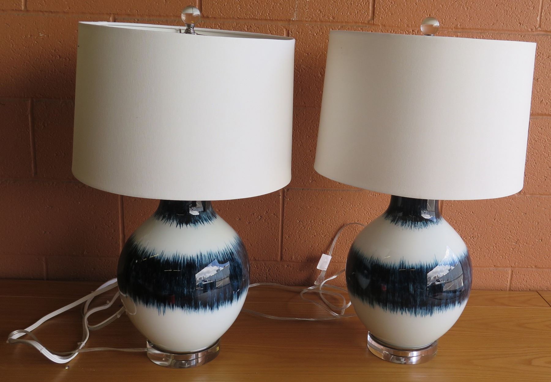 Pair: Blue/White Glazed Ceramic Lamps w/ Shades 26"H