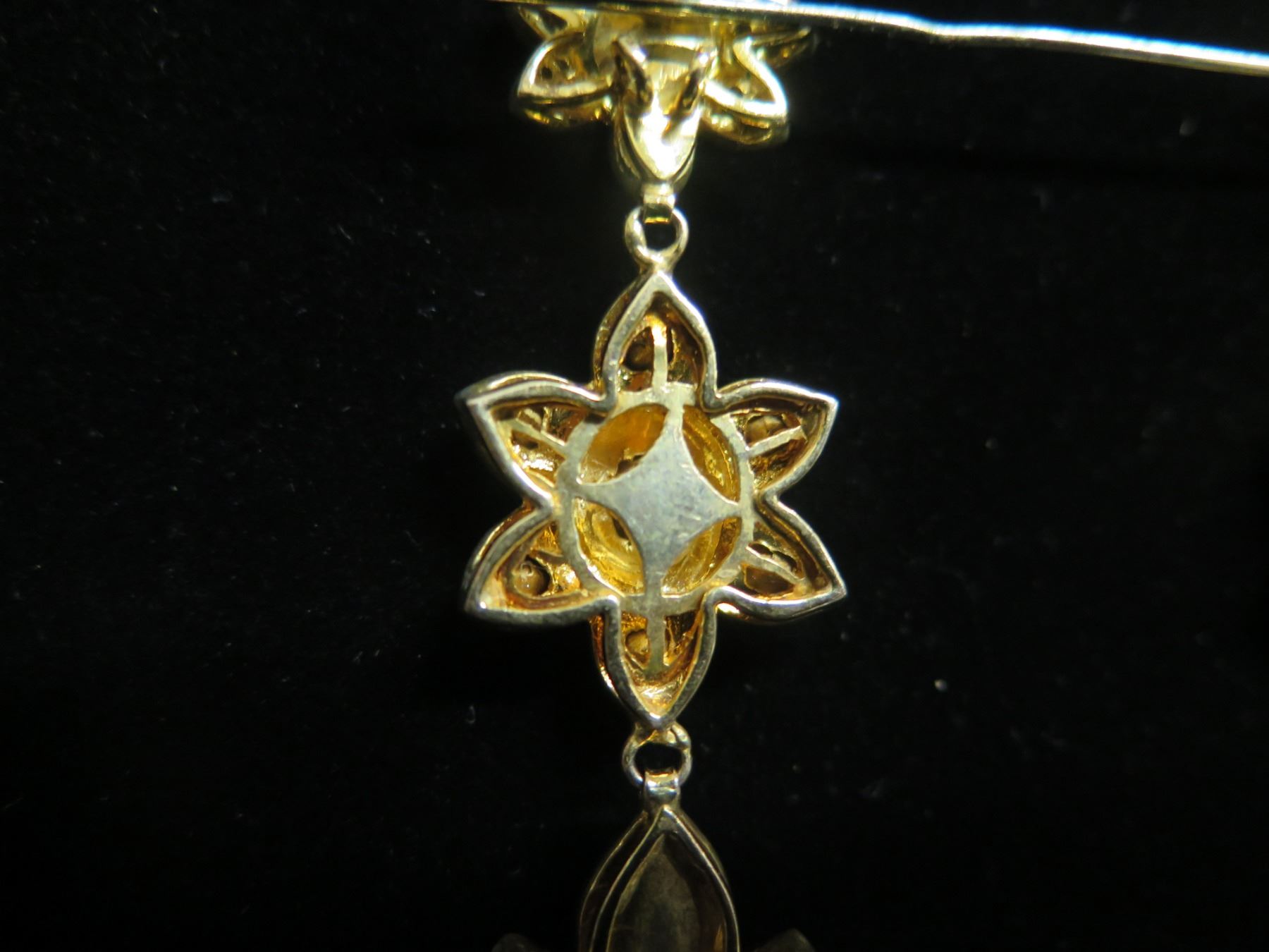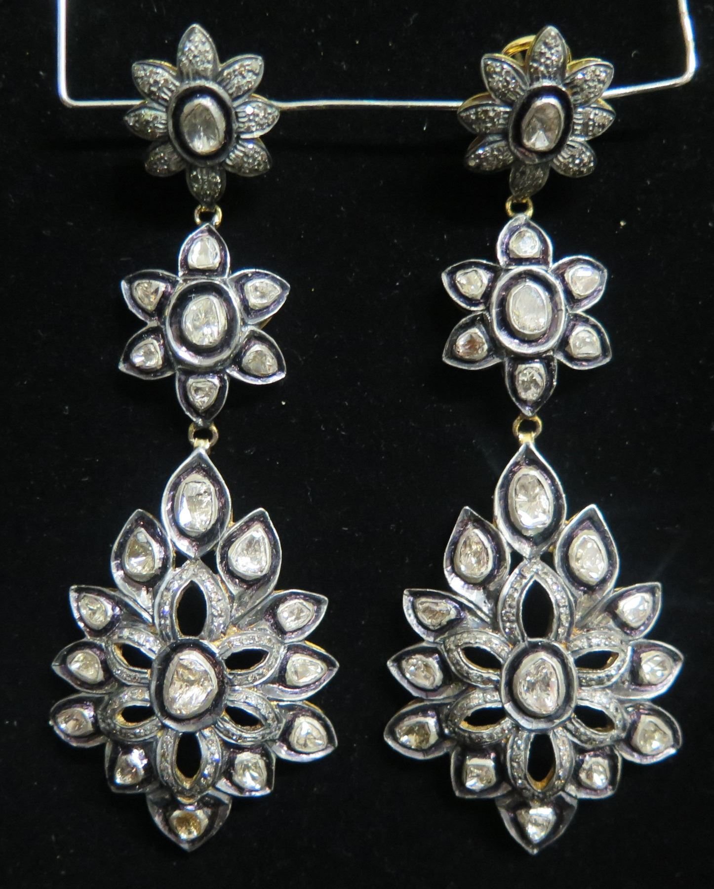 Pair Dangle Earrings w/ Cluster Floral Motif, Pierced Earrings 3.5"L