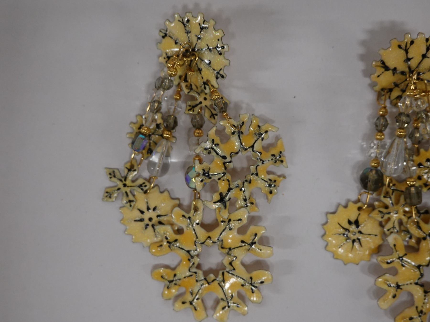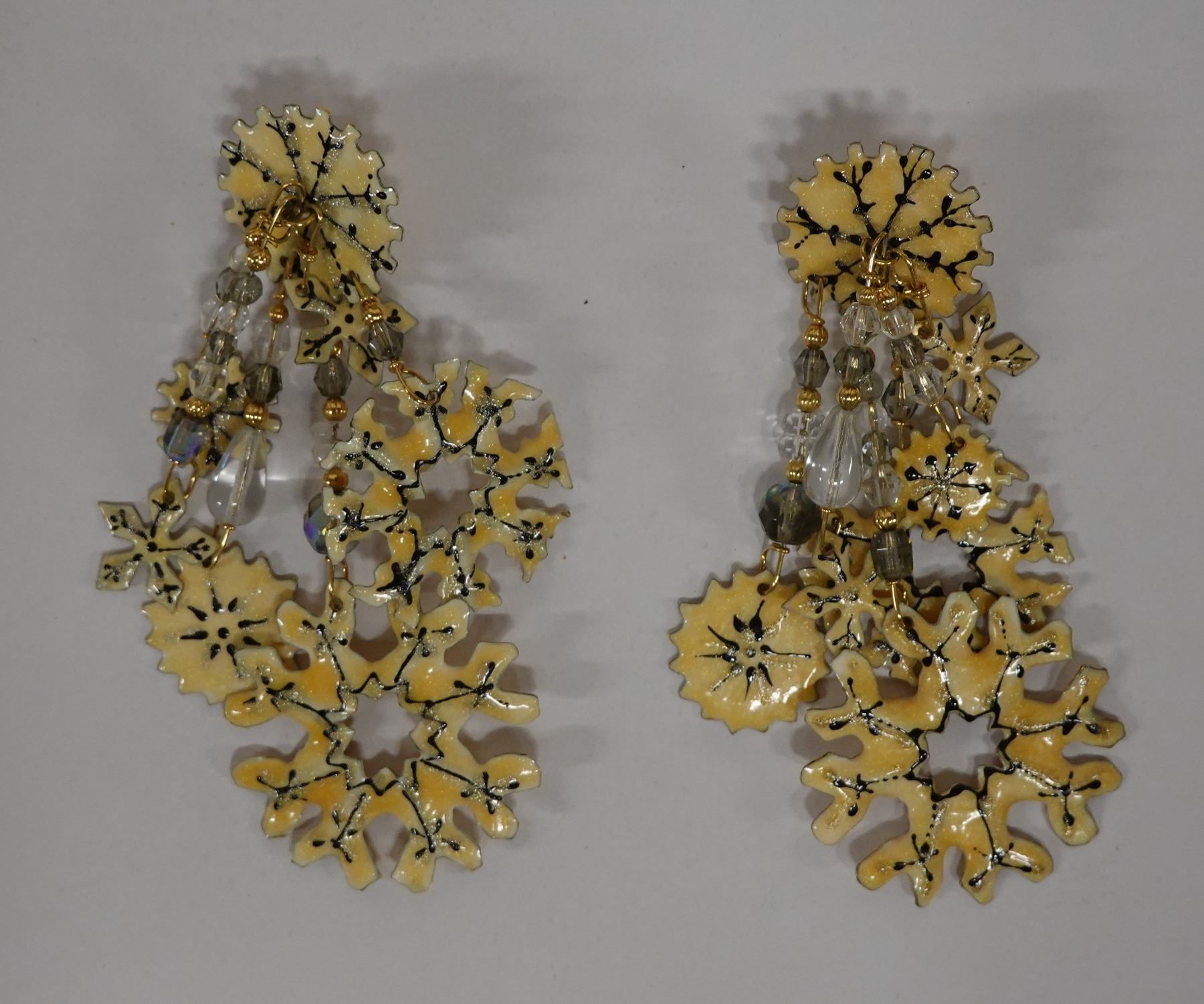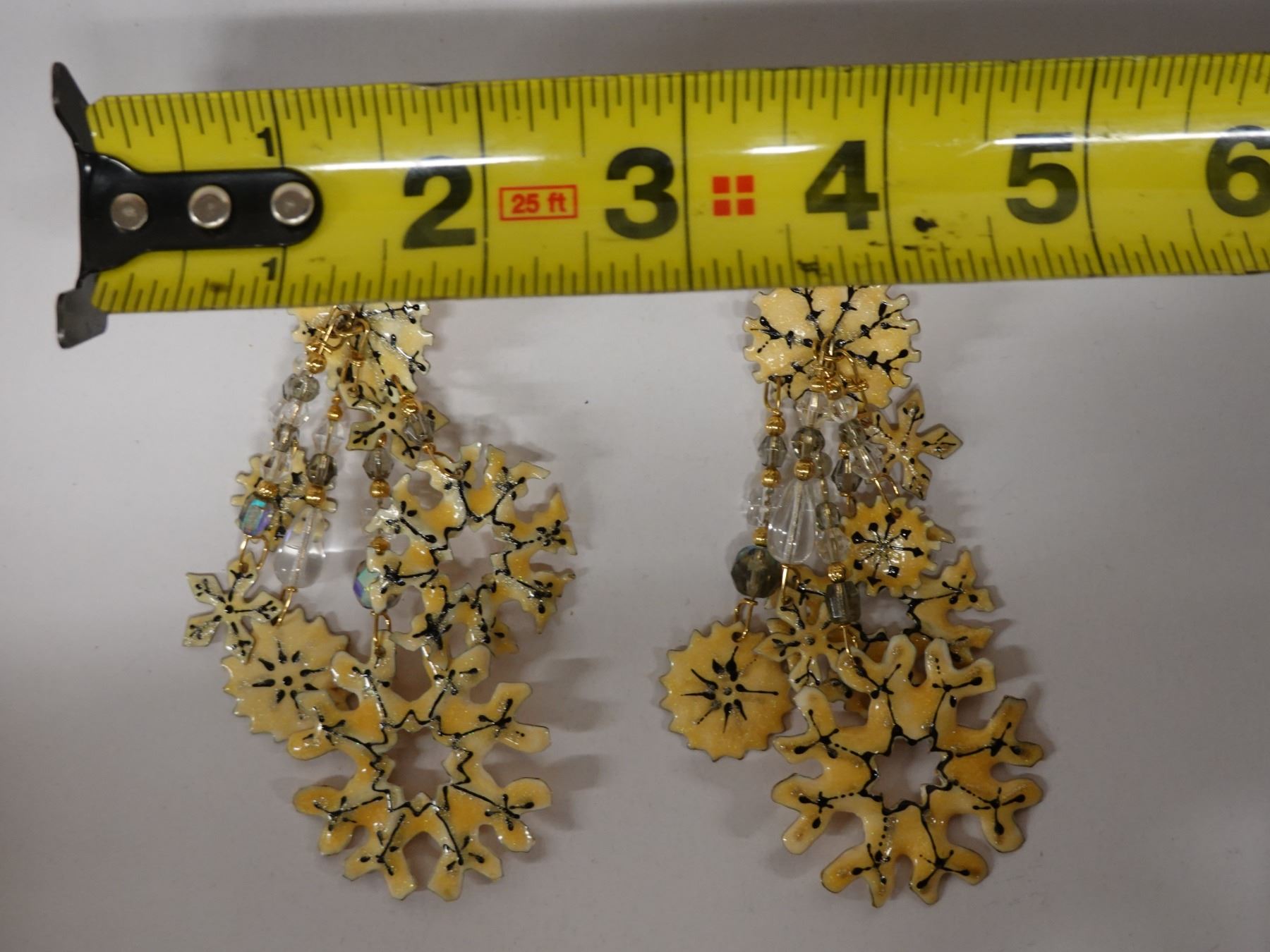 Pair Large Vintage Lunch at the Ritz Earrings w/ Crystal Star Snowflake Design, Signed & Dated 1985?, 3.5"L