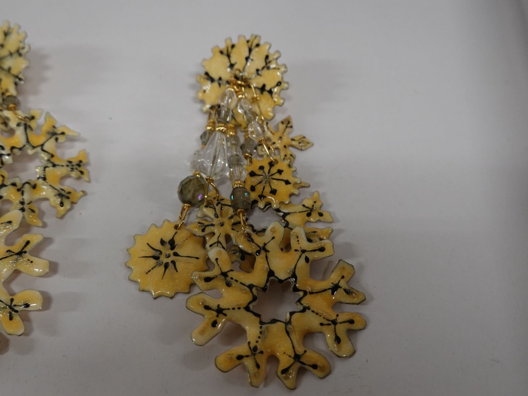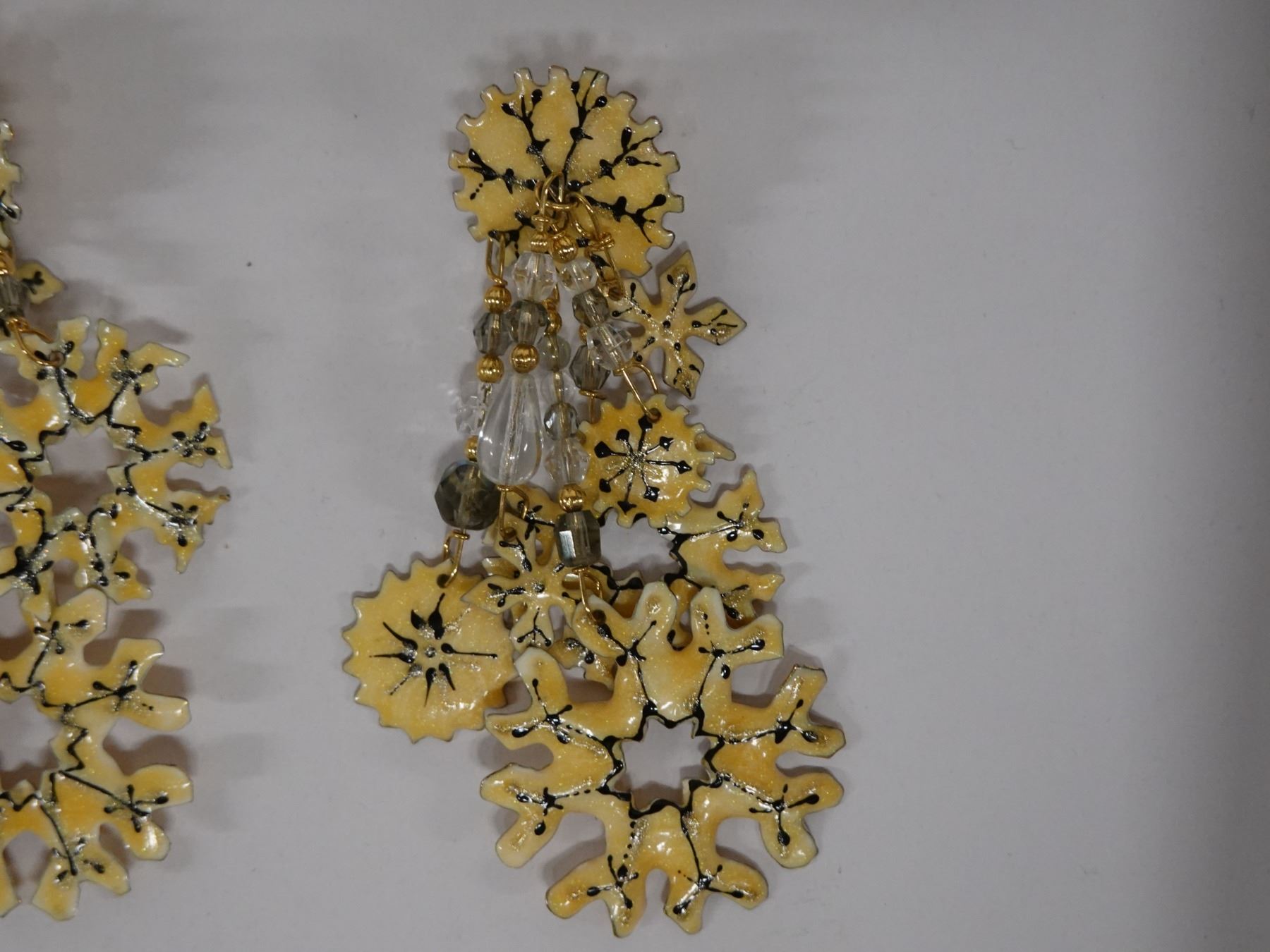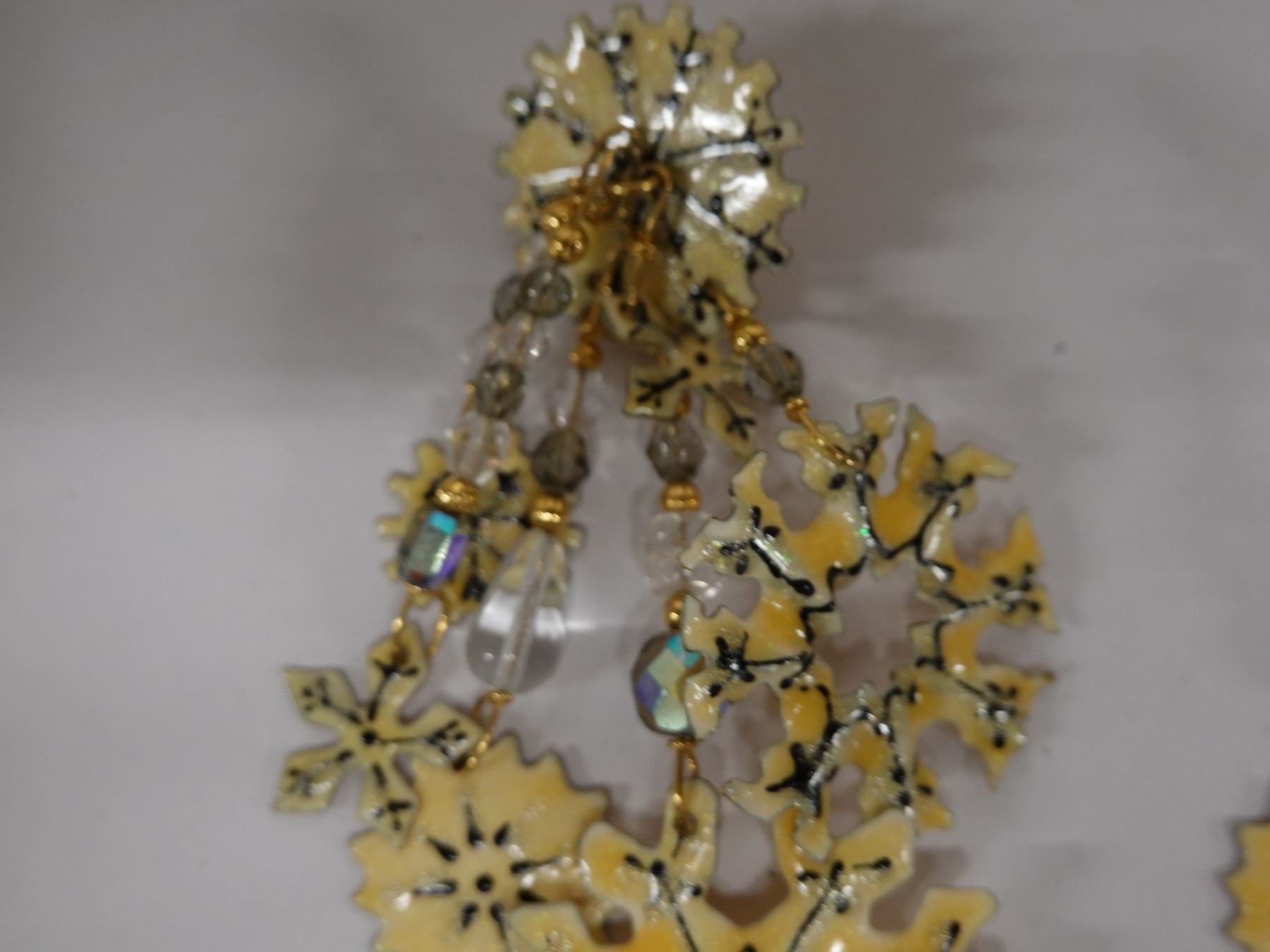 Pair Large Vintage Lunch at the Ritz Earrings w/ Crystal Star Snowflake Design, Signed & Dated 1985?, 3.5"L