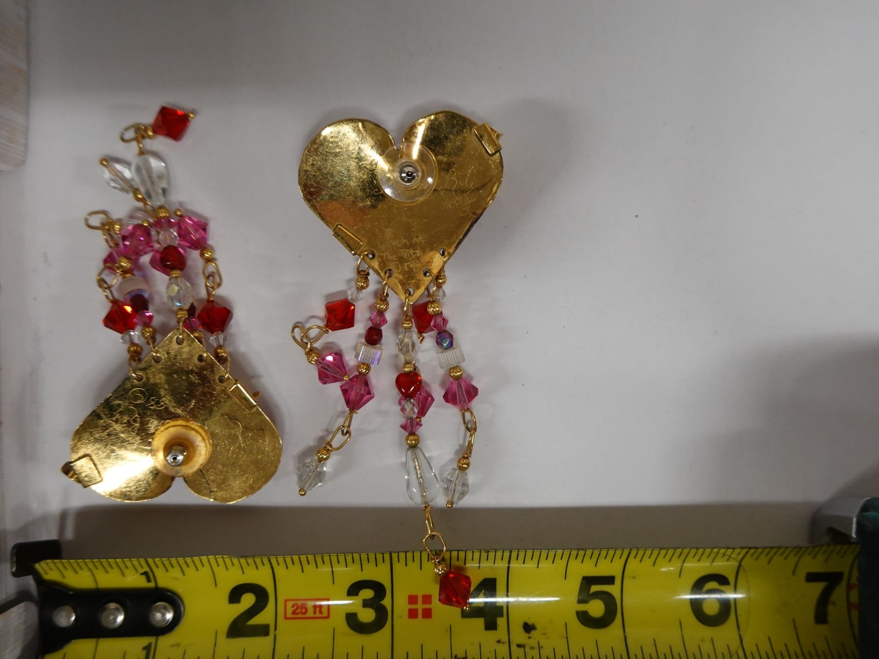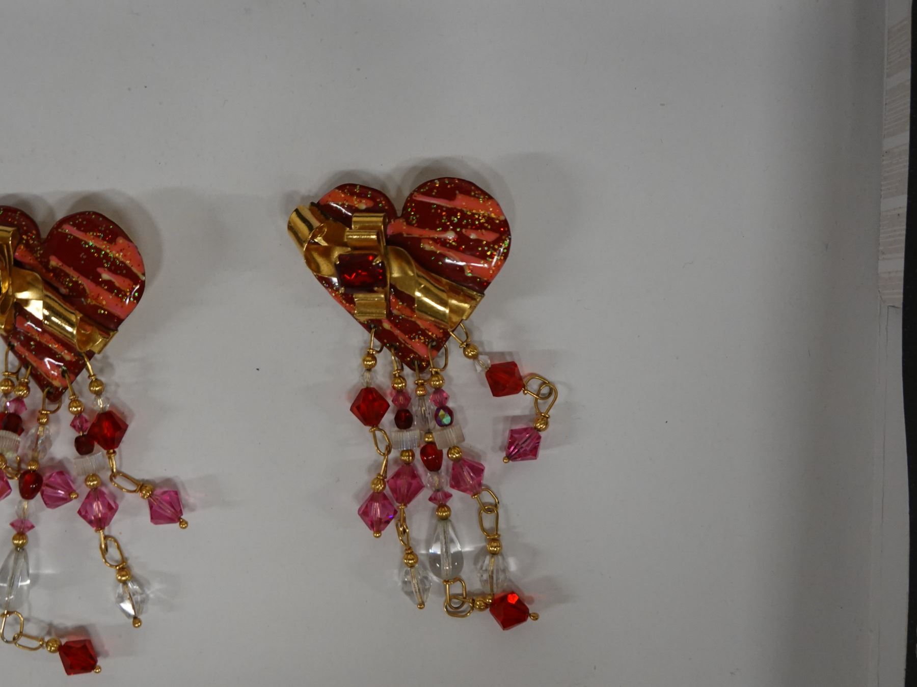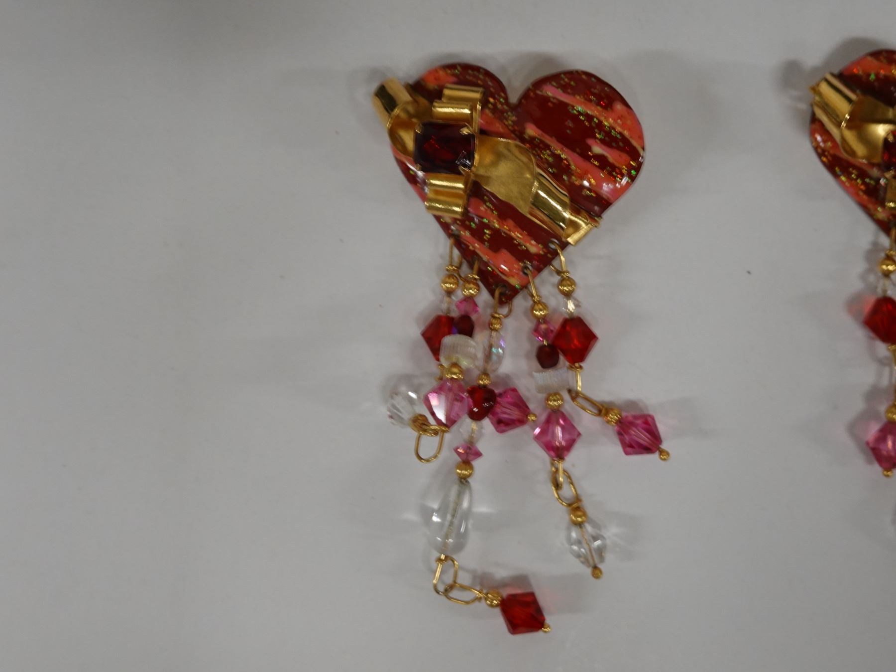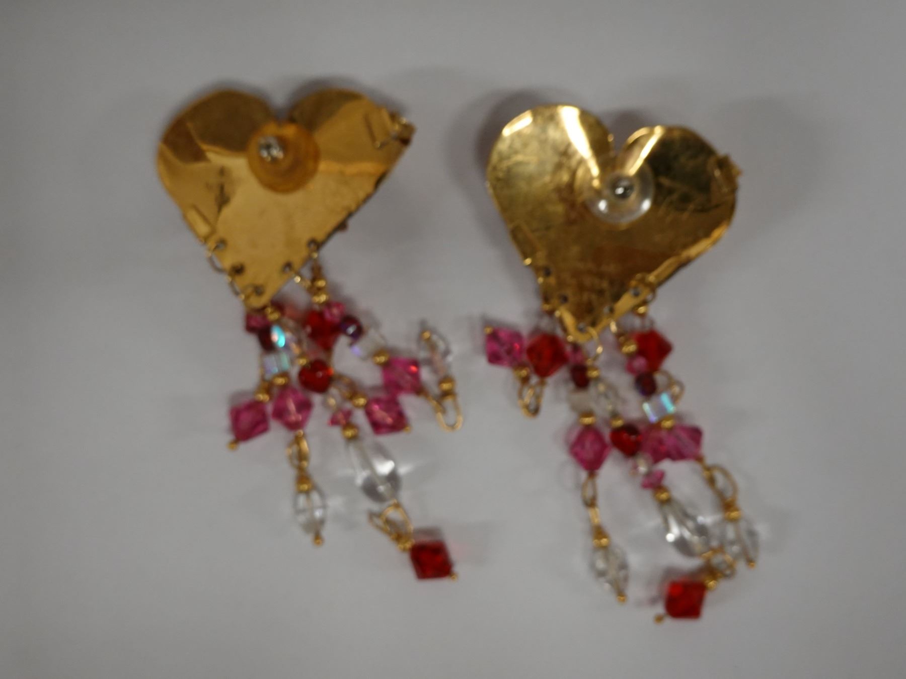 Pair Large Vintage Lunch at the Ritz Earrings w/ Hearts Design, Signed & Dated 1985?, 3"L