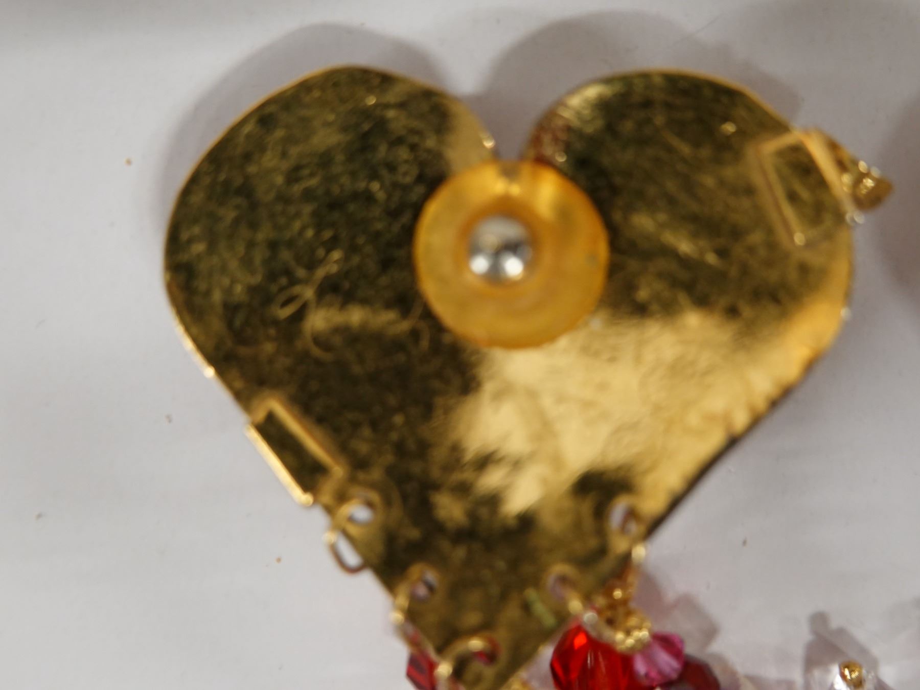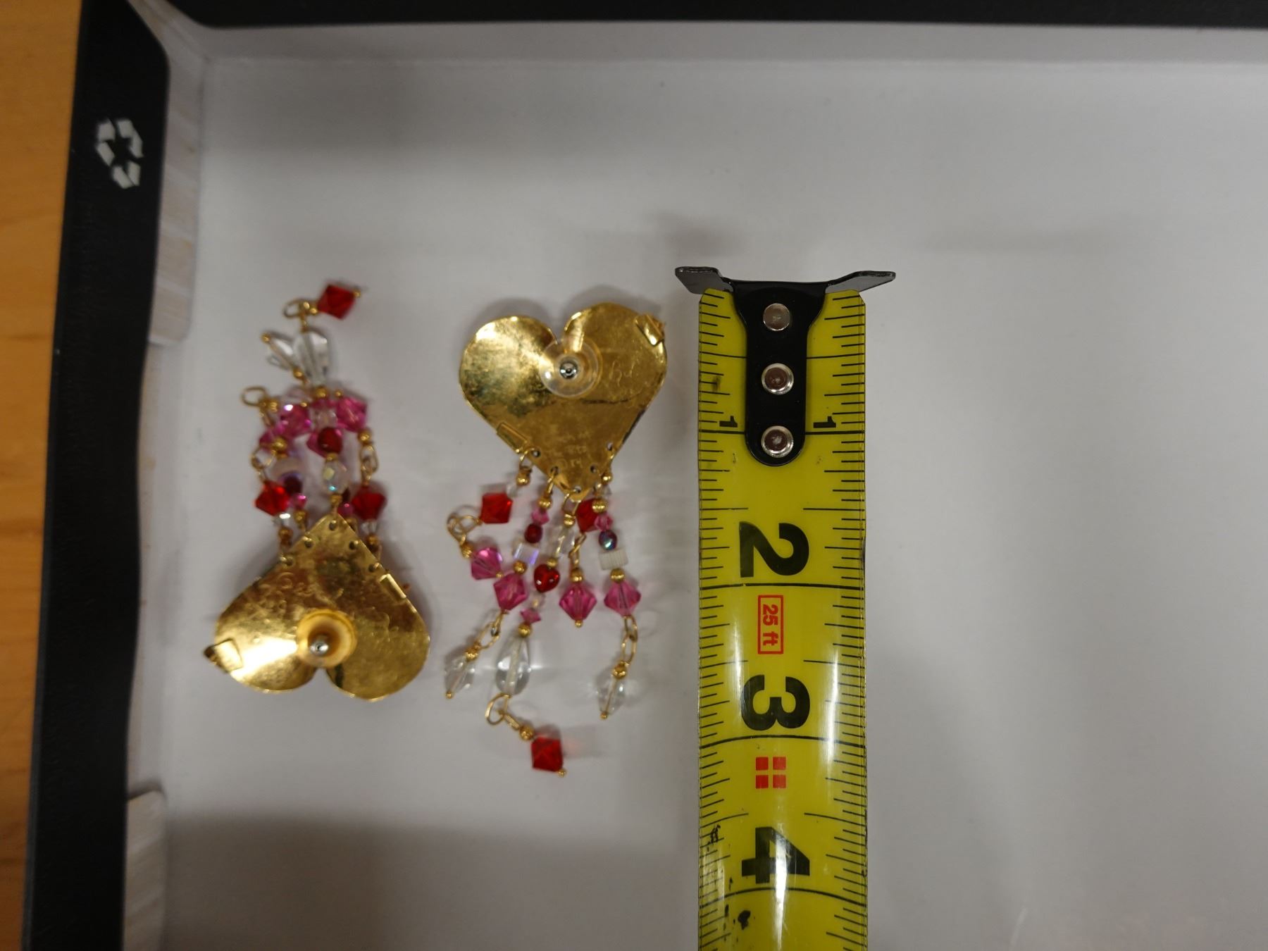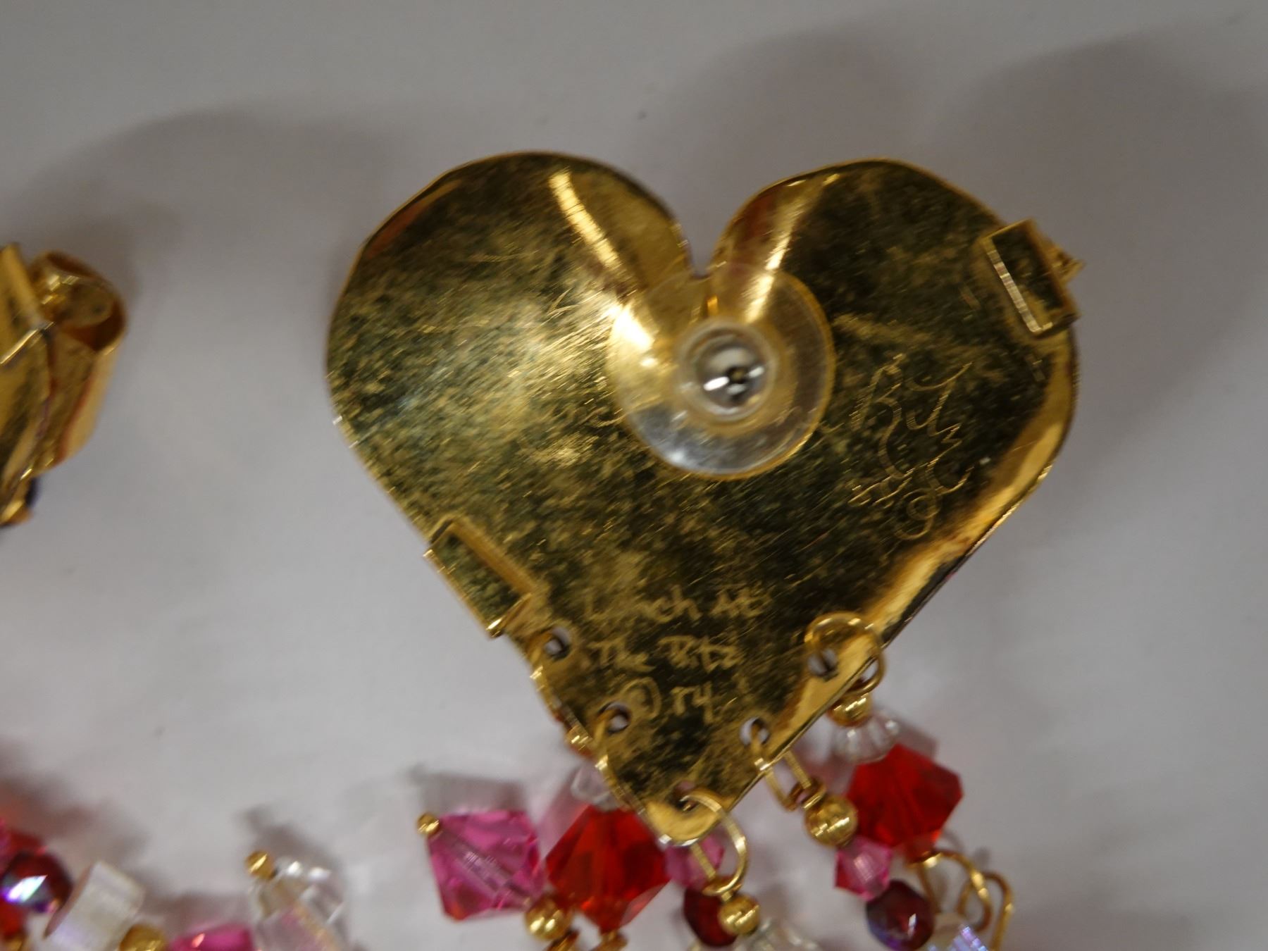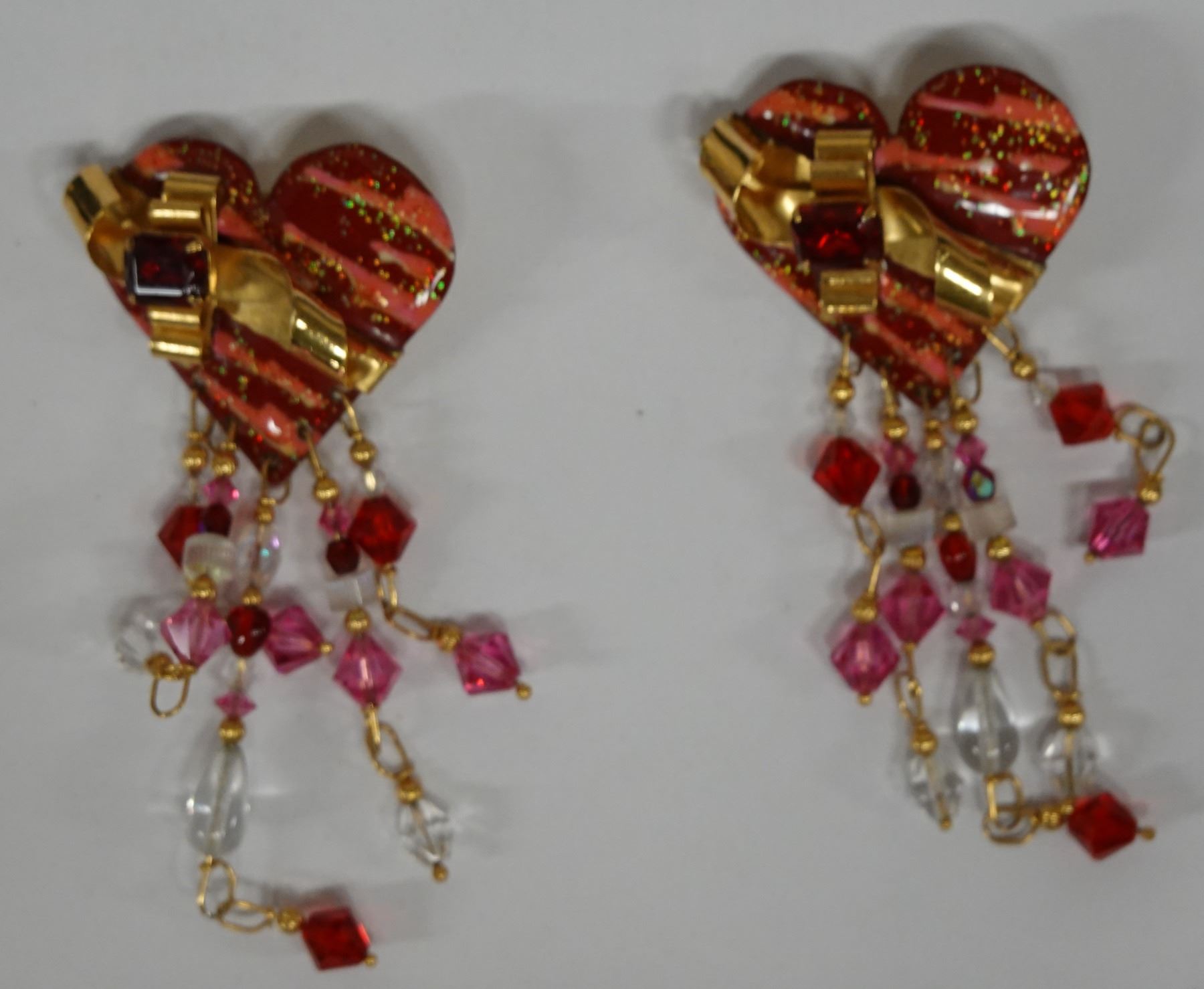 Pair Large Vintage Lunch at the Ritz Earrings w/ Hearts Design, Signed & Dated 1985?, 3"L
