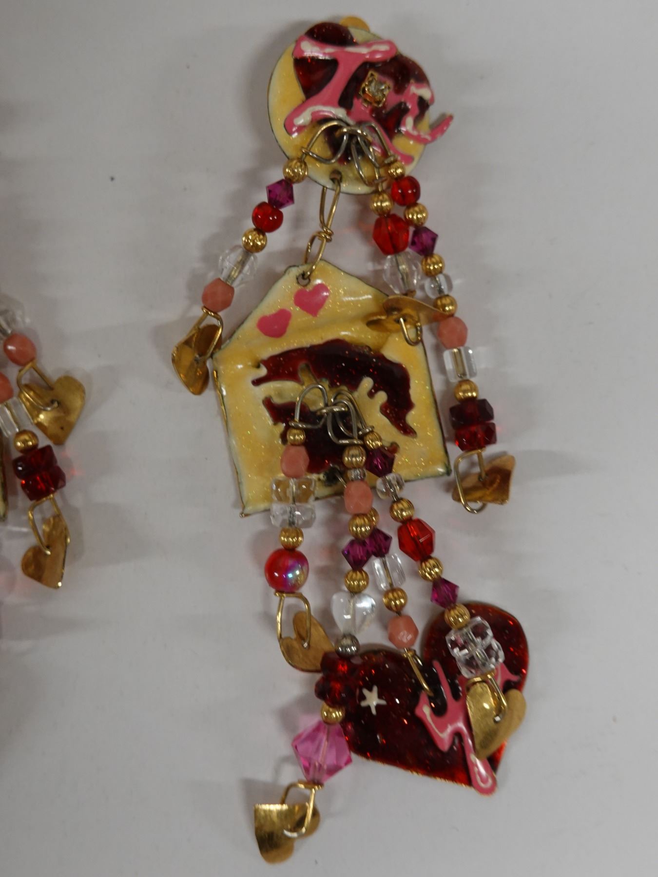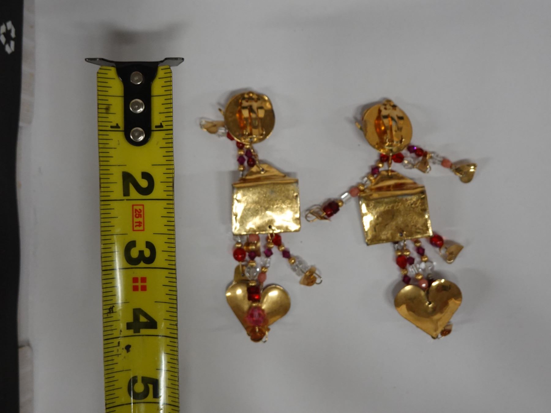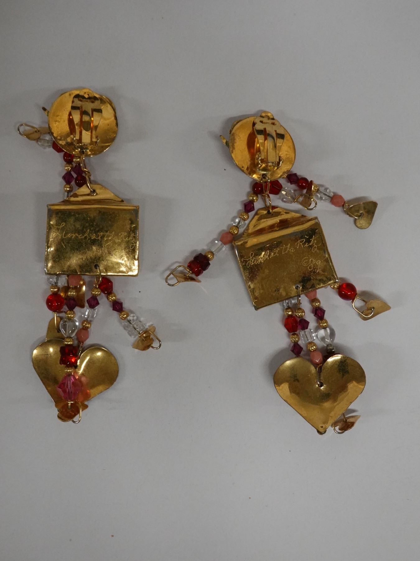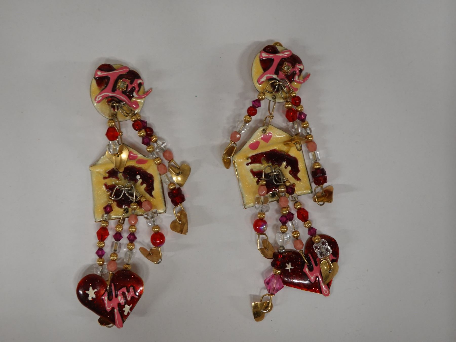 Pair Large Vintage Lunch at the Ritz Earrings w/ Love You Design, Signed & Dated 1989, 4"L