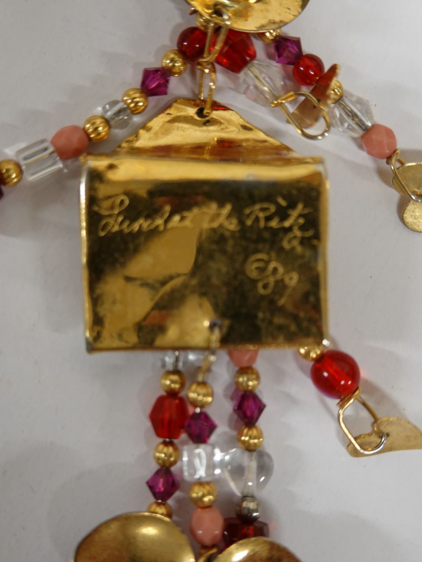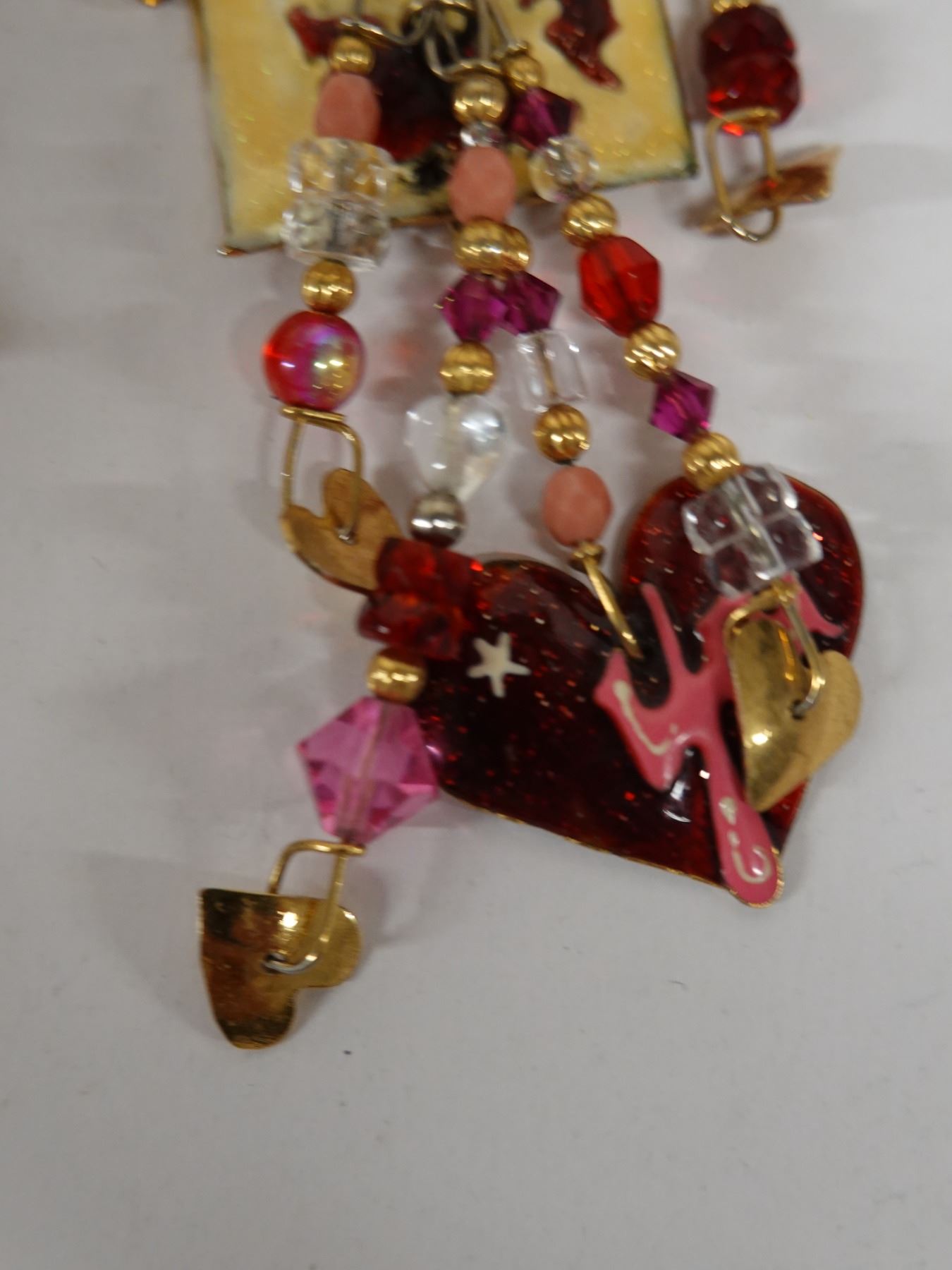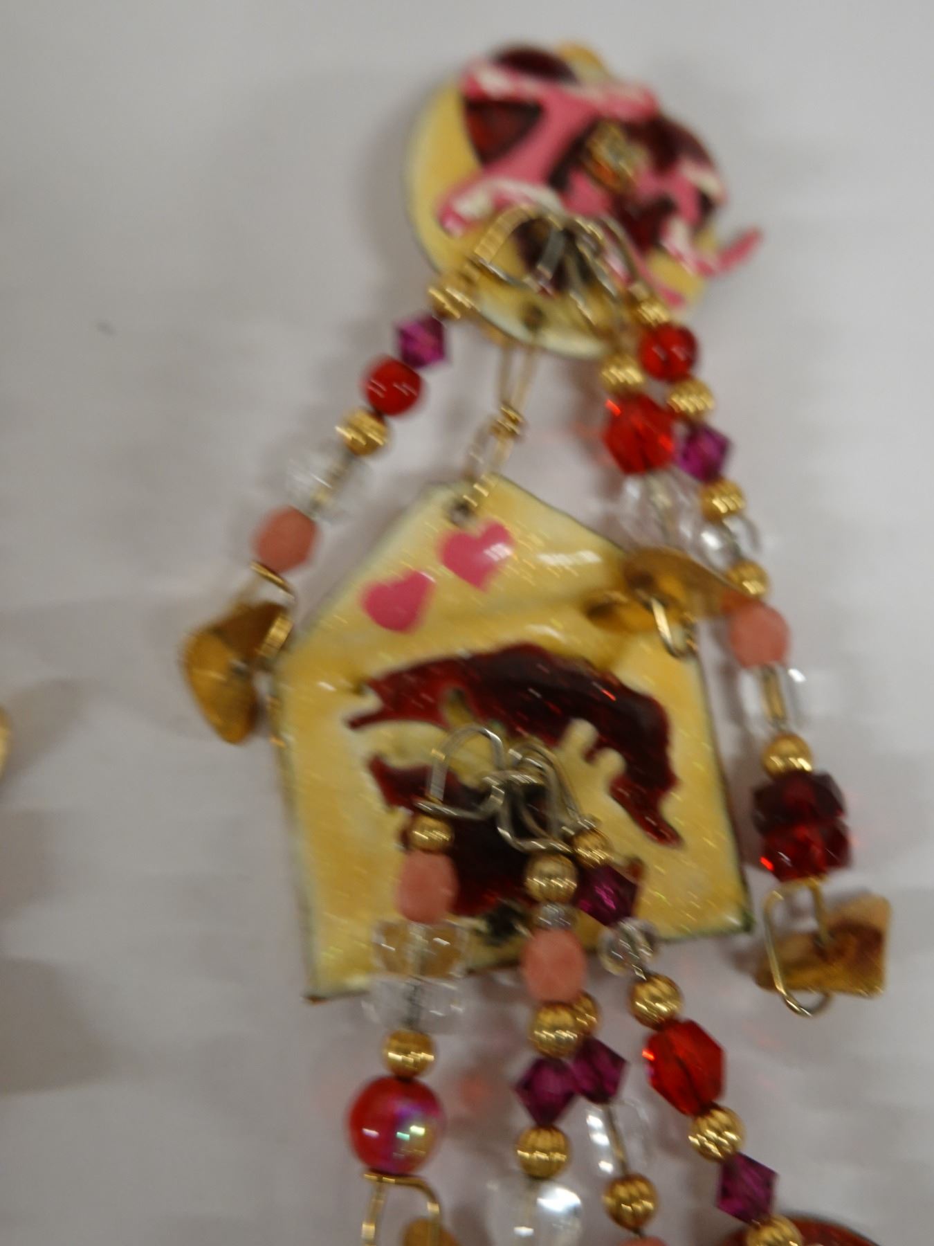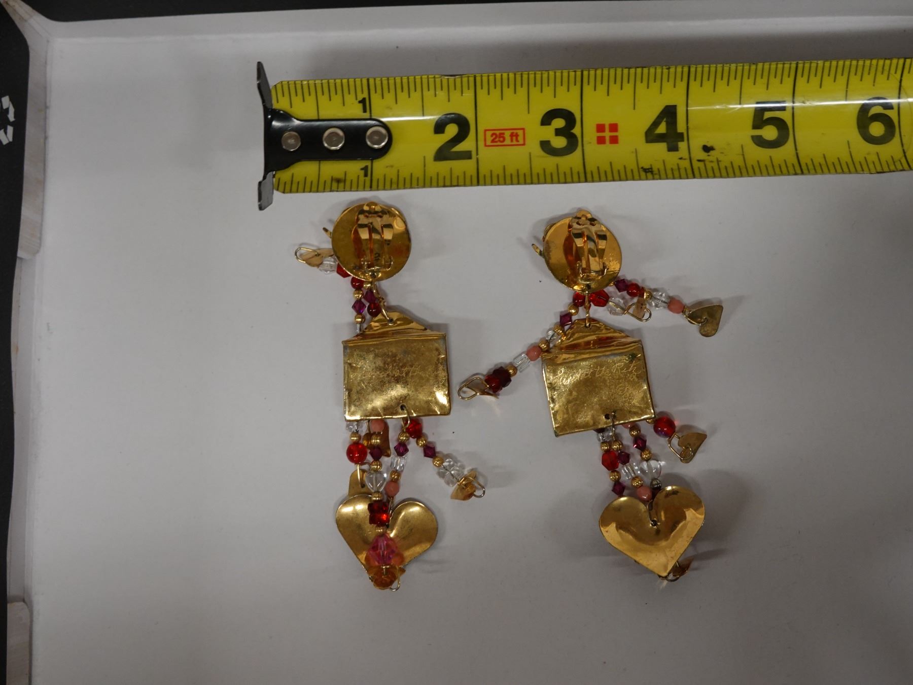 Pair Large Vintage Lunch at the Ritz Earrings w/ Love You Design, Signed & Dated 1989, 4"L