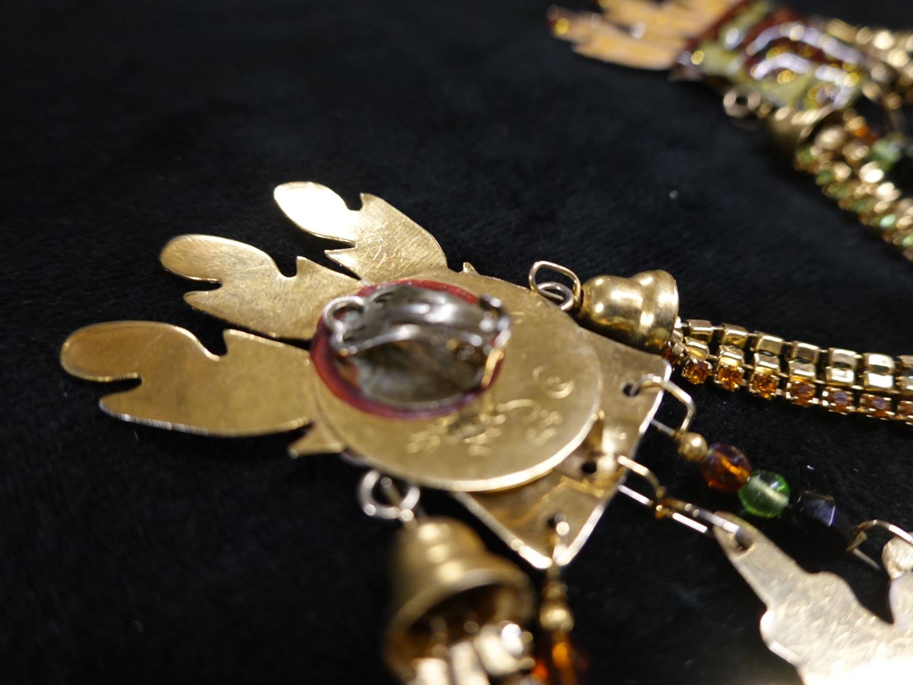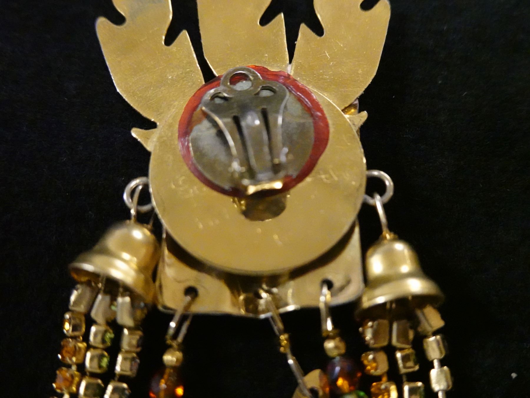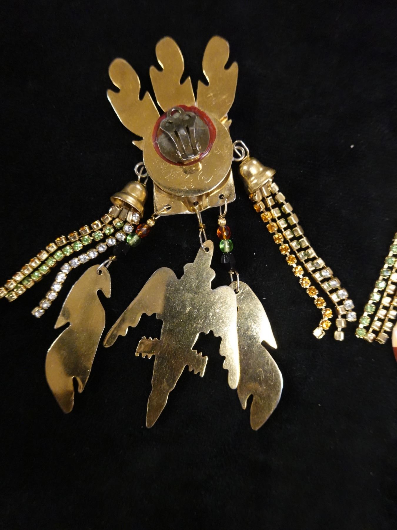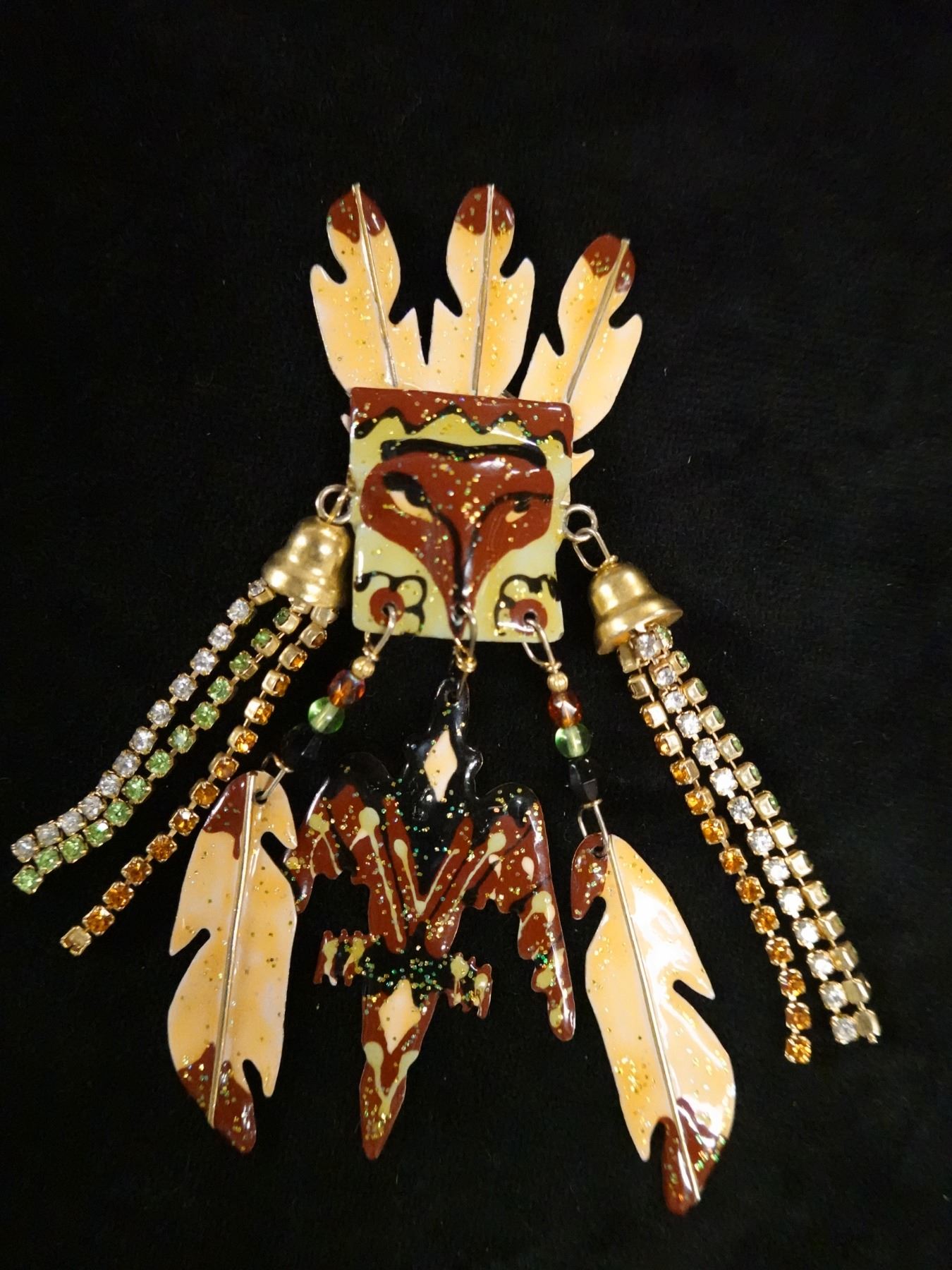 Pair Large Vintage Lunch at the Ritz Earrings w/ Tribal Mask Design, Signed & Dated 1985?, 3.5" x 4"
