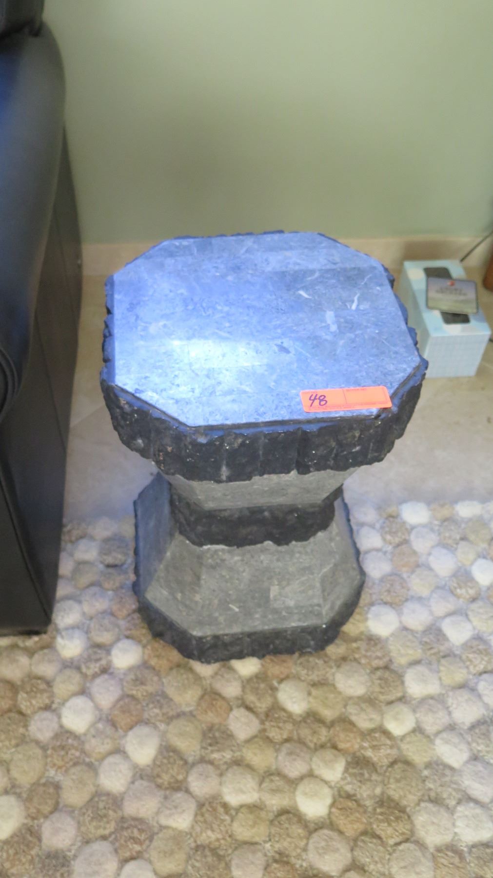 Pair: Natural Stone Pedestal End Tables, Approx. 20"x13"