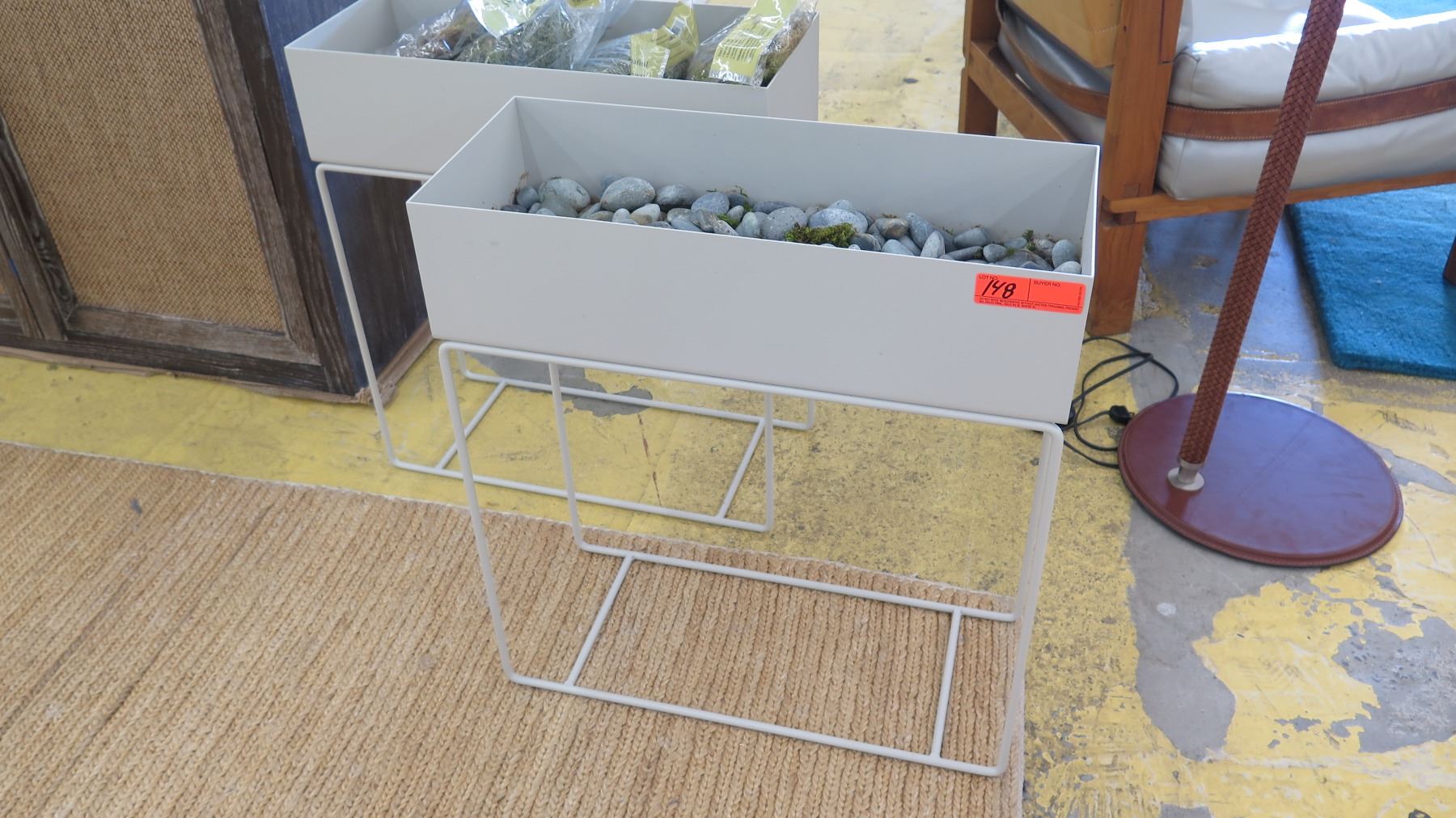 Pair: Powder-Coated Gray Metal Planter Stands w/Rocks & Moss, 15" H, 12" Dia.