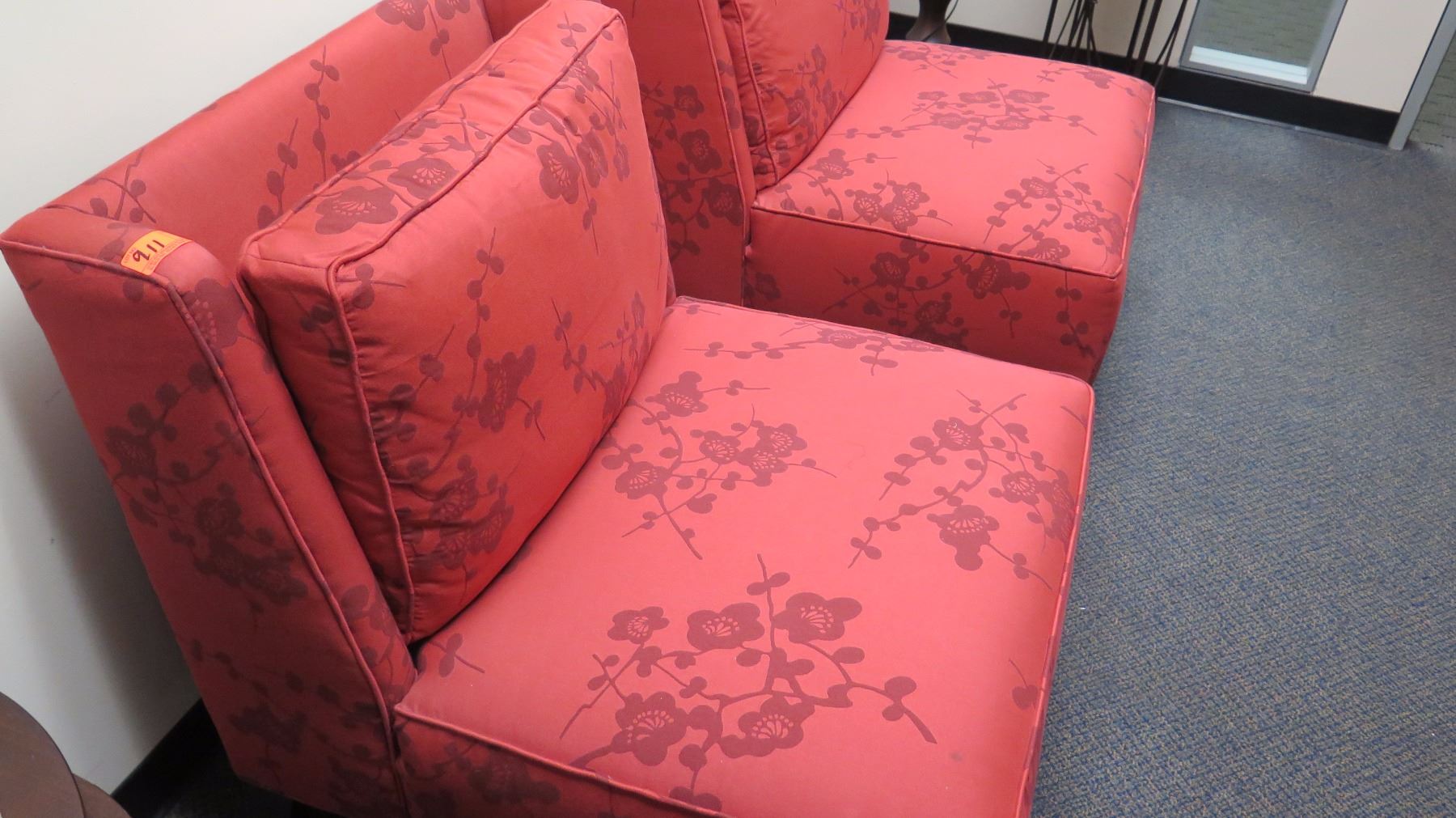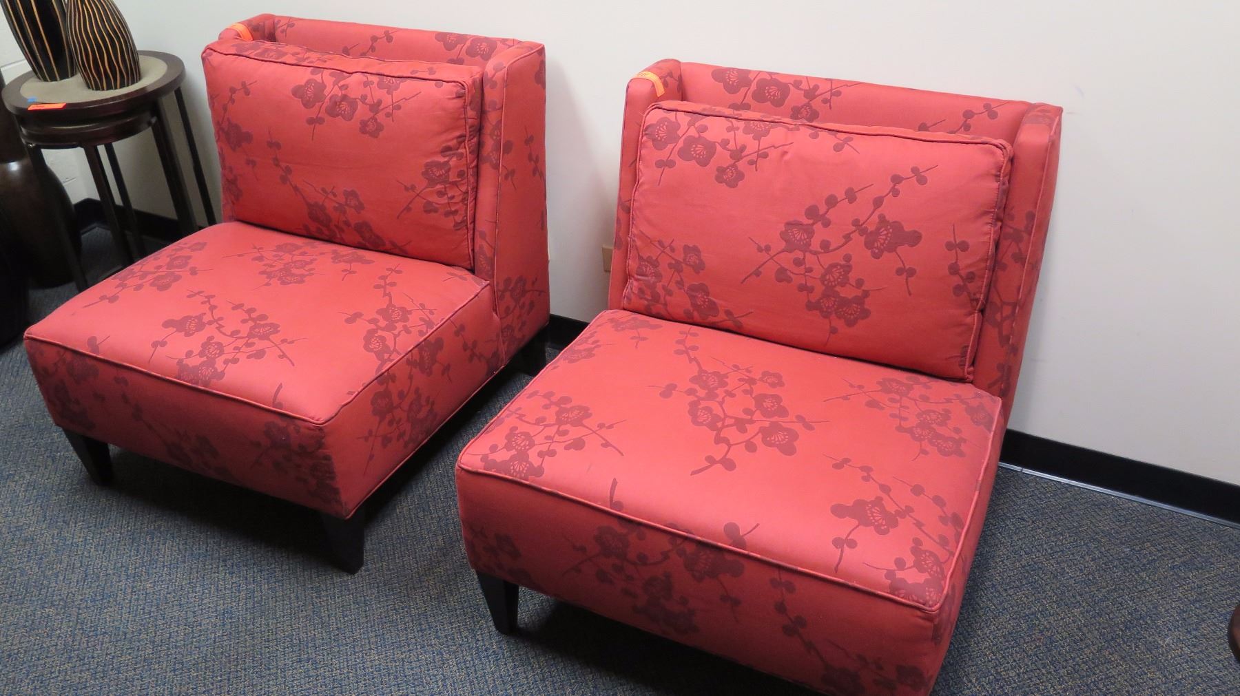 Pair: Red Upholstered Chairs, 32" W x 33" Depth, 33" H