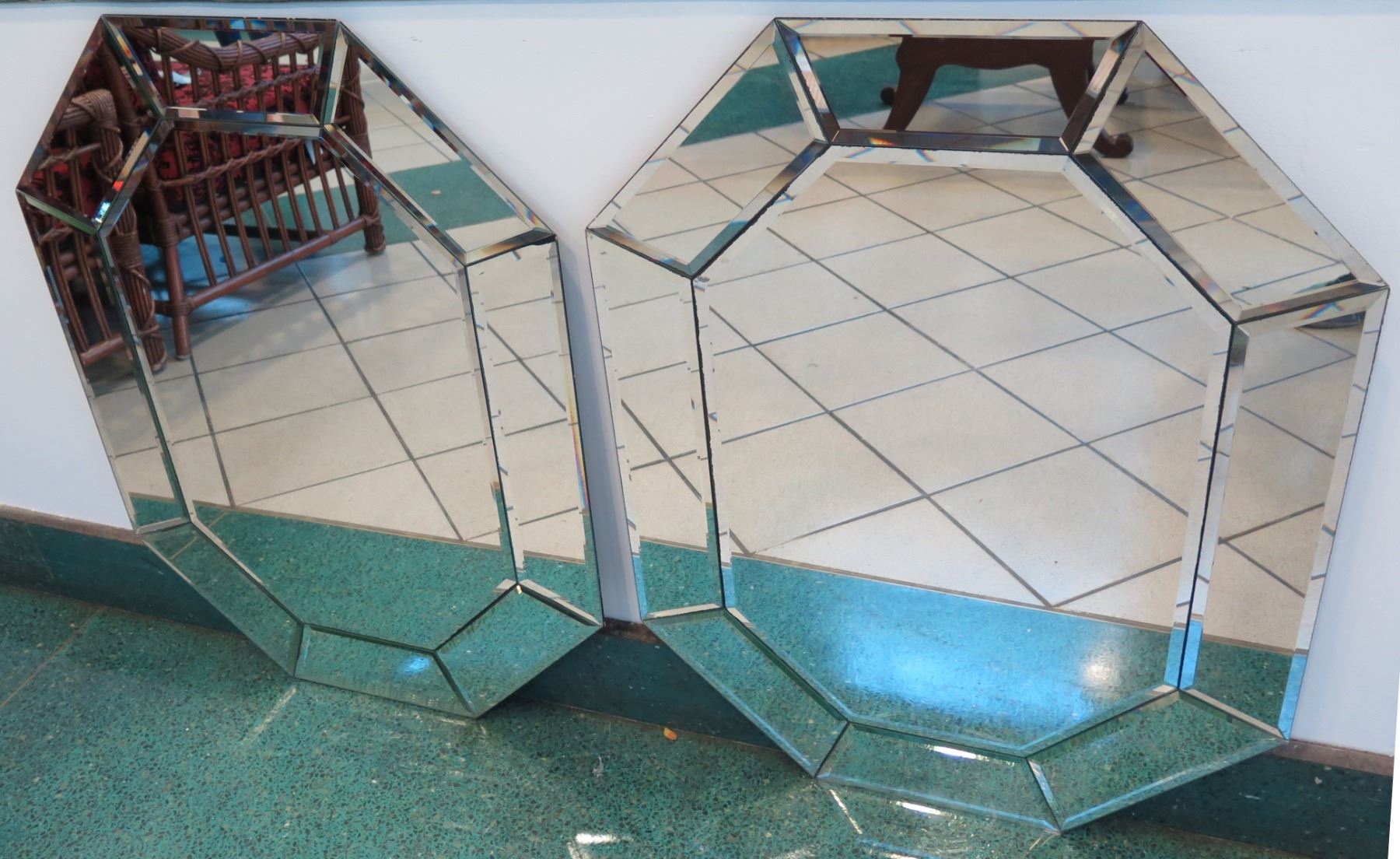 Pair of Beveled Octagonal Geometric Wall Mirrors, Approx. 34  x 24.5