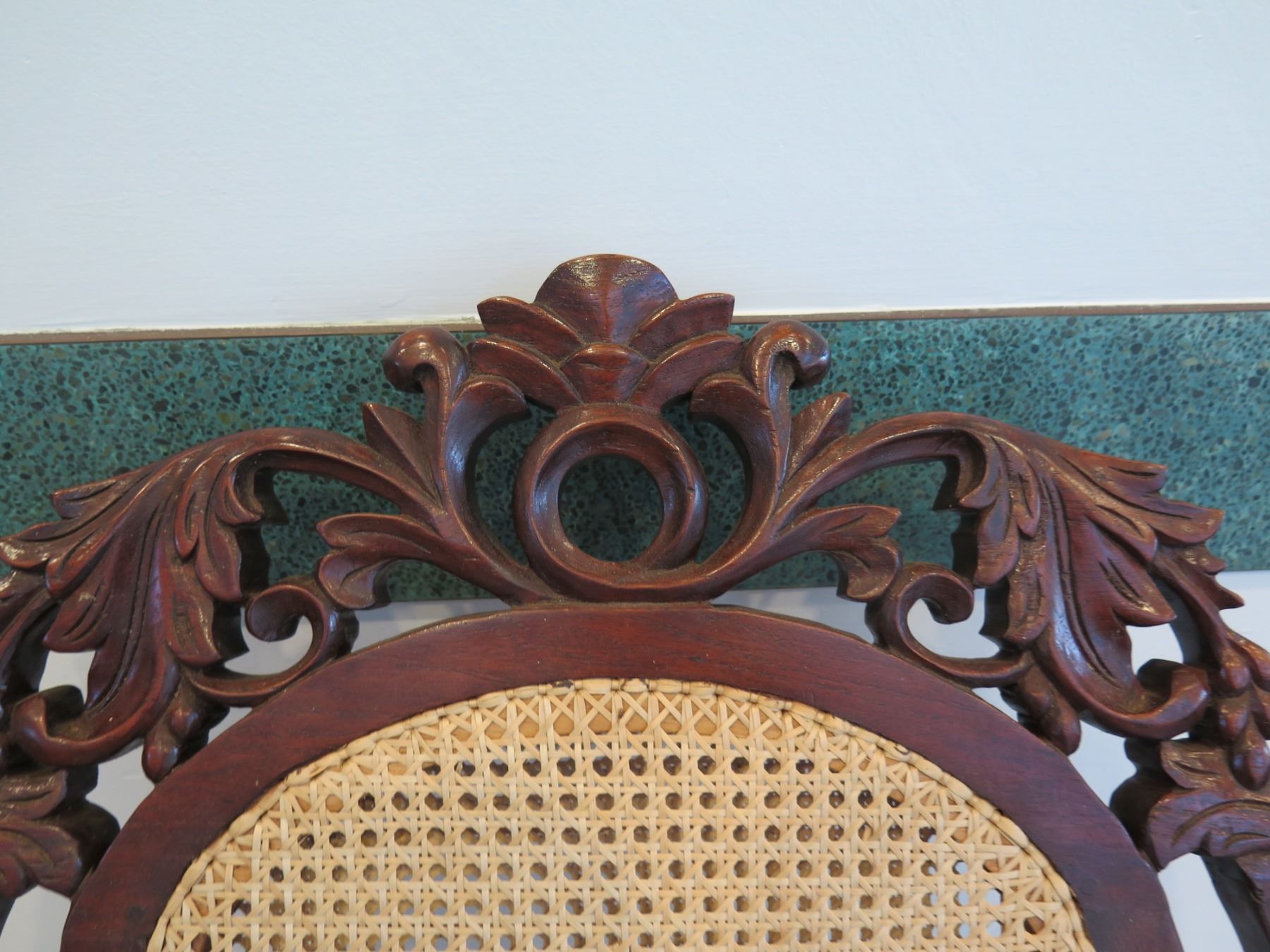 Pair of Cane Rattan Chairs w/ Carved Hardwood Frame, Curved Legs 22.5"x 24" x 42"H