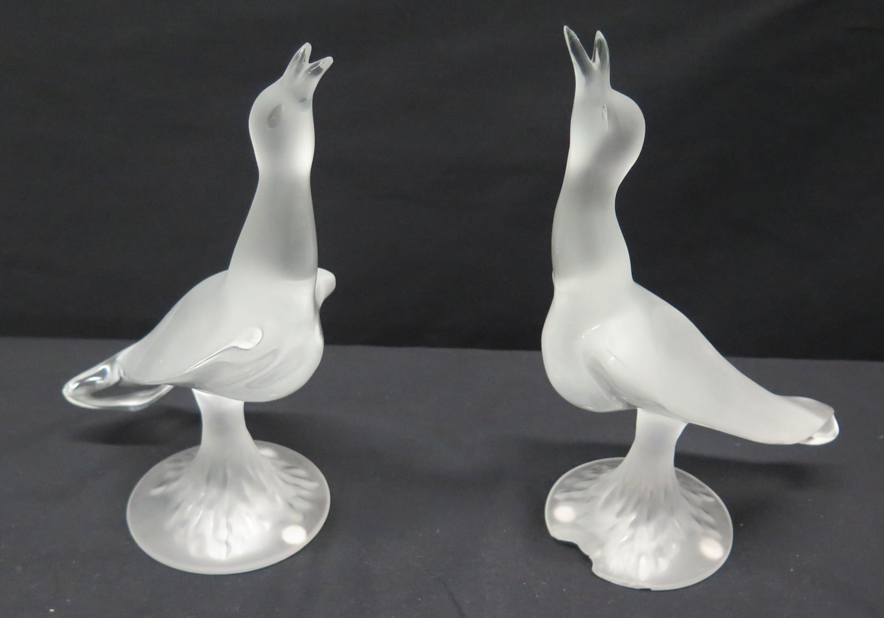 Pair of Frosted Bird Figurines, Approx. 9"H (one has chipped base)