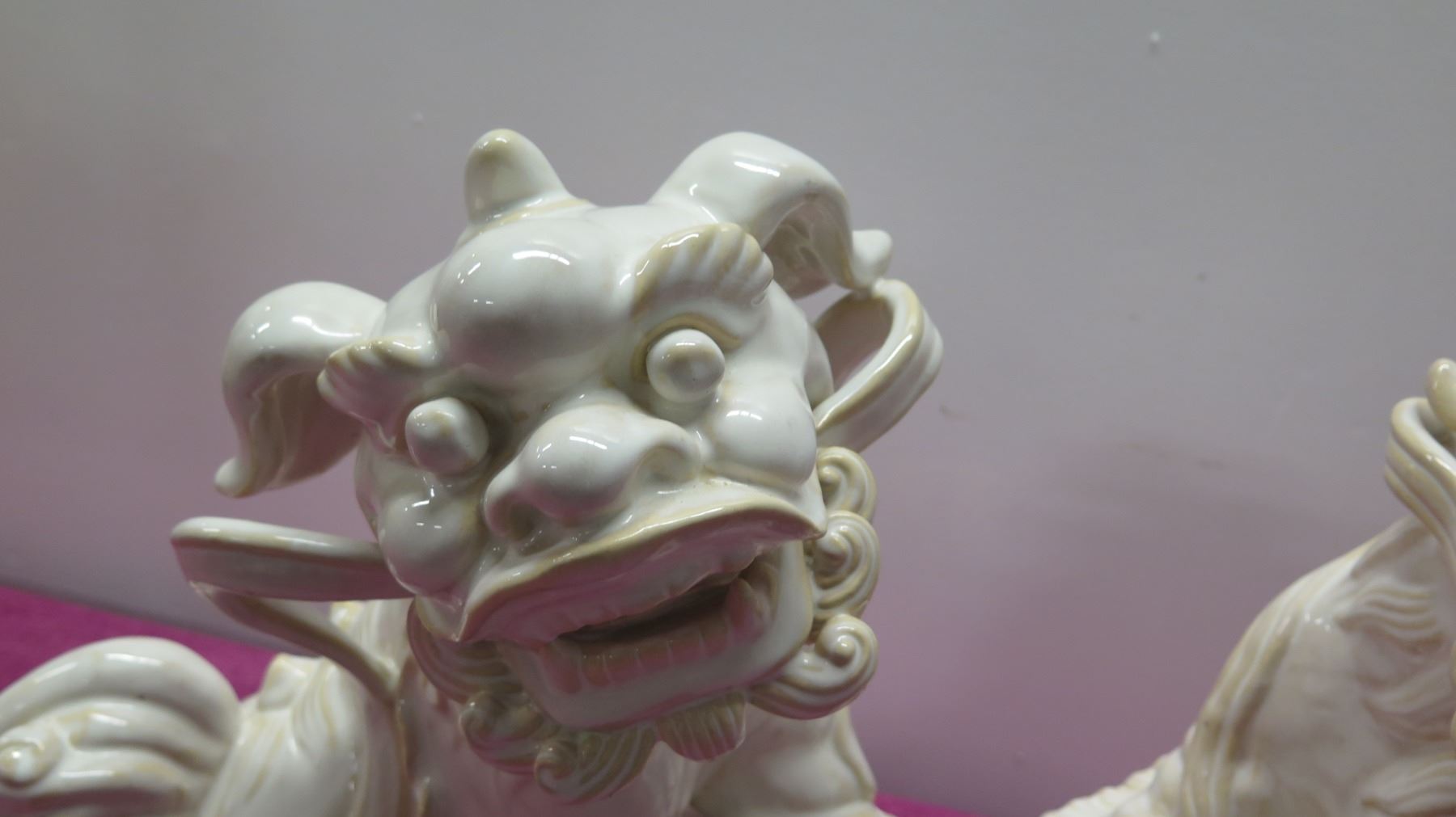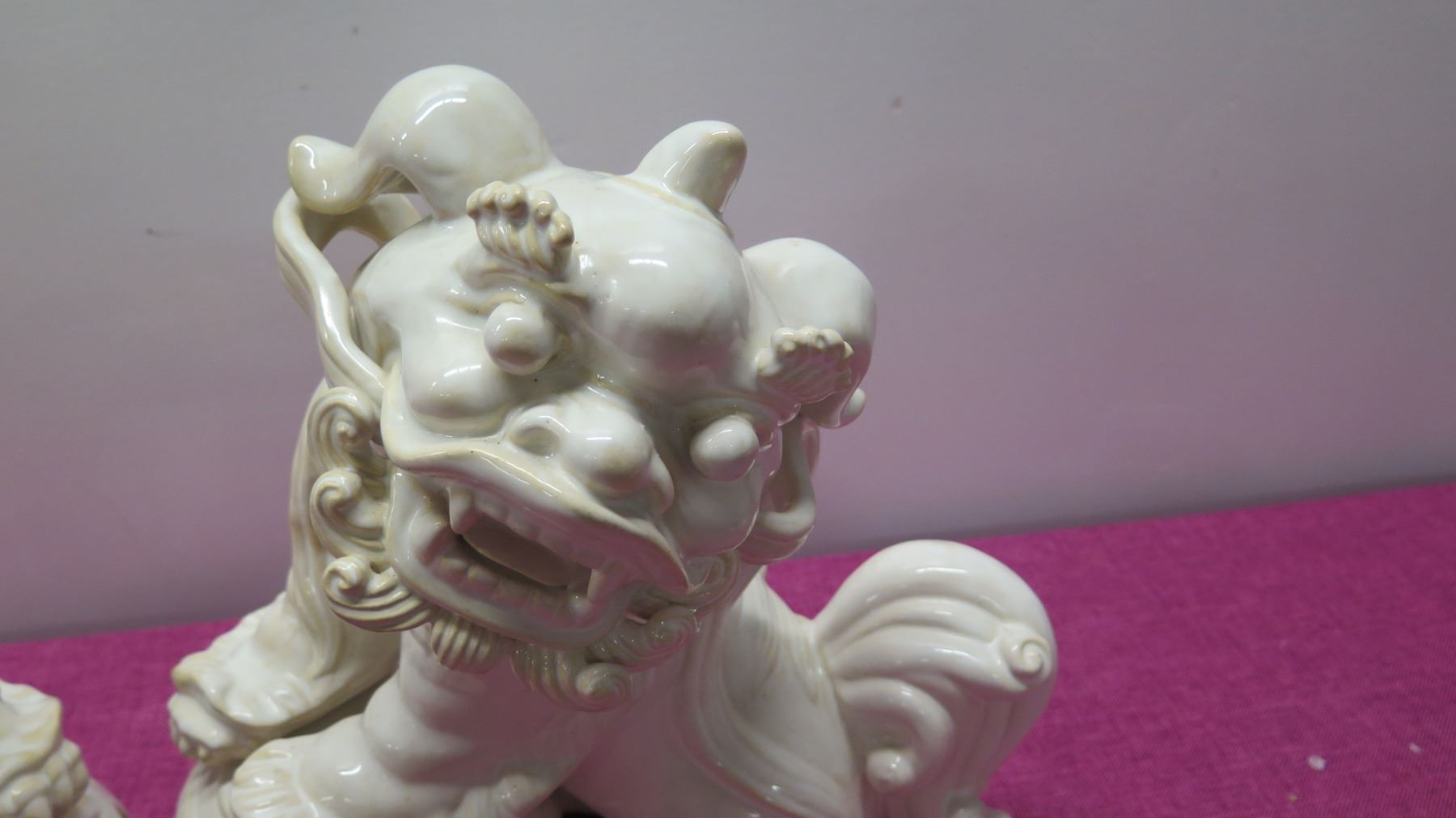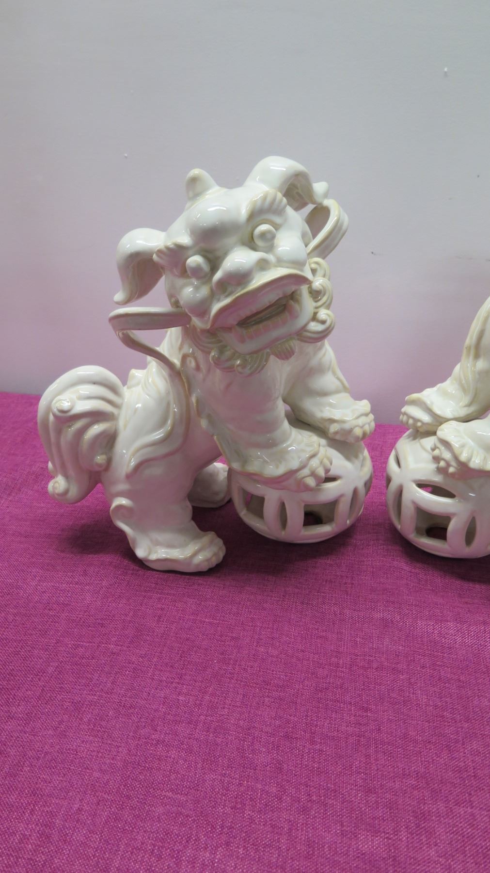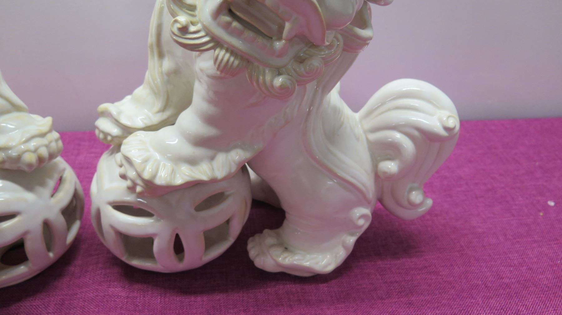 Pair of Glazed White Porcelain Foo Dog Chinese Guardian Lions 15" Tall