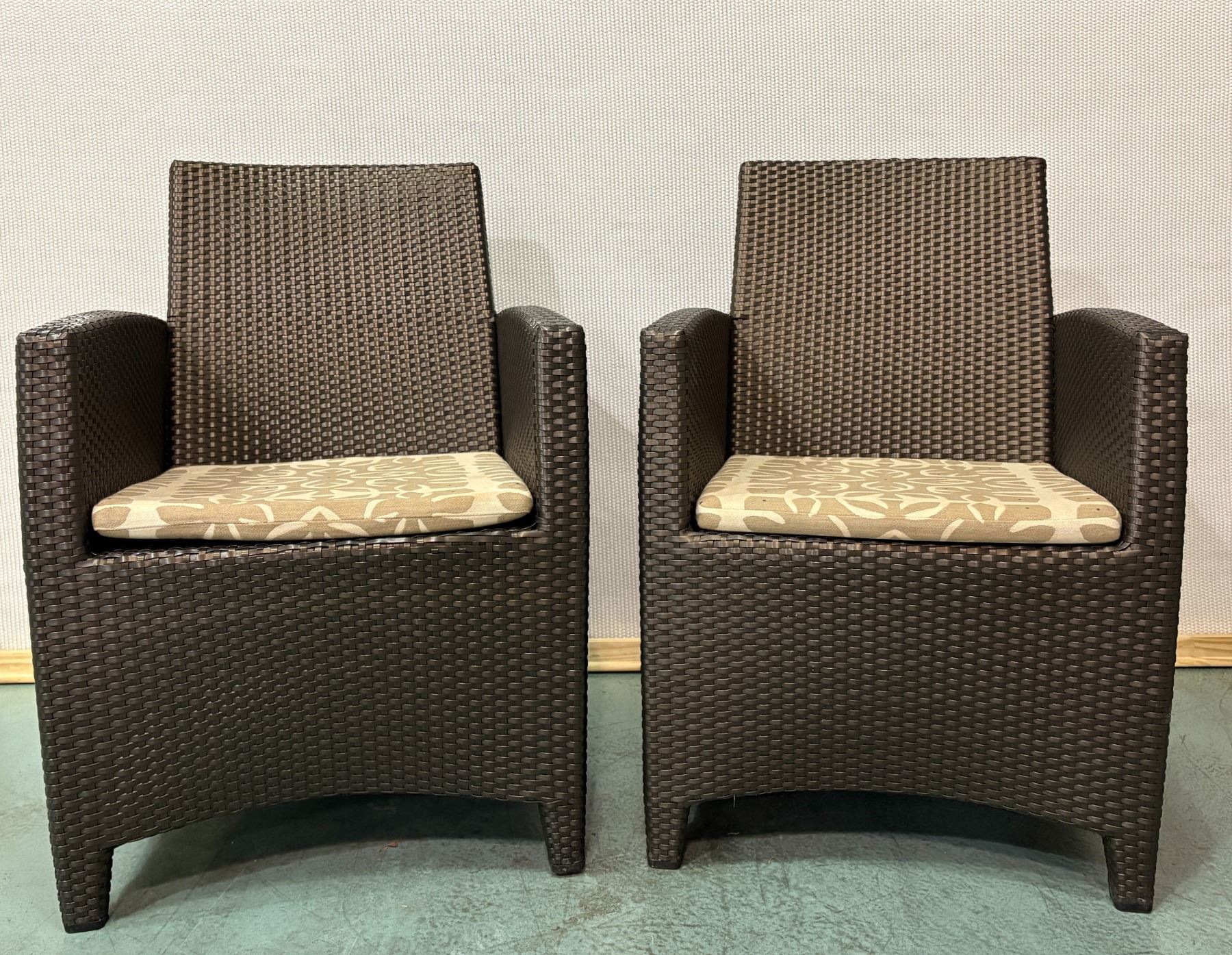 Pair of JANUS et Cie Woven Patio Lounge Chairs 22"W, 34.5"H, 19" D (Moderate Wear & Tear)