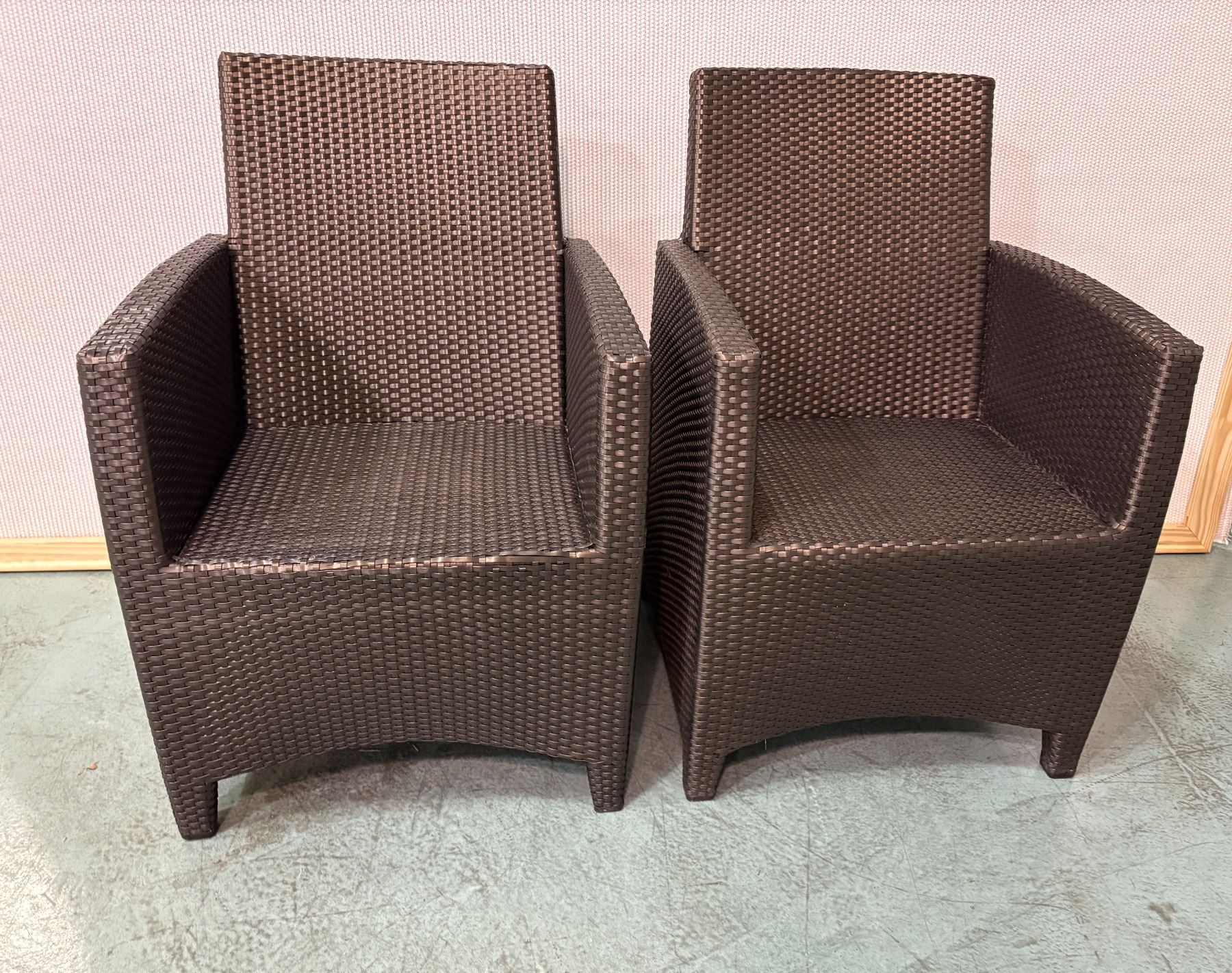 This is for a pair of JANUS et Cie chairs with washable seat cushions. While cosmetic wear varies from piece to piece, all items are structurally sound and were in active use at a Four Seasons Resort until removal. The photos shown are representative stock photos; actual pieces may show different levels of surface wear, but will be close to what's shows in these photos. Examples of types of wear are shown in the last 4 images.