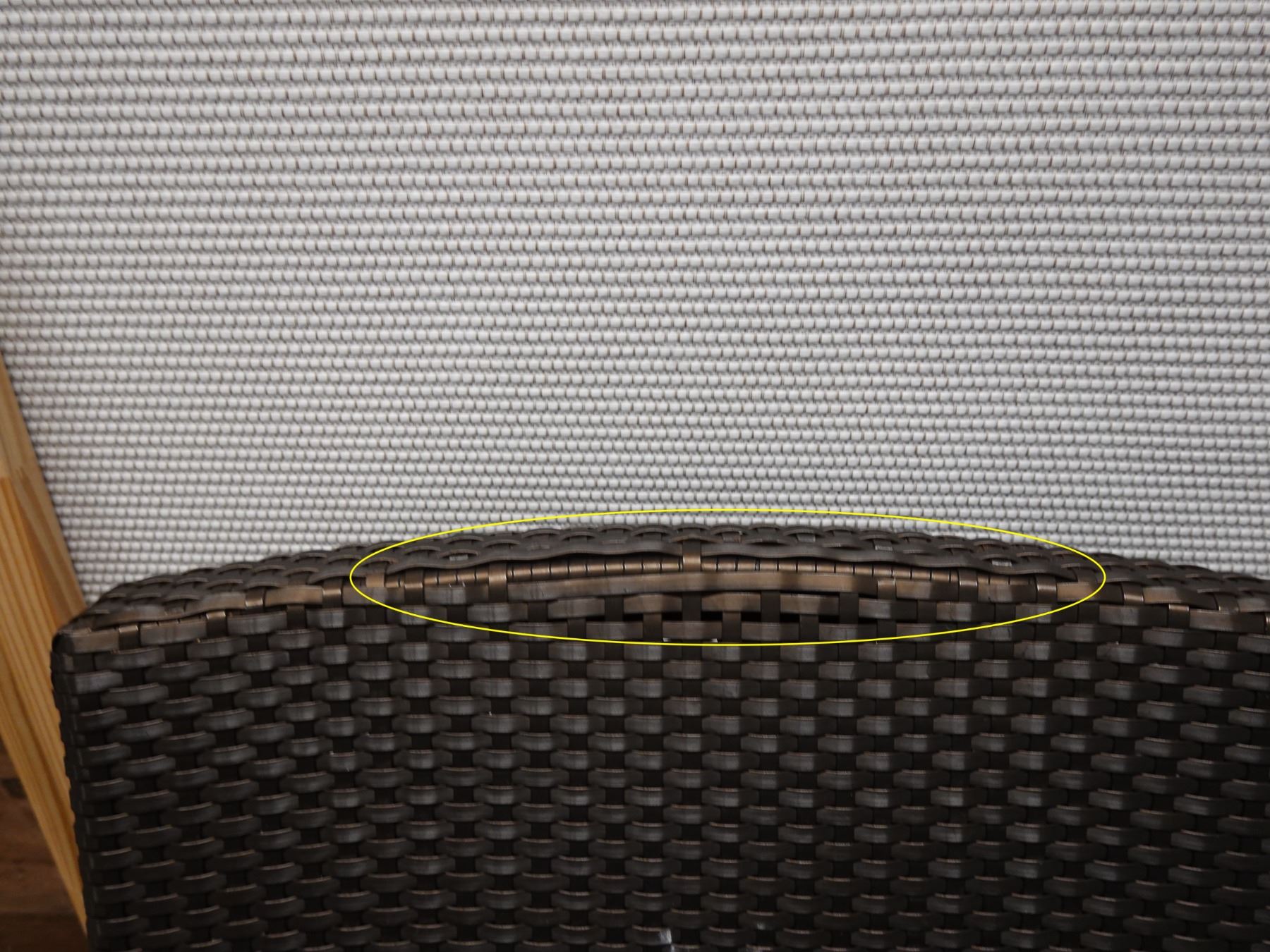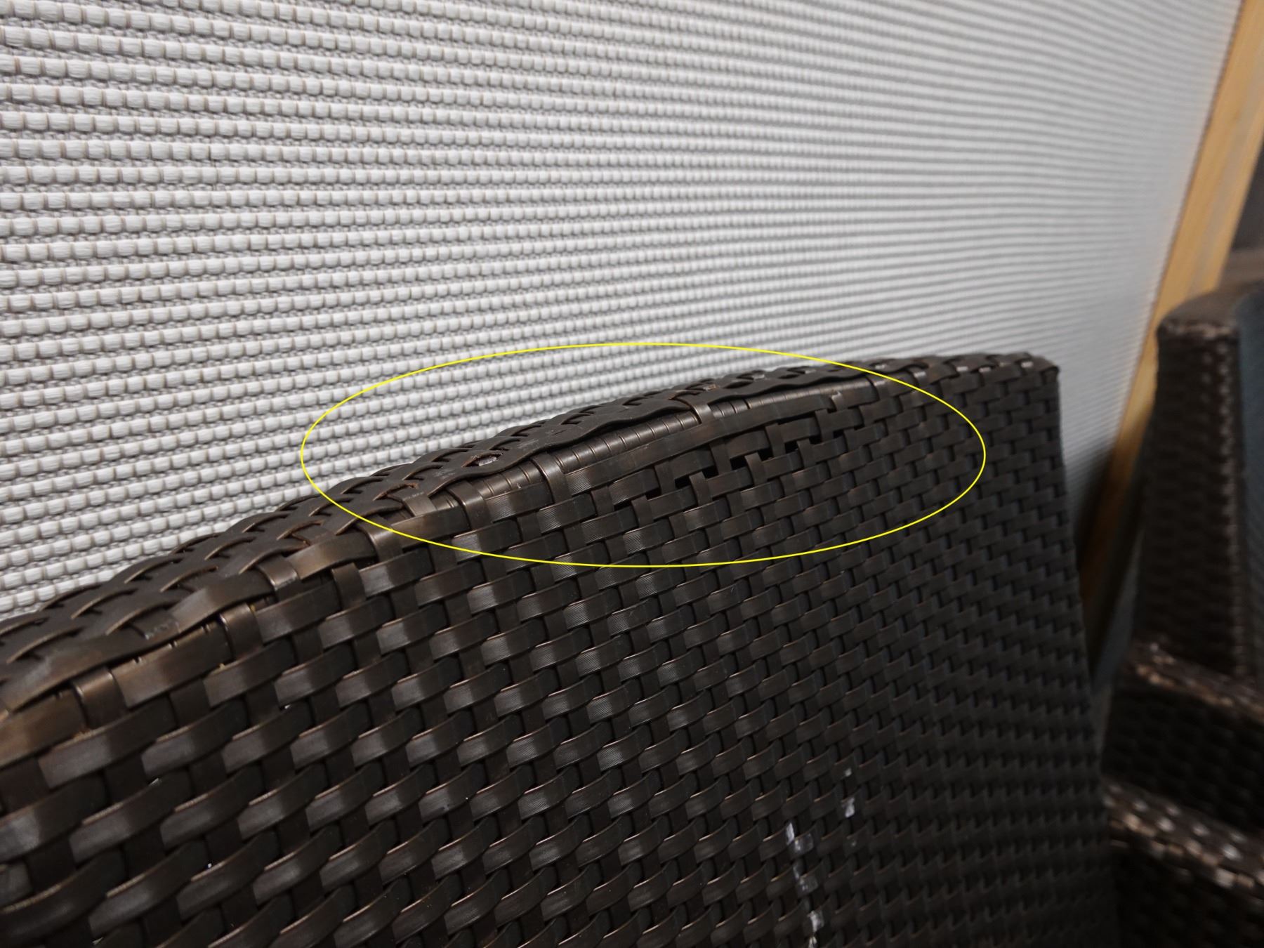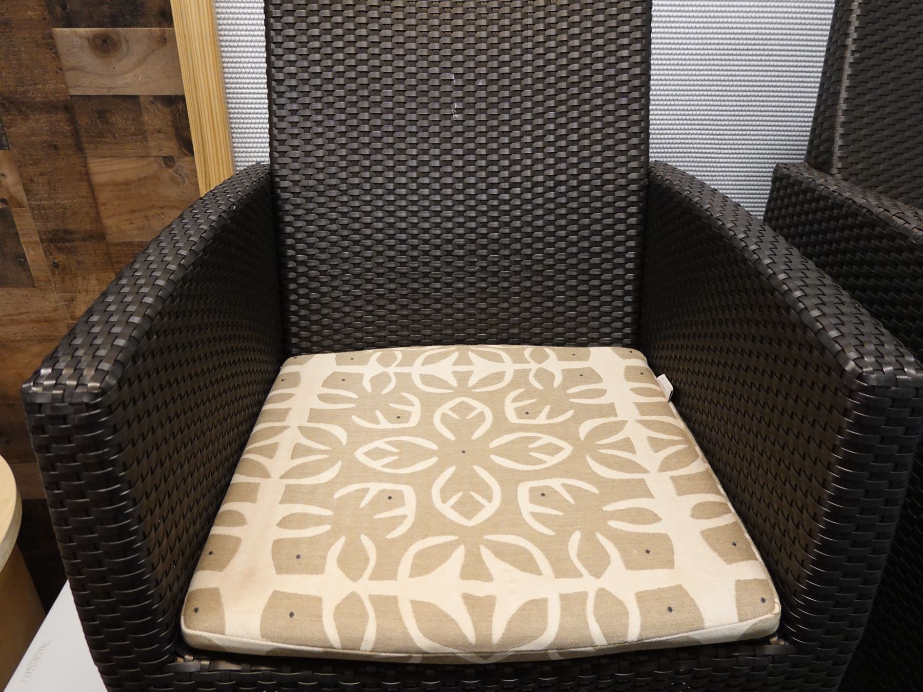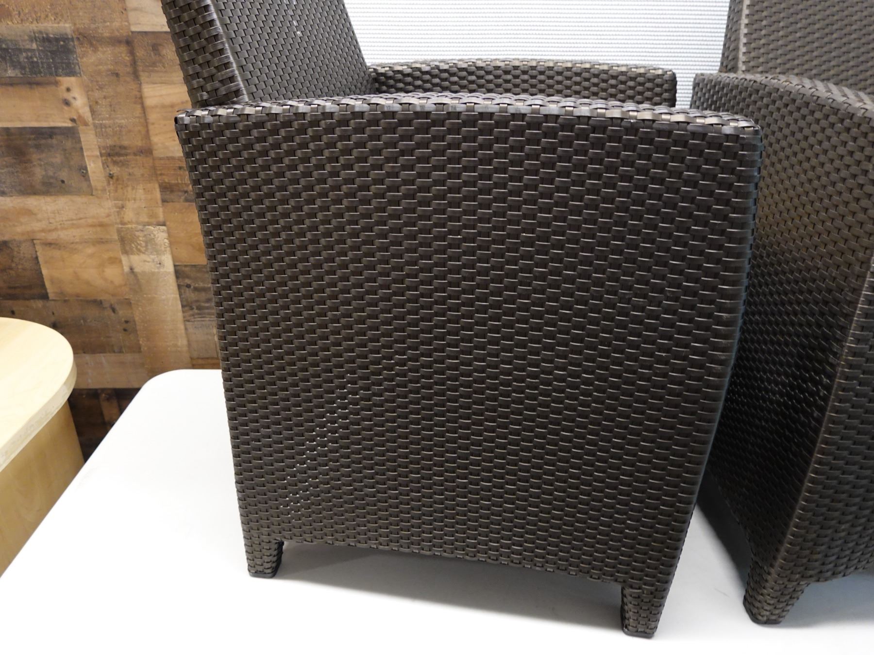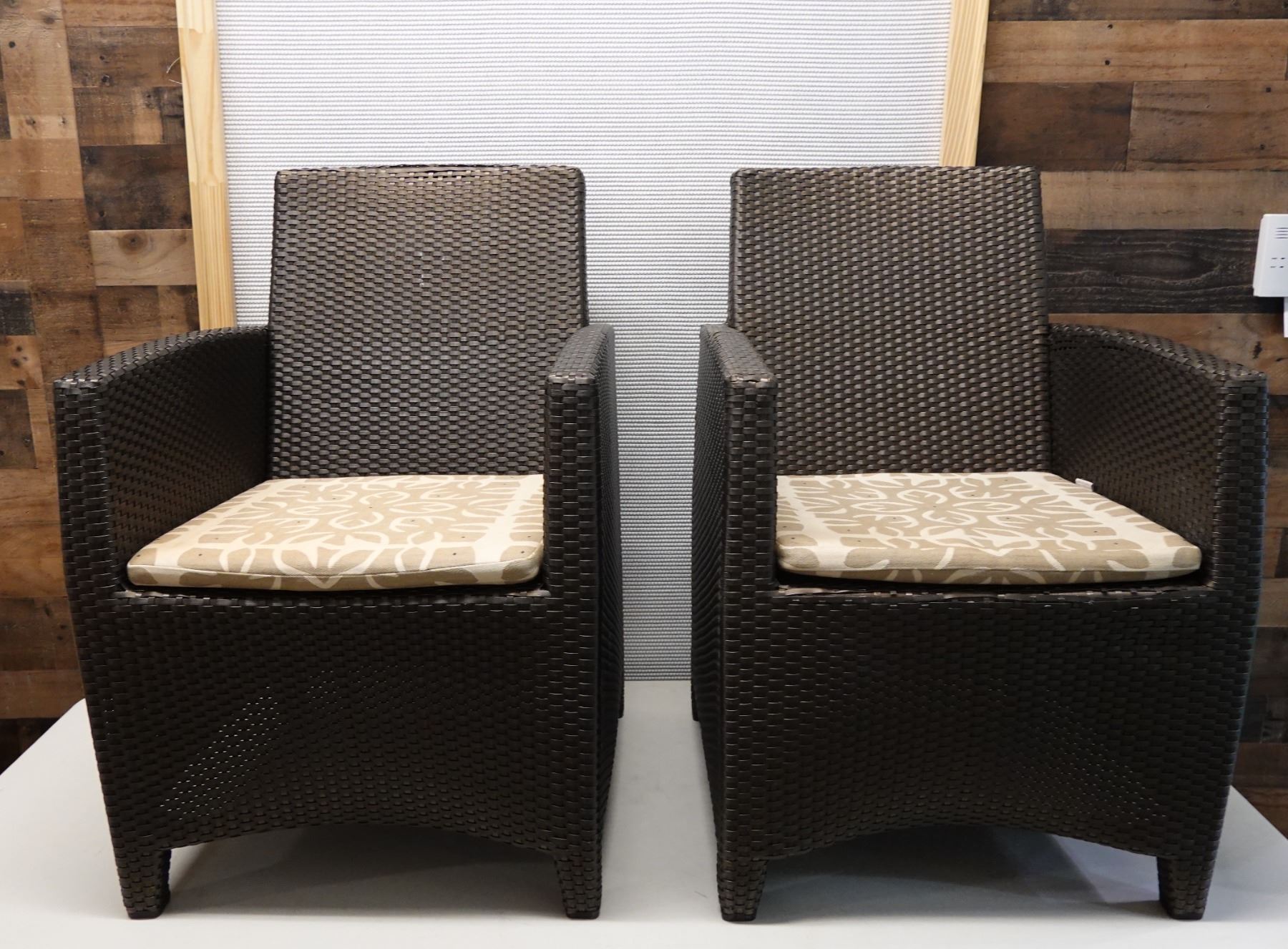 Pair of JANUS et Cie Woven Patio Lounge Chairs, Approx. 22"W, 34.5"H, 19" D (some wear & tear)