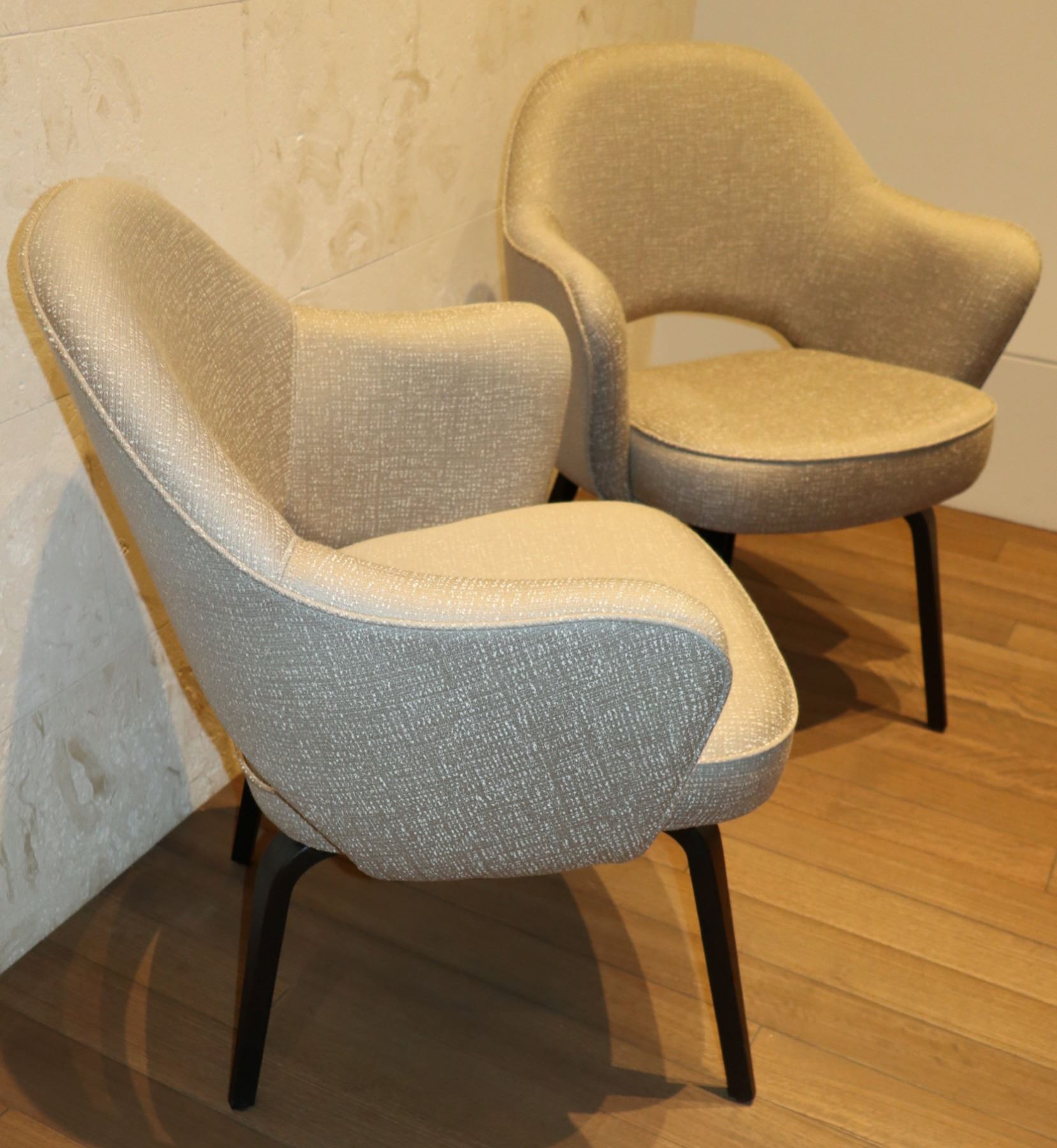 Pair of Knoll Saarinen Executive Arm Chairs, Back Ht 31.5”, $1500 Retail Each. 'Cork Hourglass' Upholstery. Soil and stain repellent.