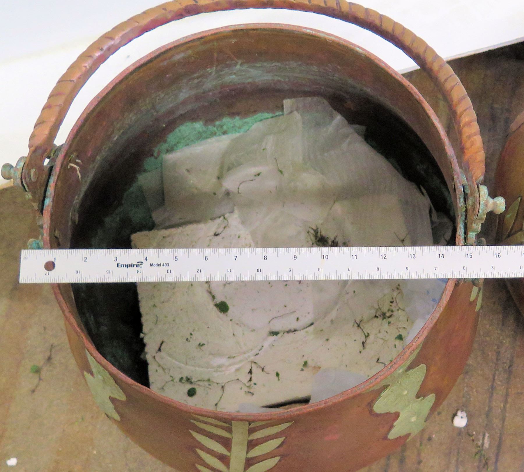 Pair of Ornamented Copper Baskets w/ Faux Topiary, 15" Top Dia., 18"H