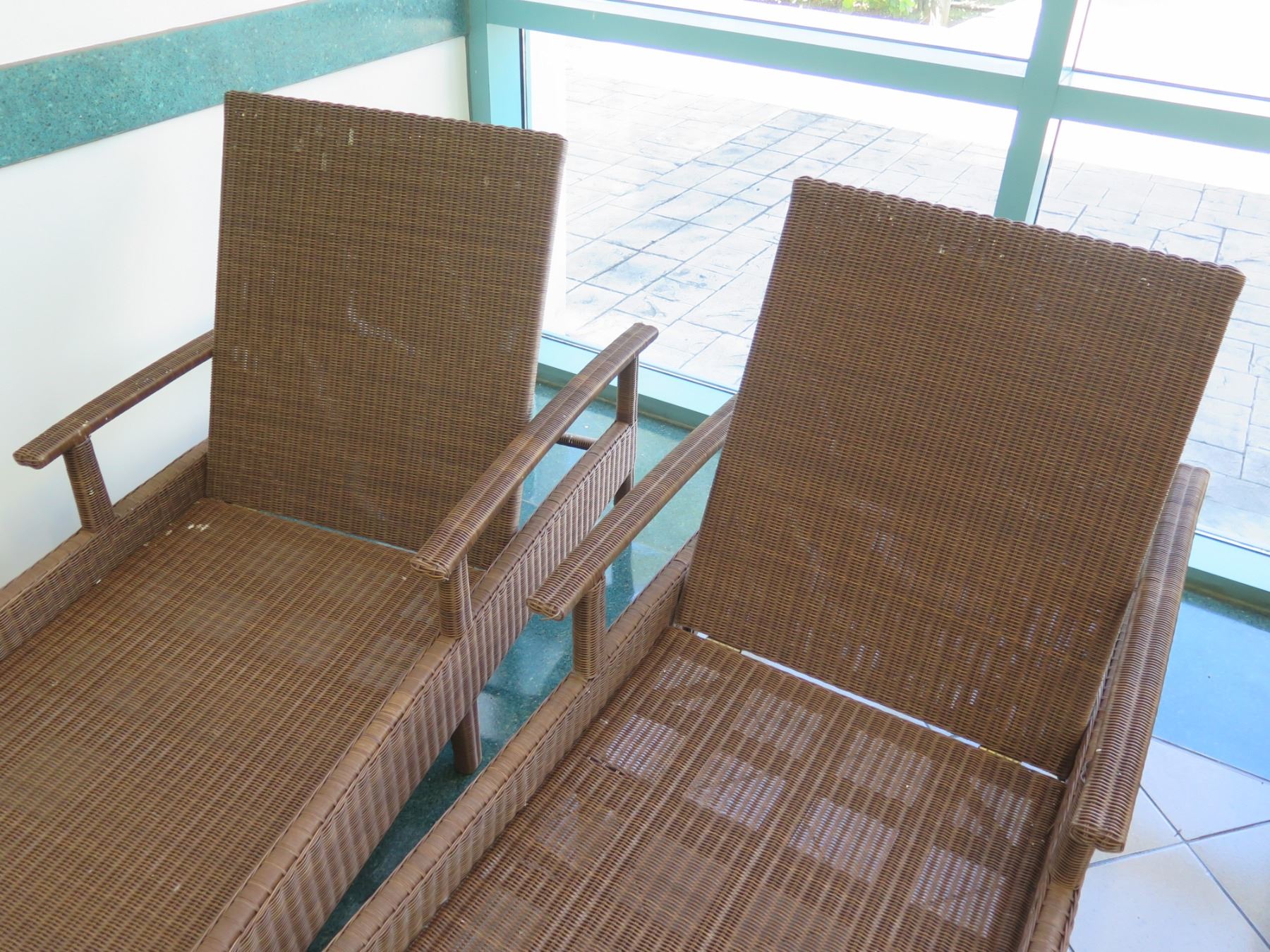 Pair of Synthetic Rattan Outdoor Loungers 80"L, 29"W, 13"H