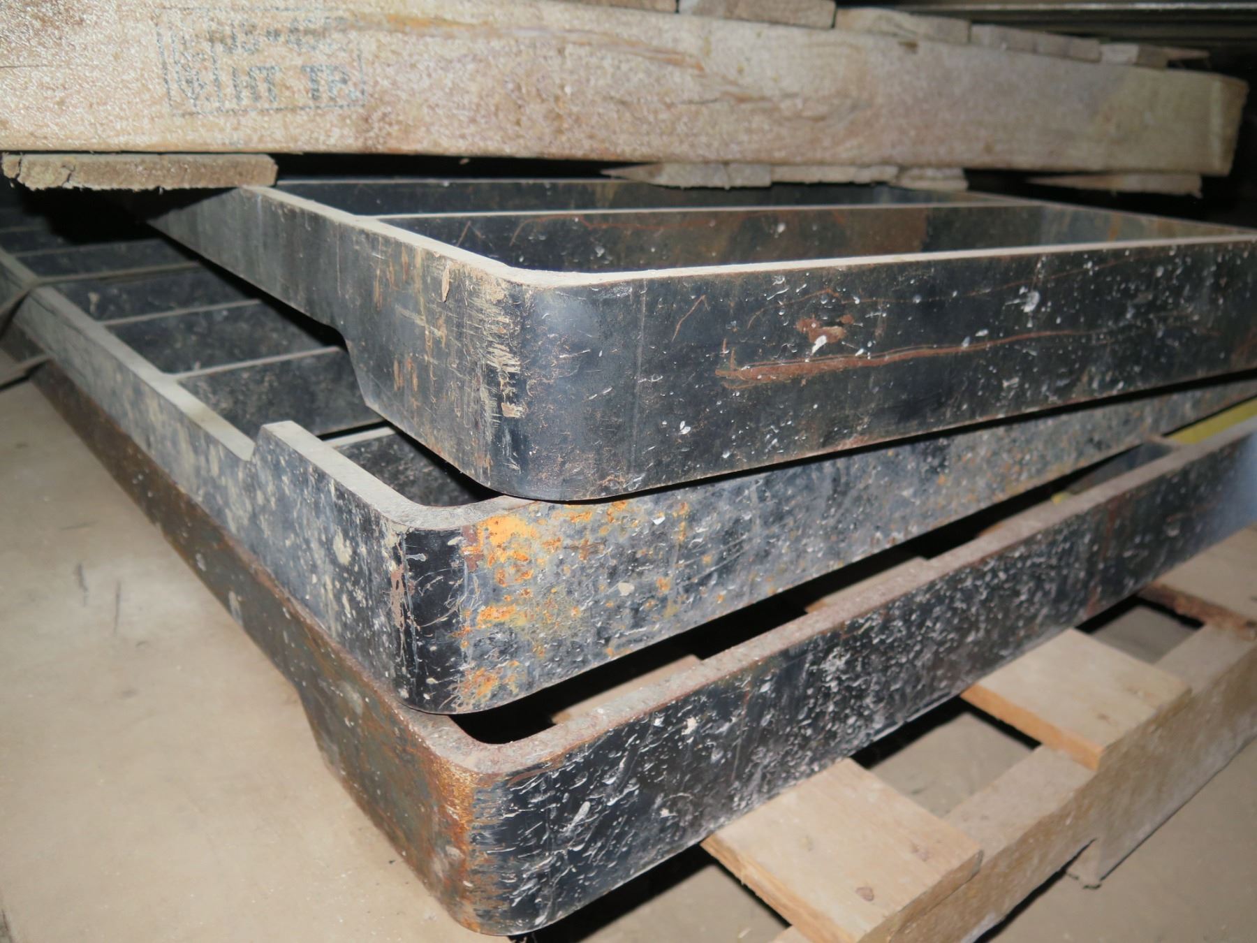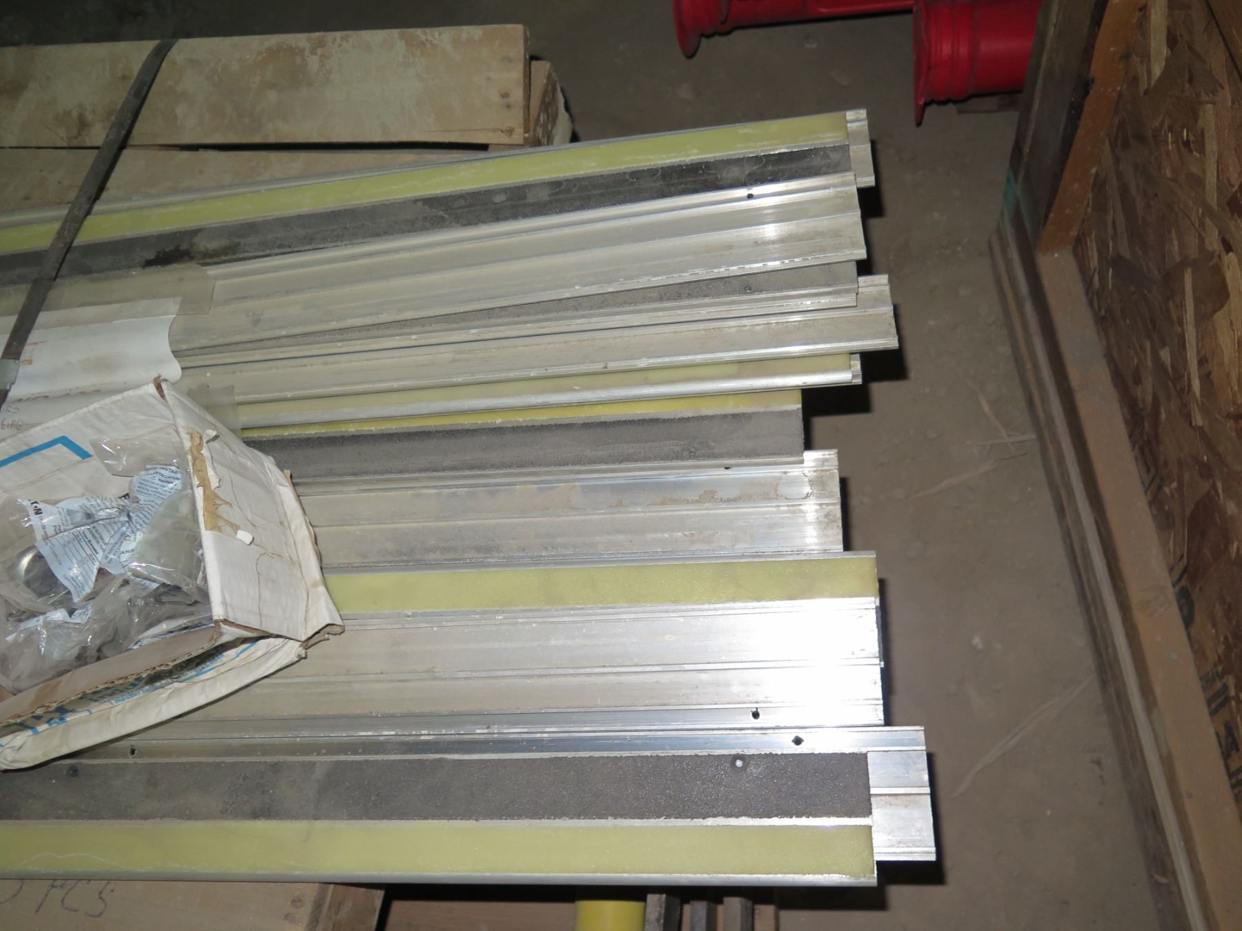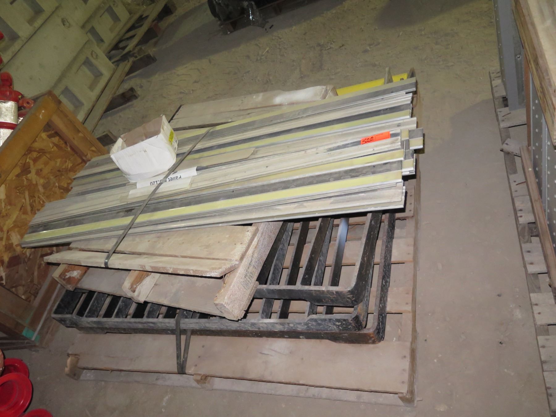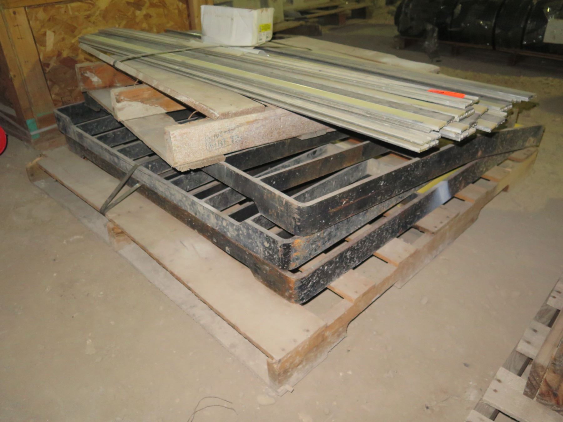 Pallet 3 Metal Forklift Carriages, Yellow Metal Stands, Metal Lengths, etc