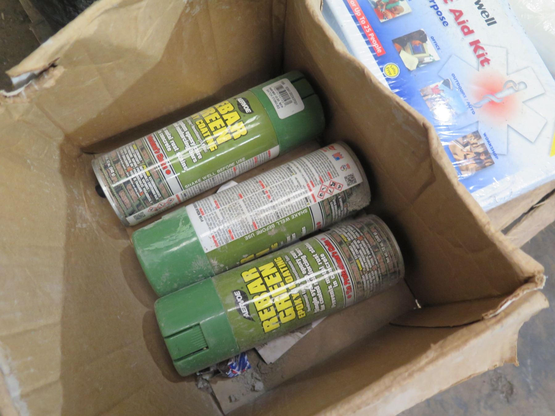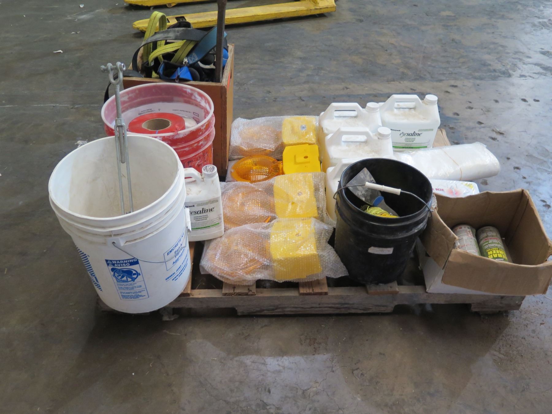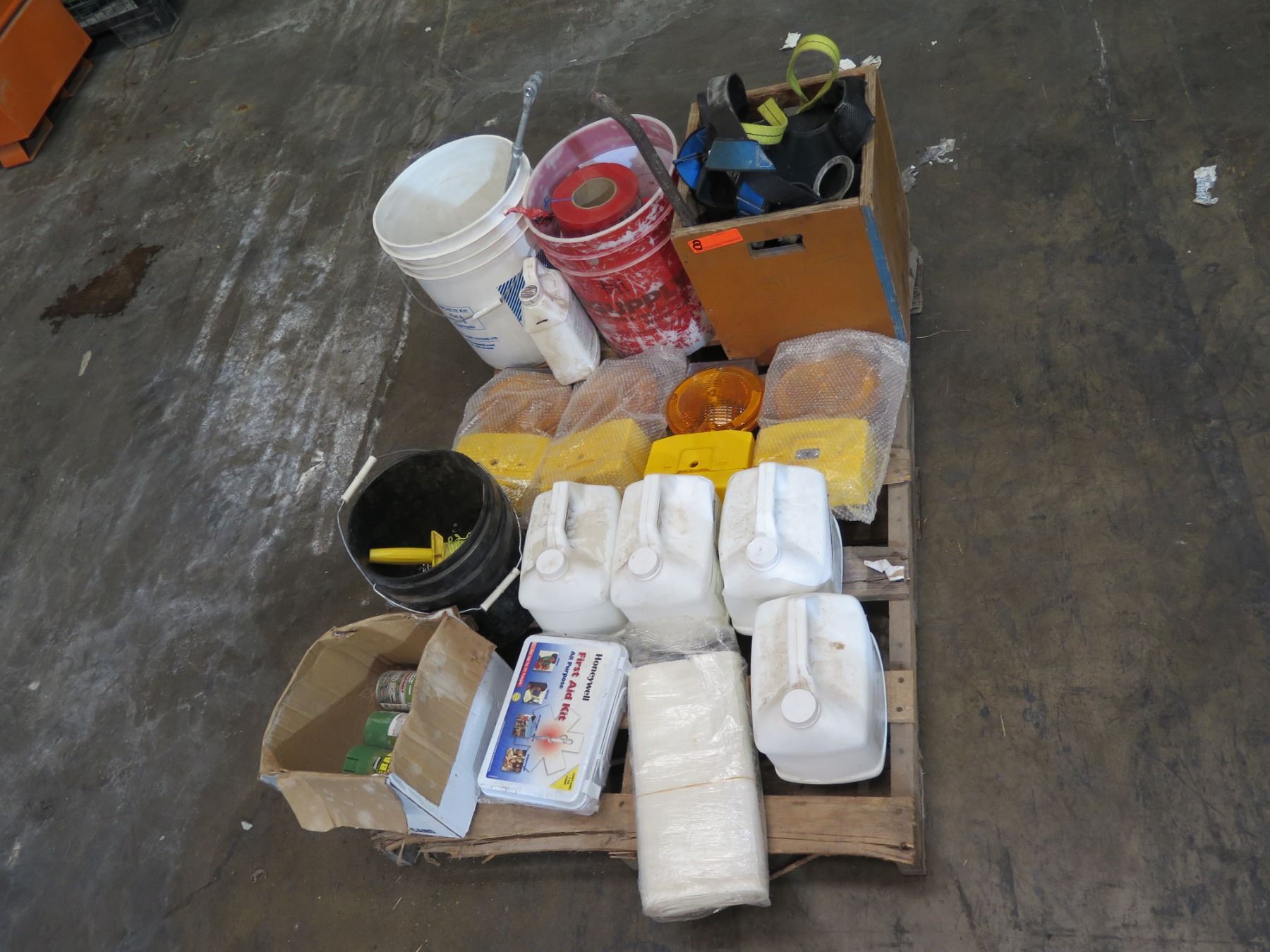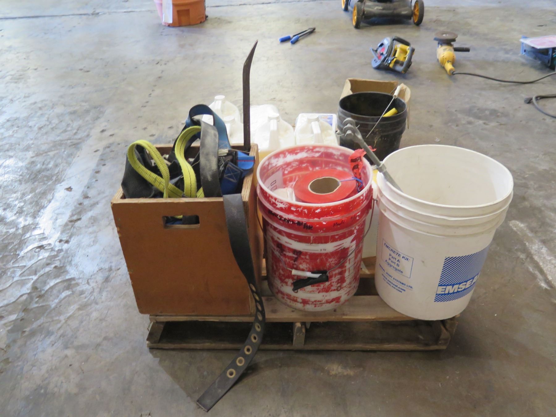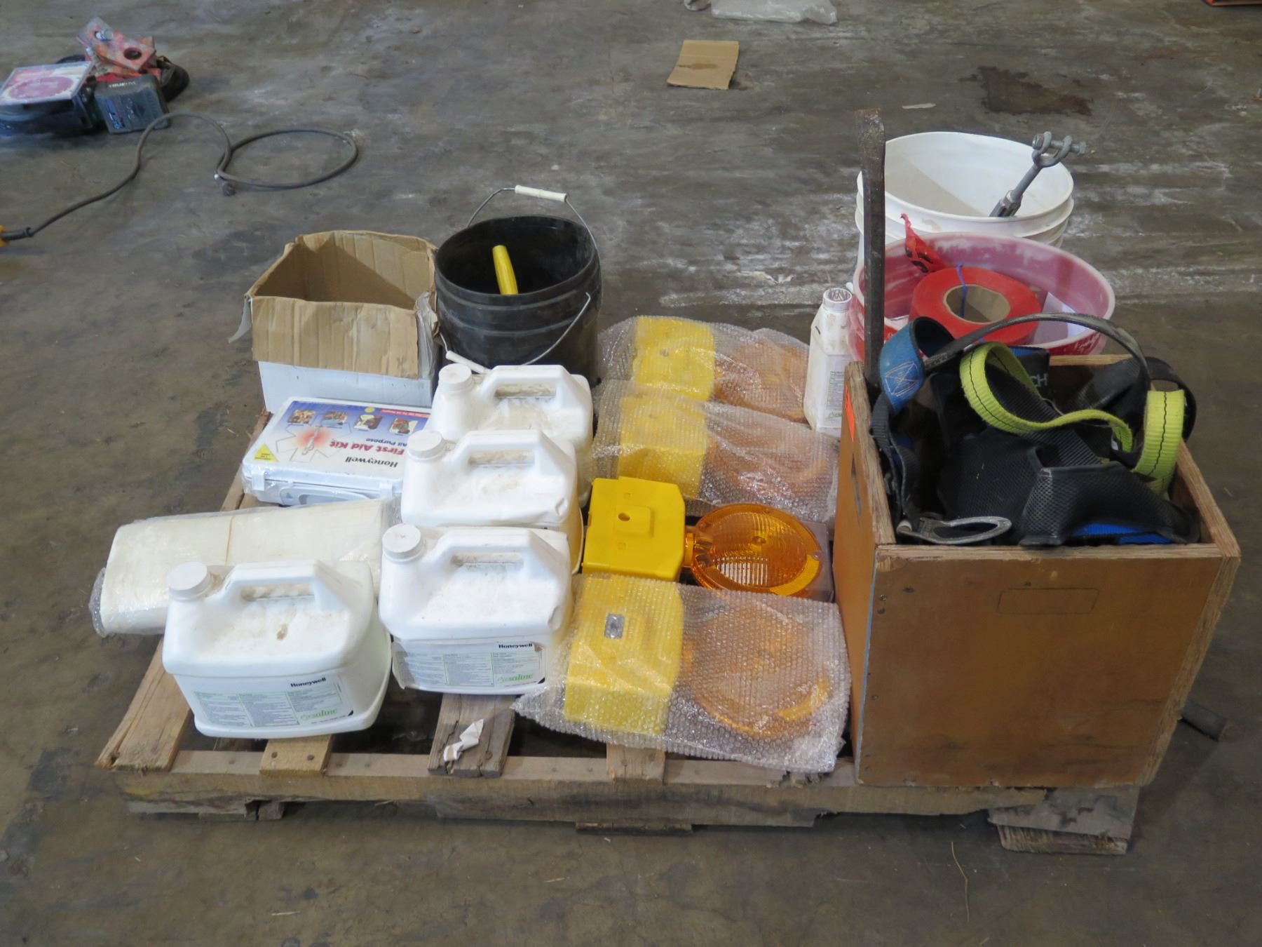 Pallet Multiple Canvas Straps, Safety Lights, Eyesaline & First Aid Kit, Paint, etc