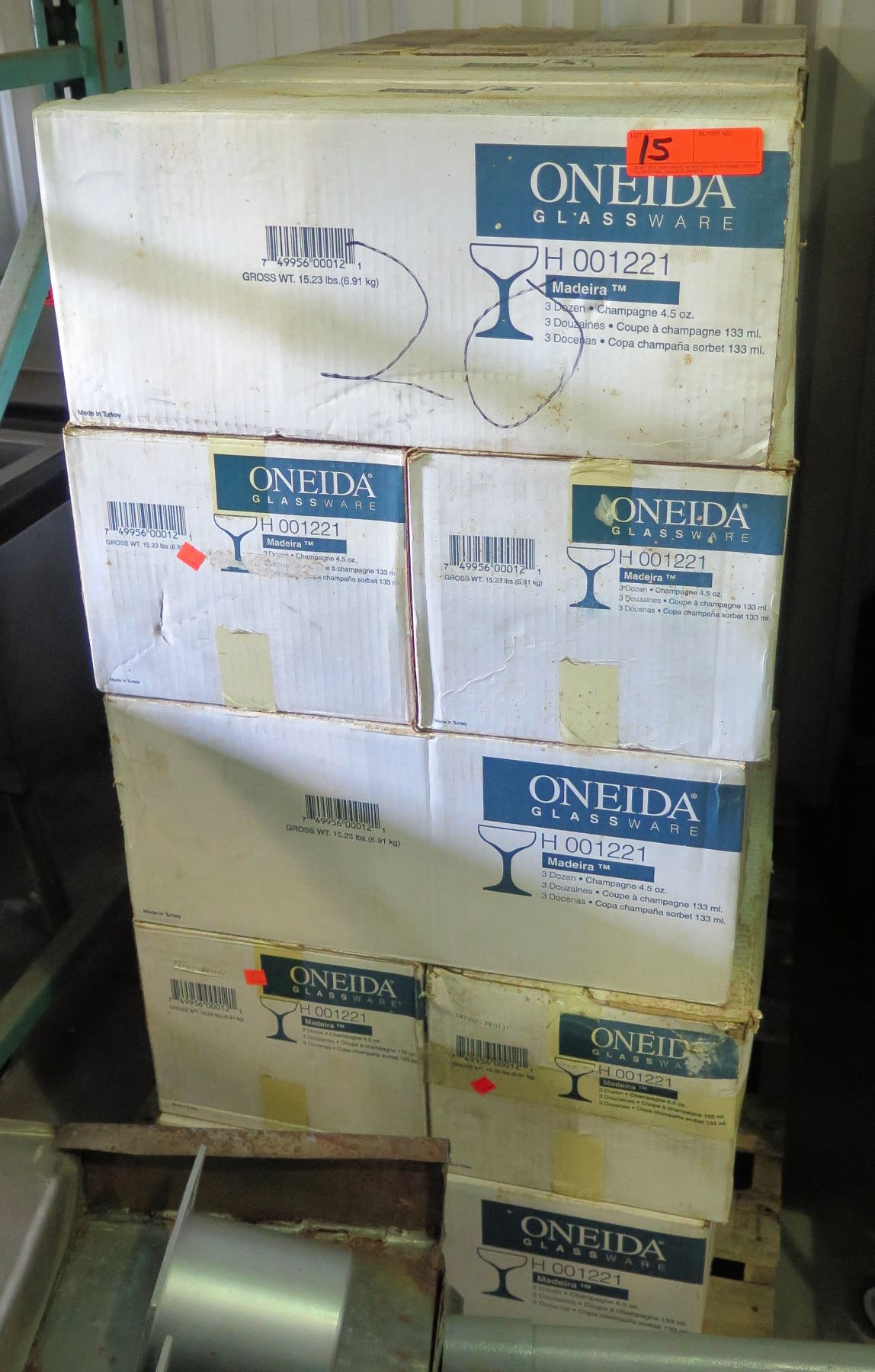 Pallet Multiple Cases Oneida Glassware H001221 Madeira Champagne Glasses