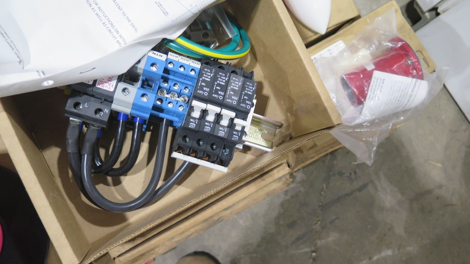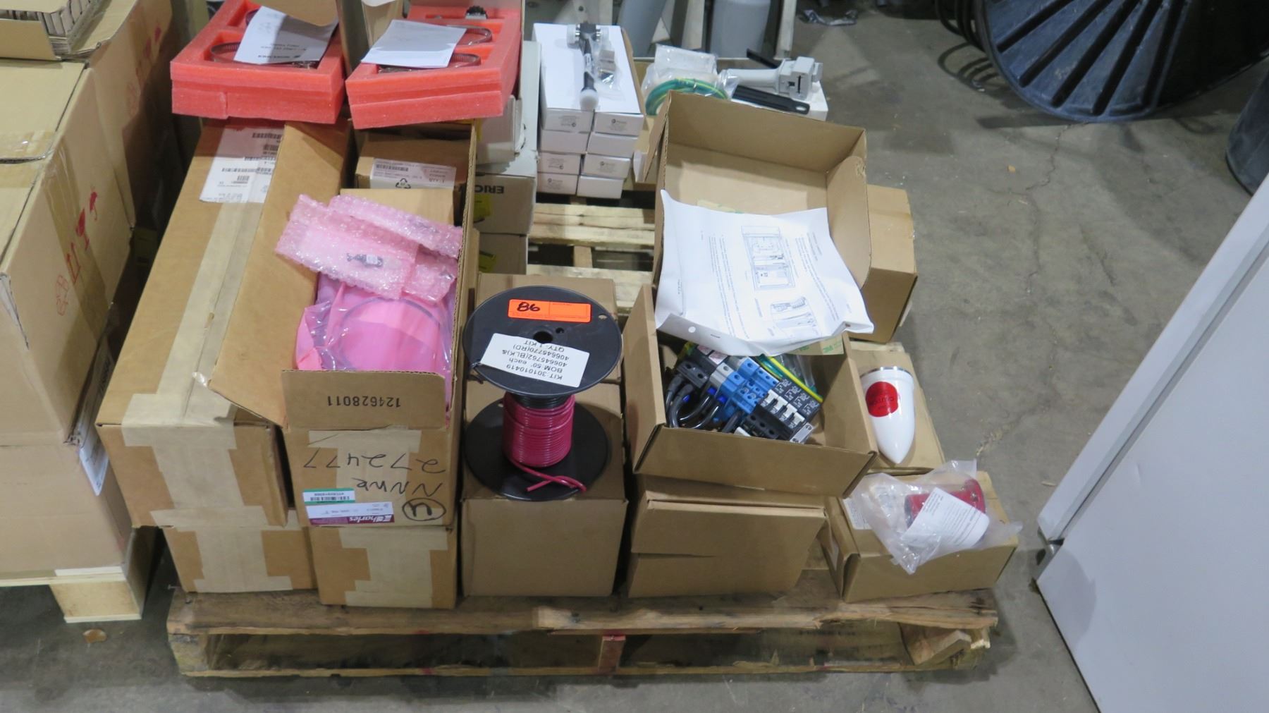 Pallet Multiple Misc Circuit Breakers, Thermal Probe Cable, Microlab Splitters, Wire, etc