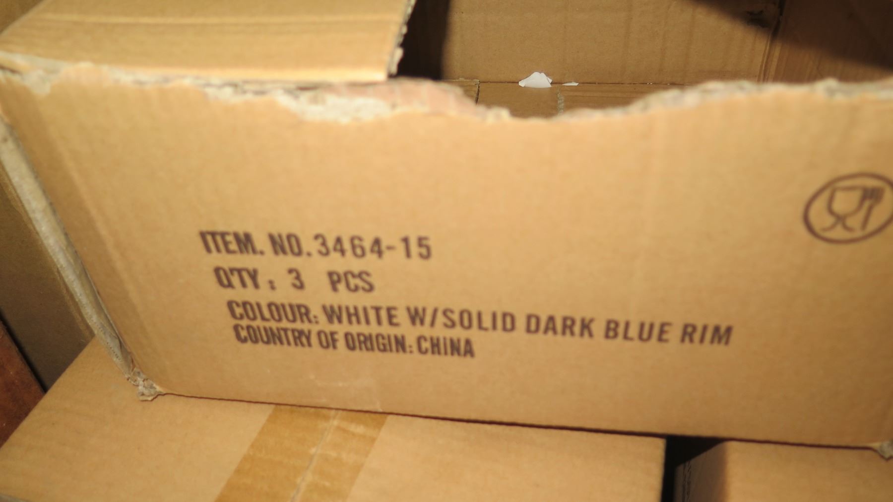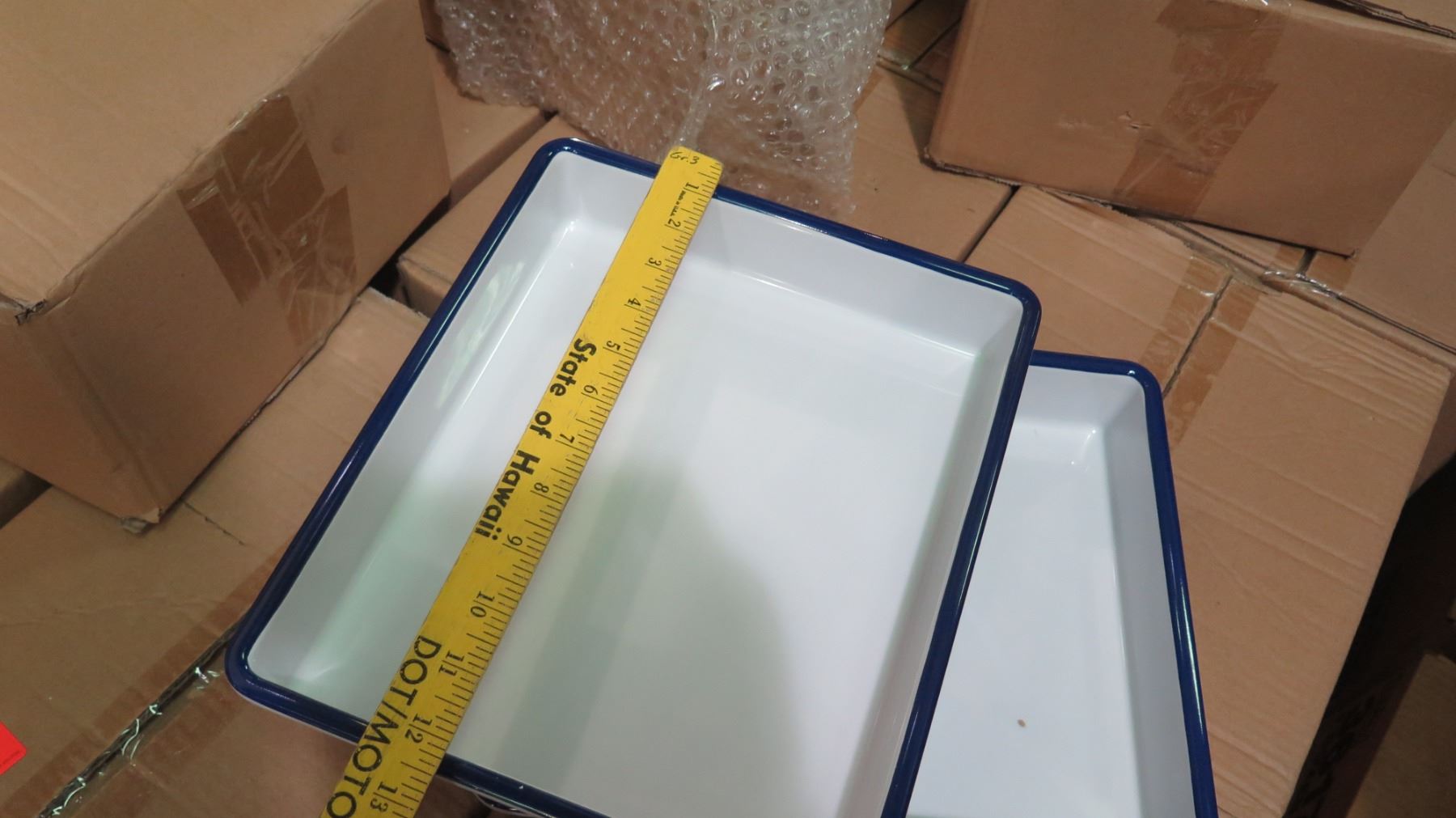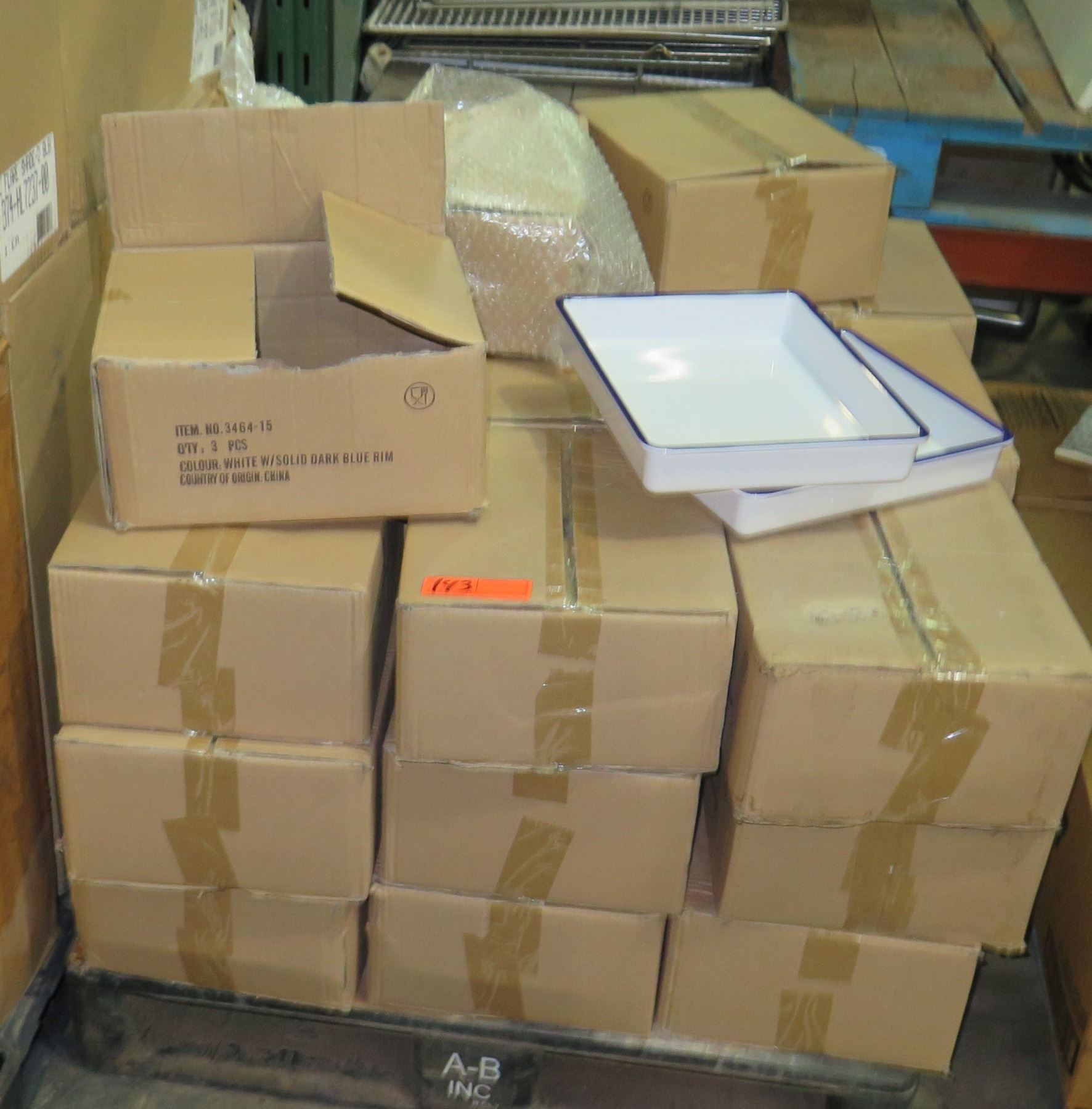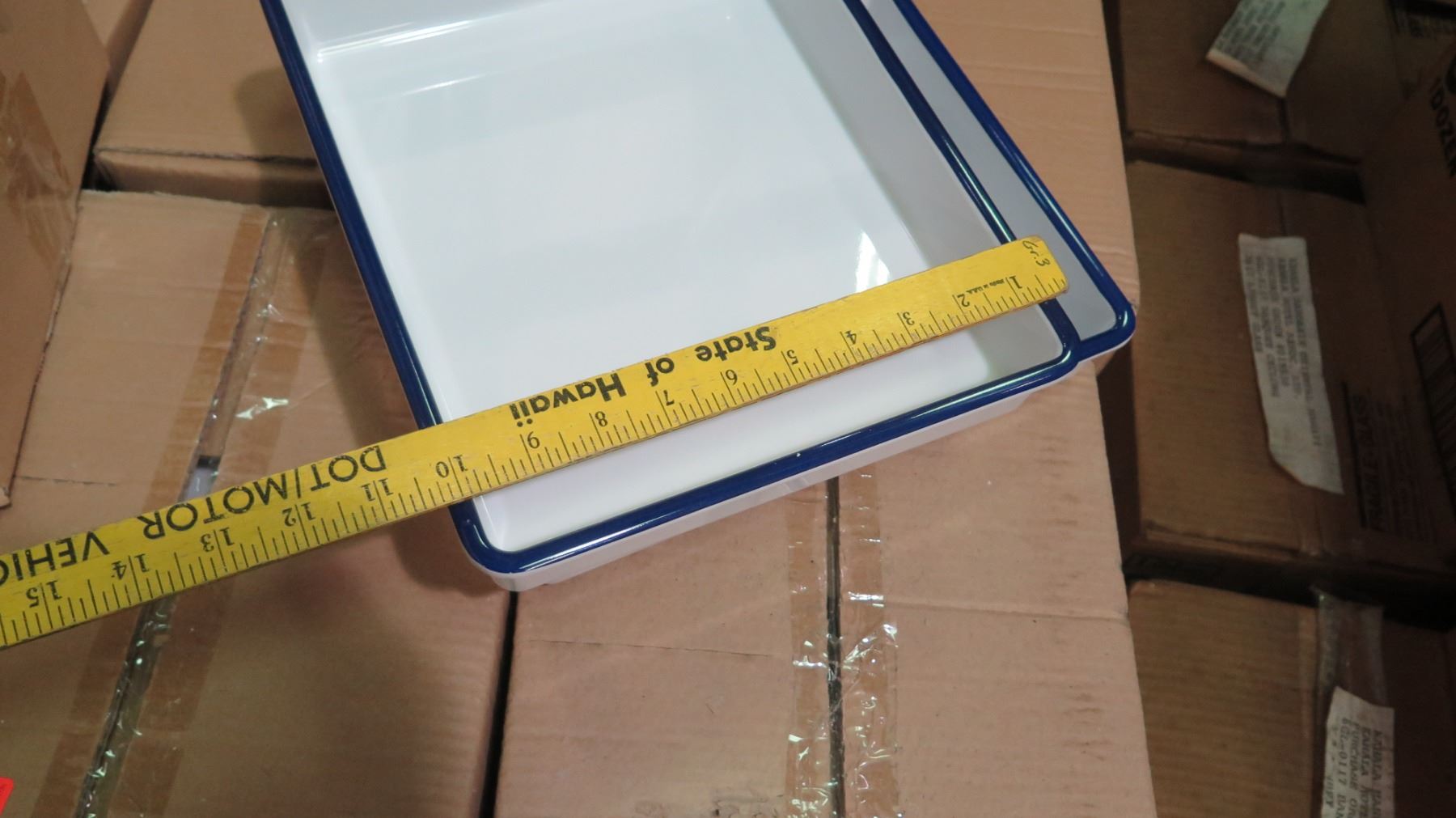 Pallet White w/ Blue Trim Rectangle Dishes 10" x 12" in Box