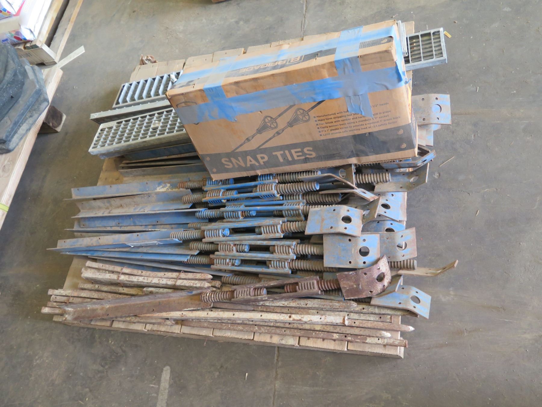 Pallet of Snap-Ties, Stakes, Grating