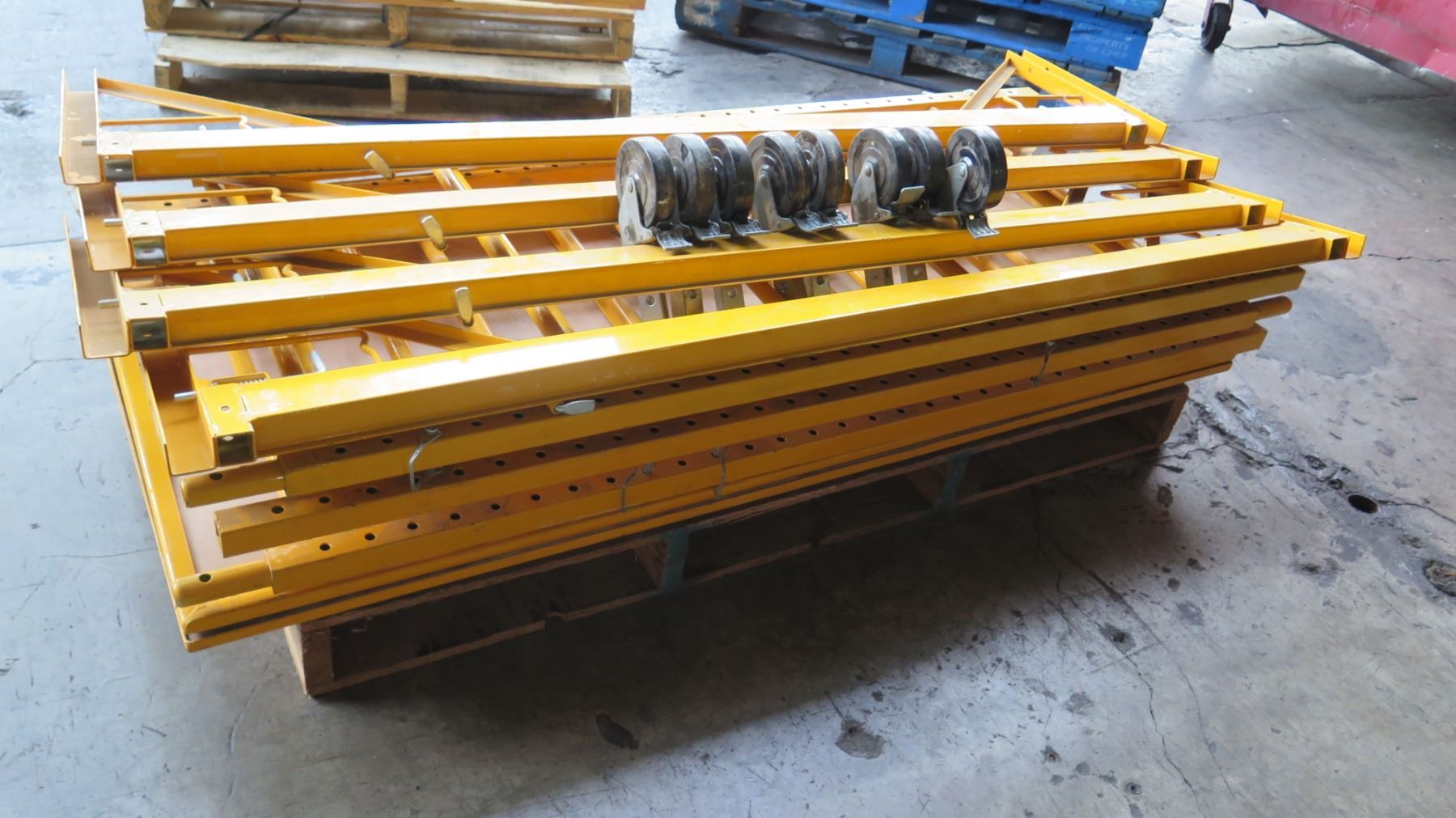 Pallet of Yellow Scaffolding w/ Wheels