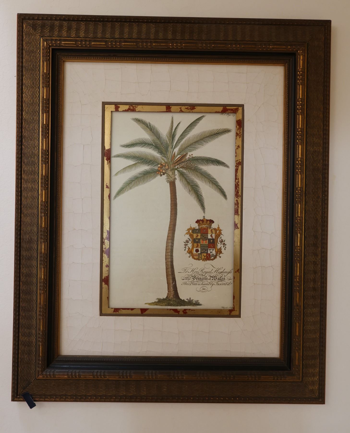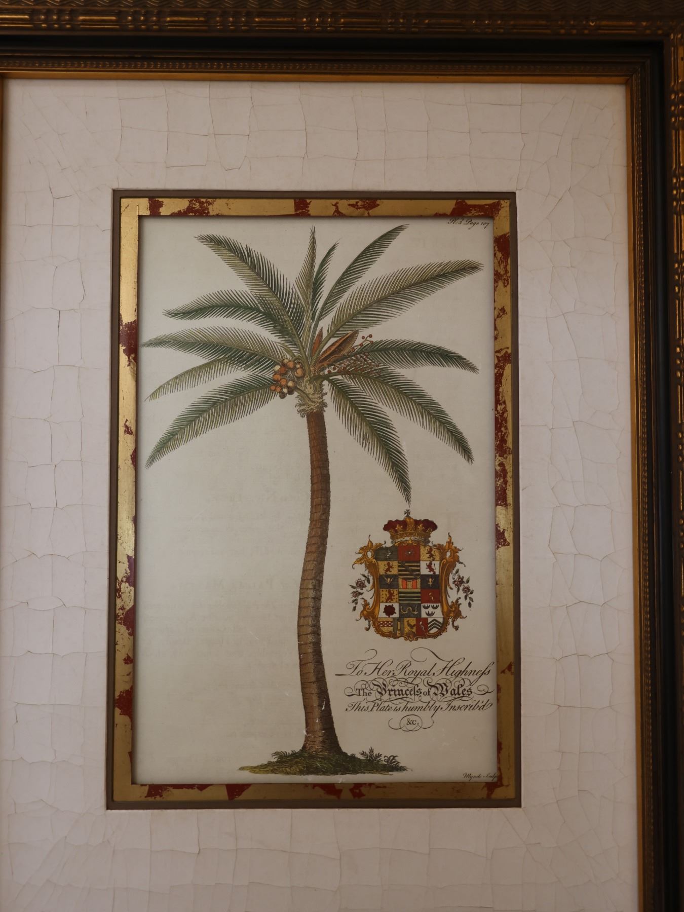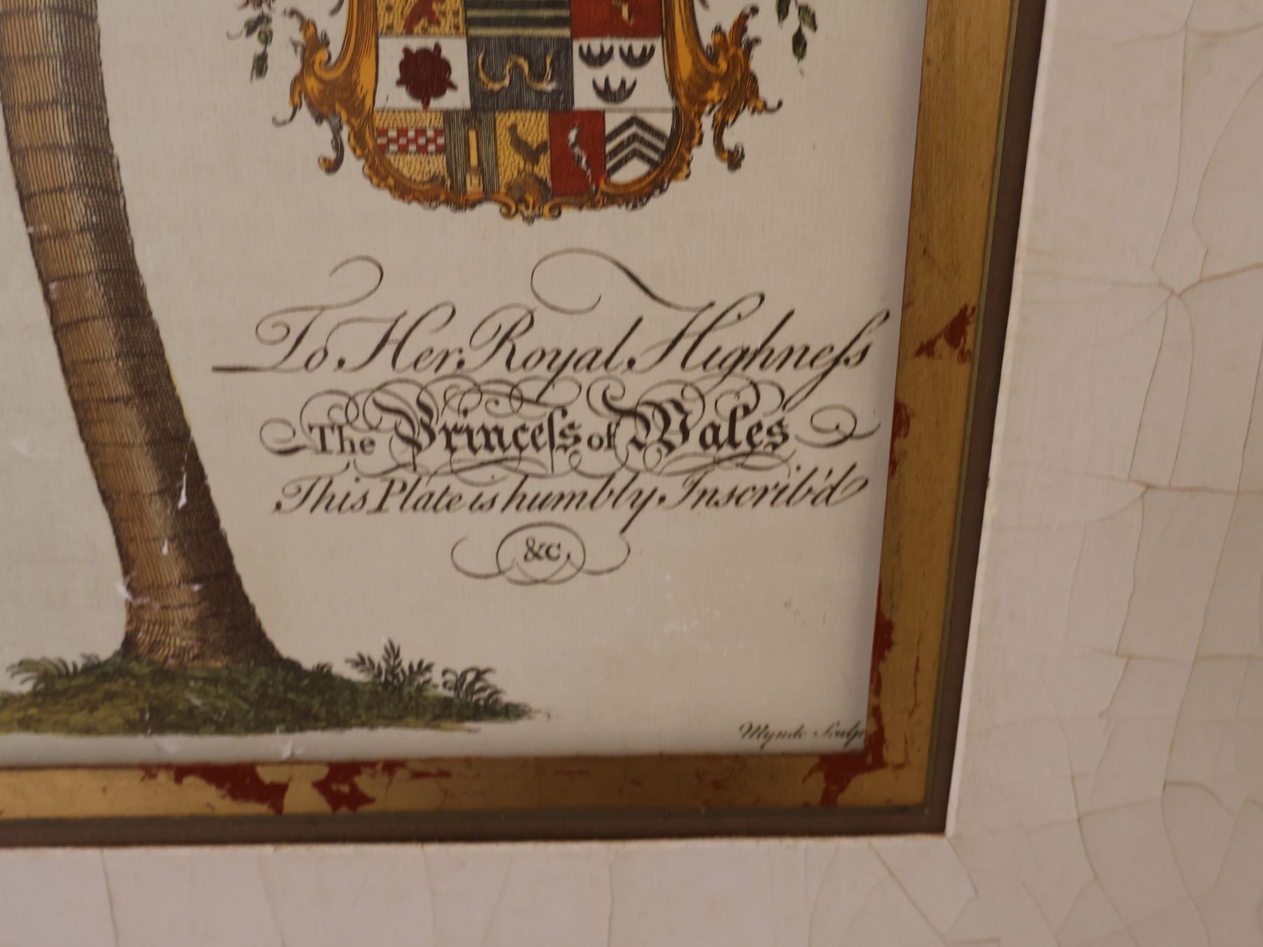 Palm Tree Artwork Inscribed to Her Royal Highness The Princess of Wales. Framed 29" x 36"